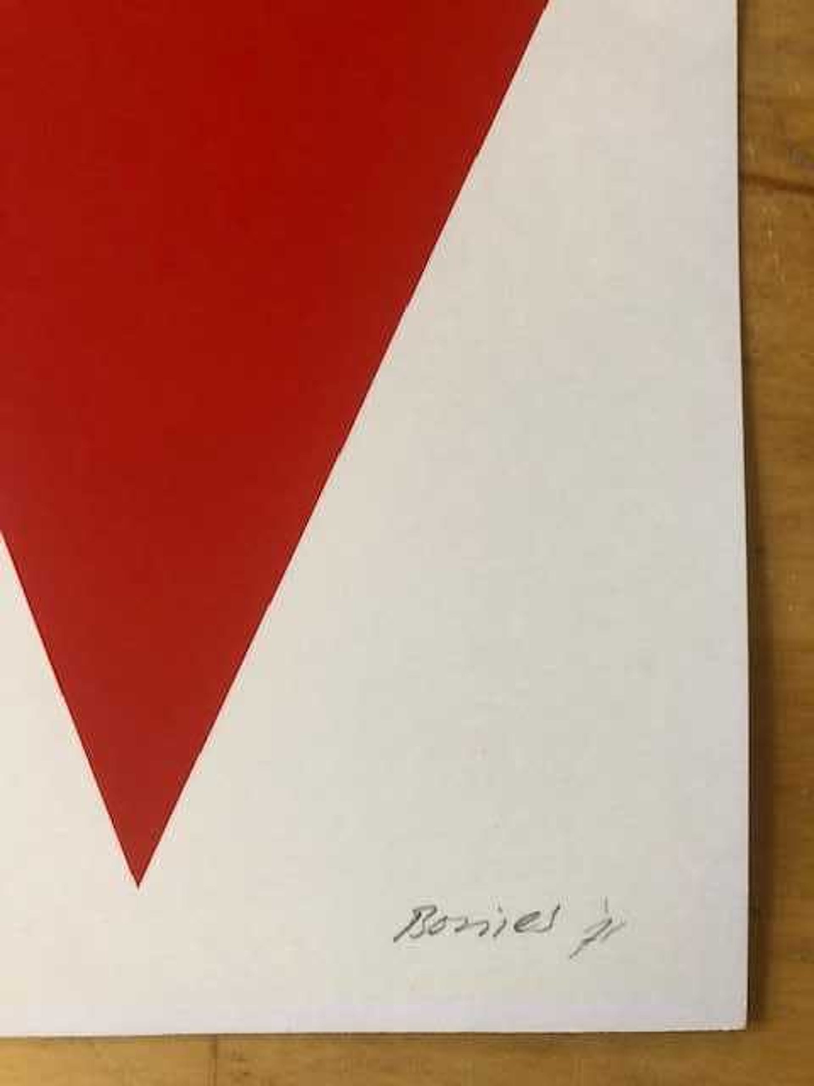 Bob Bonies - abstracte zeefdruk in rood, wit en blauw uit 1971