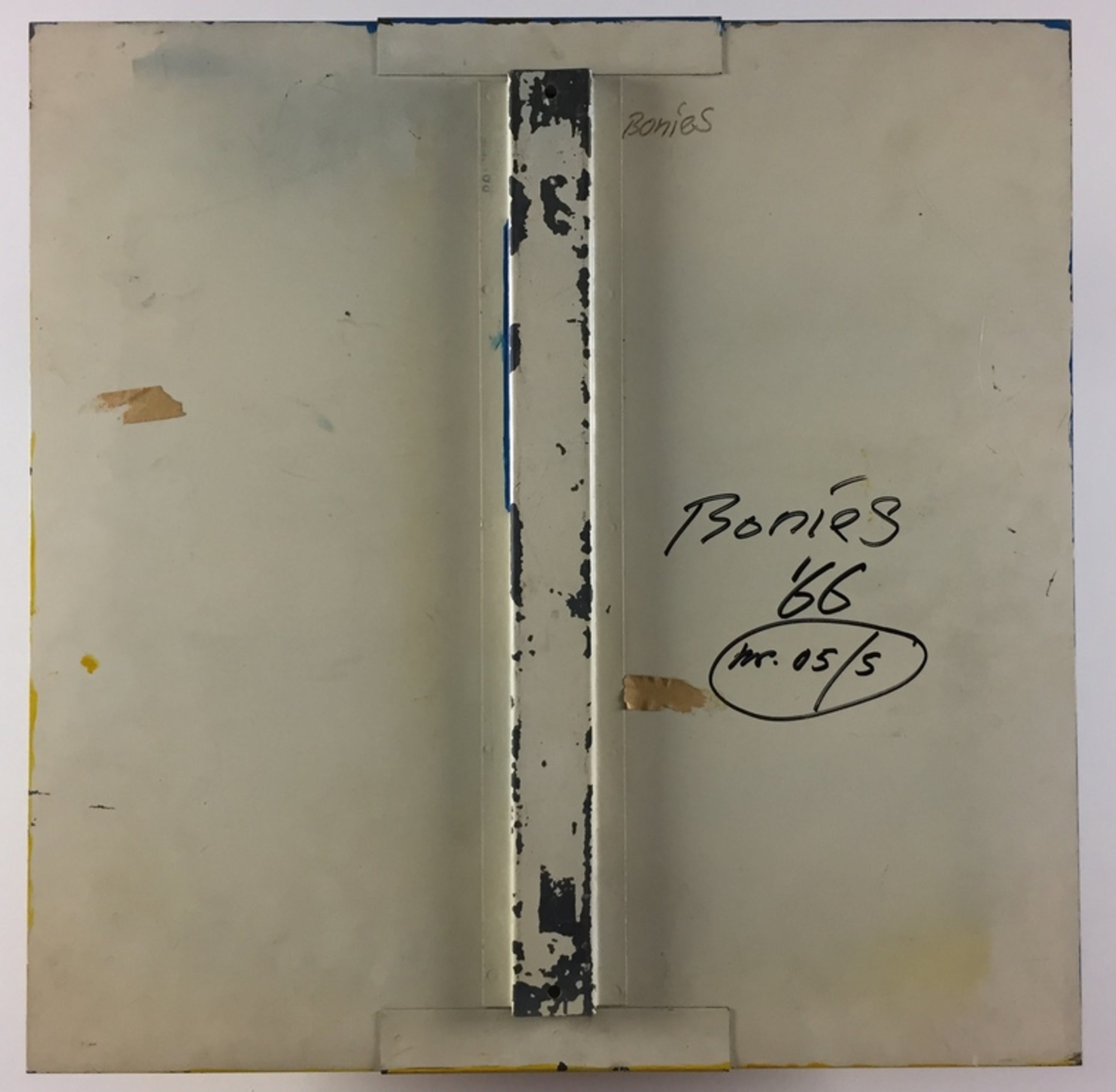 Uitgevoerd in 1966. Het werk heeft, zoals op de foto's te zien is, hier en daar wat ouderdomsplekjes en imperfecties. Bij Bob Bonies op het atelier besloot hij dat het hem het beste leek hier niets aan te doen. 'Zoek er maar eens een auto bij van 50 jaar oud, waar niks aan te zien is' waren zijn letterlijke woorden.