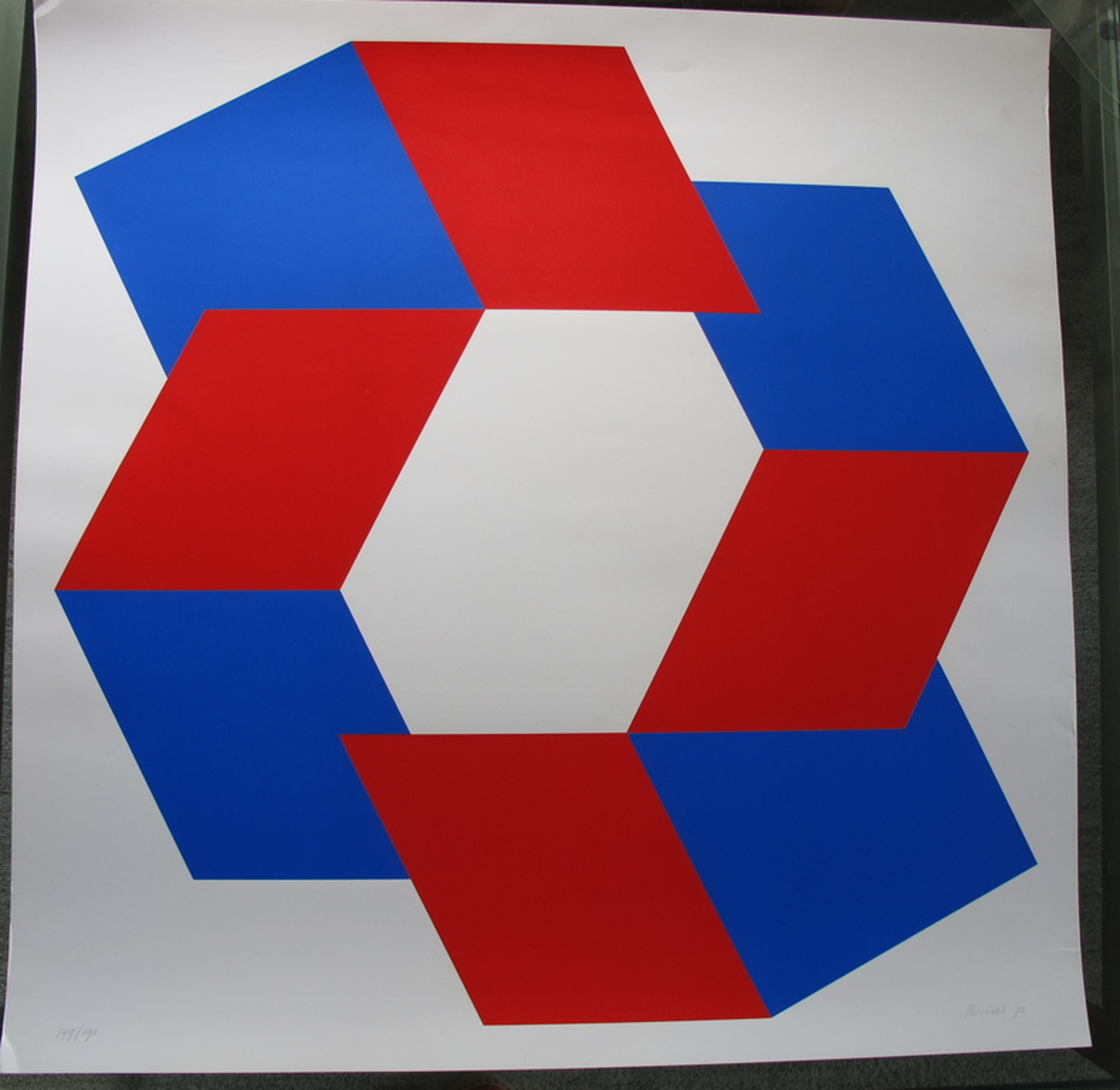 Zeefdruk van Bob Bonies uit 1973, van de serie prent 190, oplage 149/190, handgesigneerd, formaat 65 x 65. ouderdomsknakjes