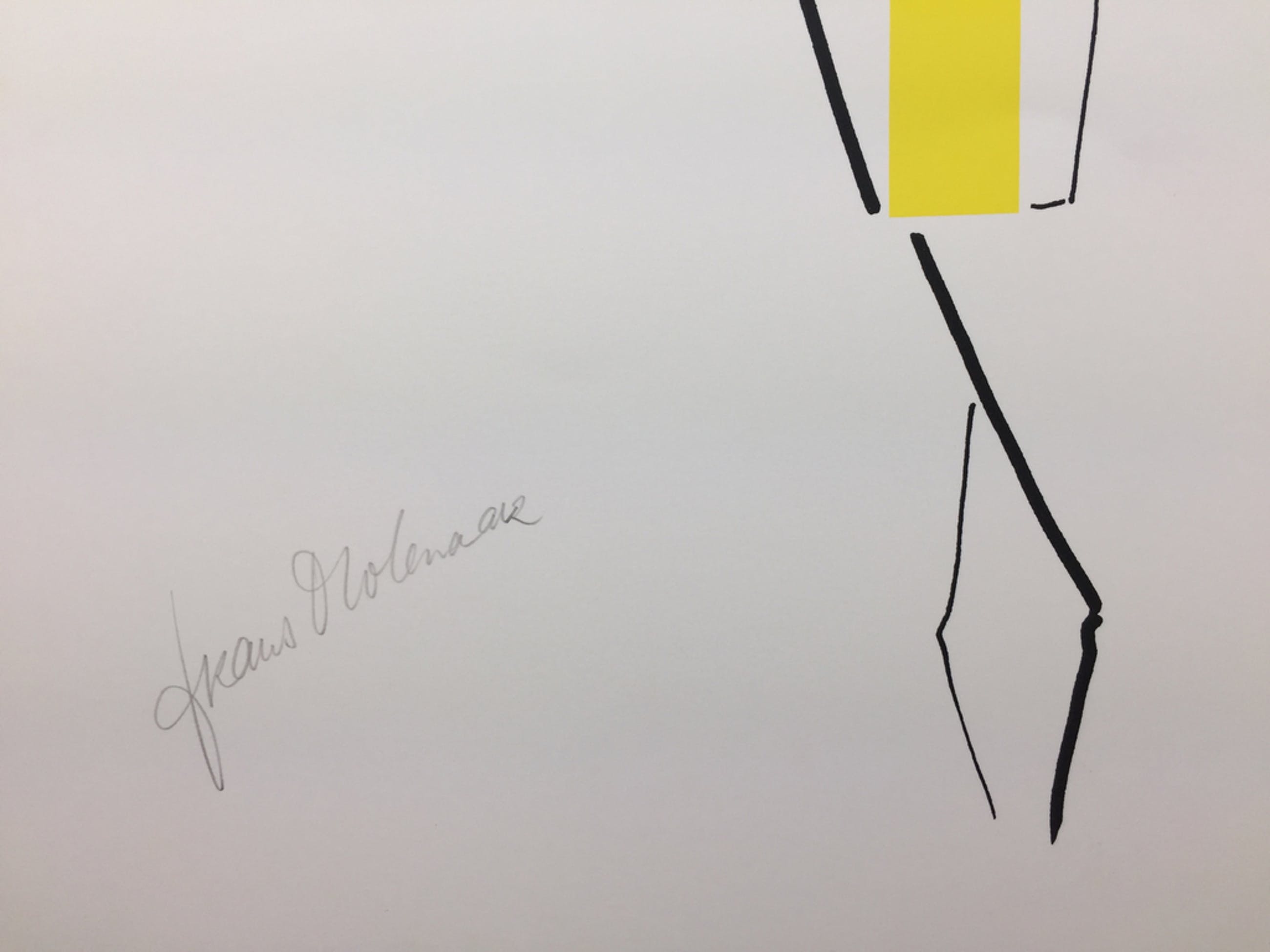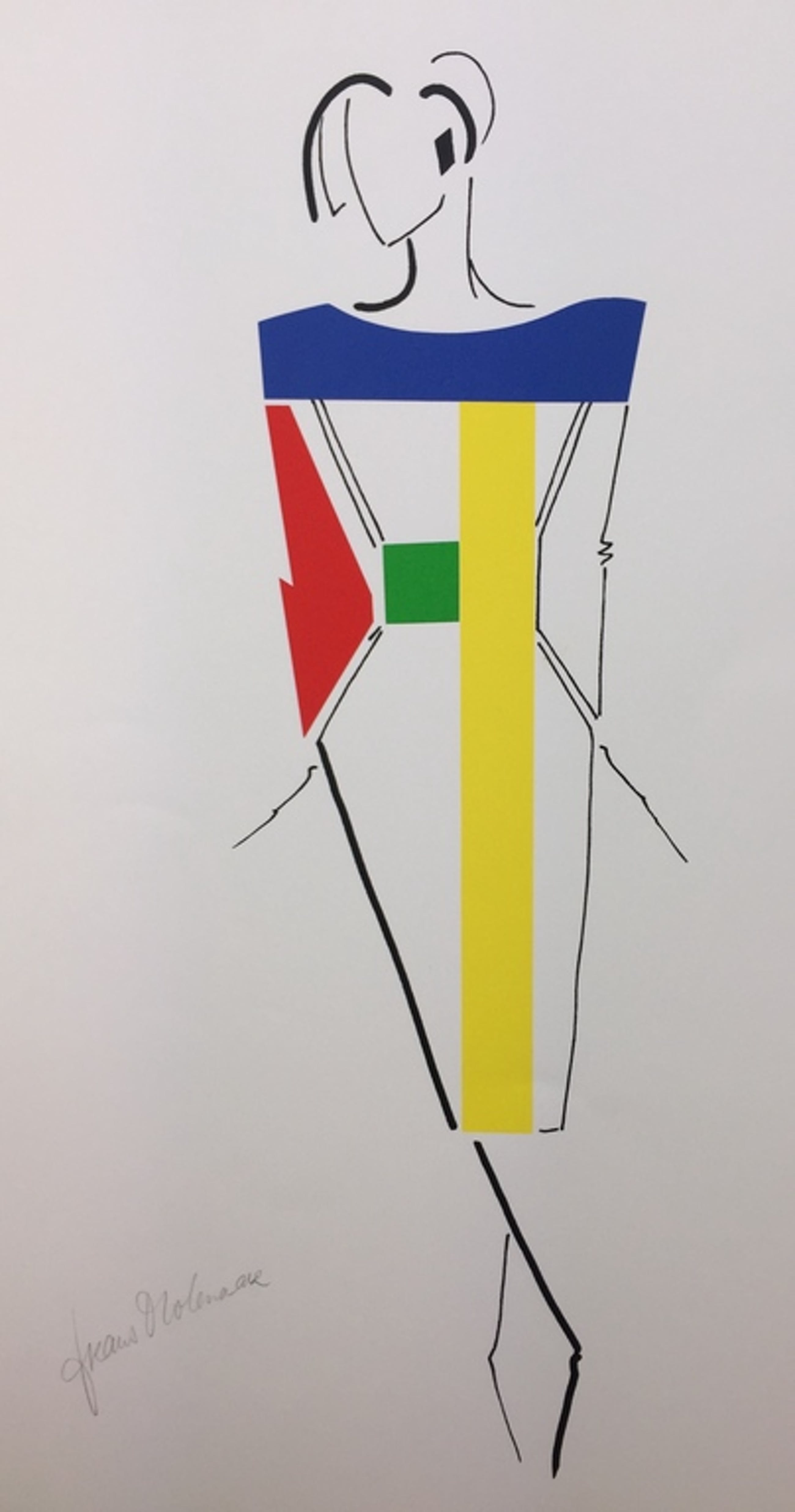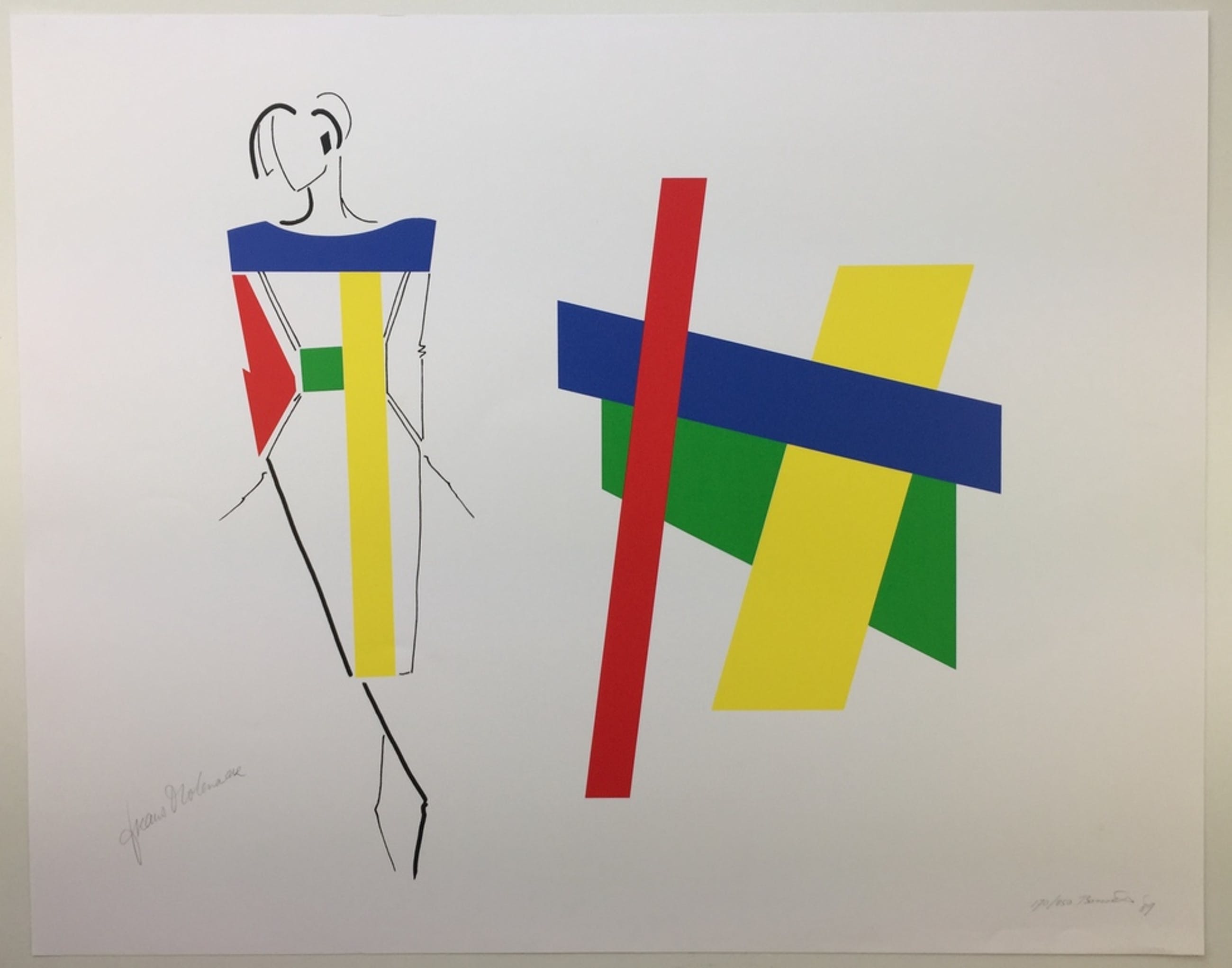 Deze prachtige zeefdruk is het resultaat van een zeldzame samenwerking tussen de Haagse kunstenaar Bob Bonies en de onlangs overleden couturier Frans Molenaar.
