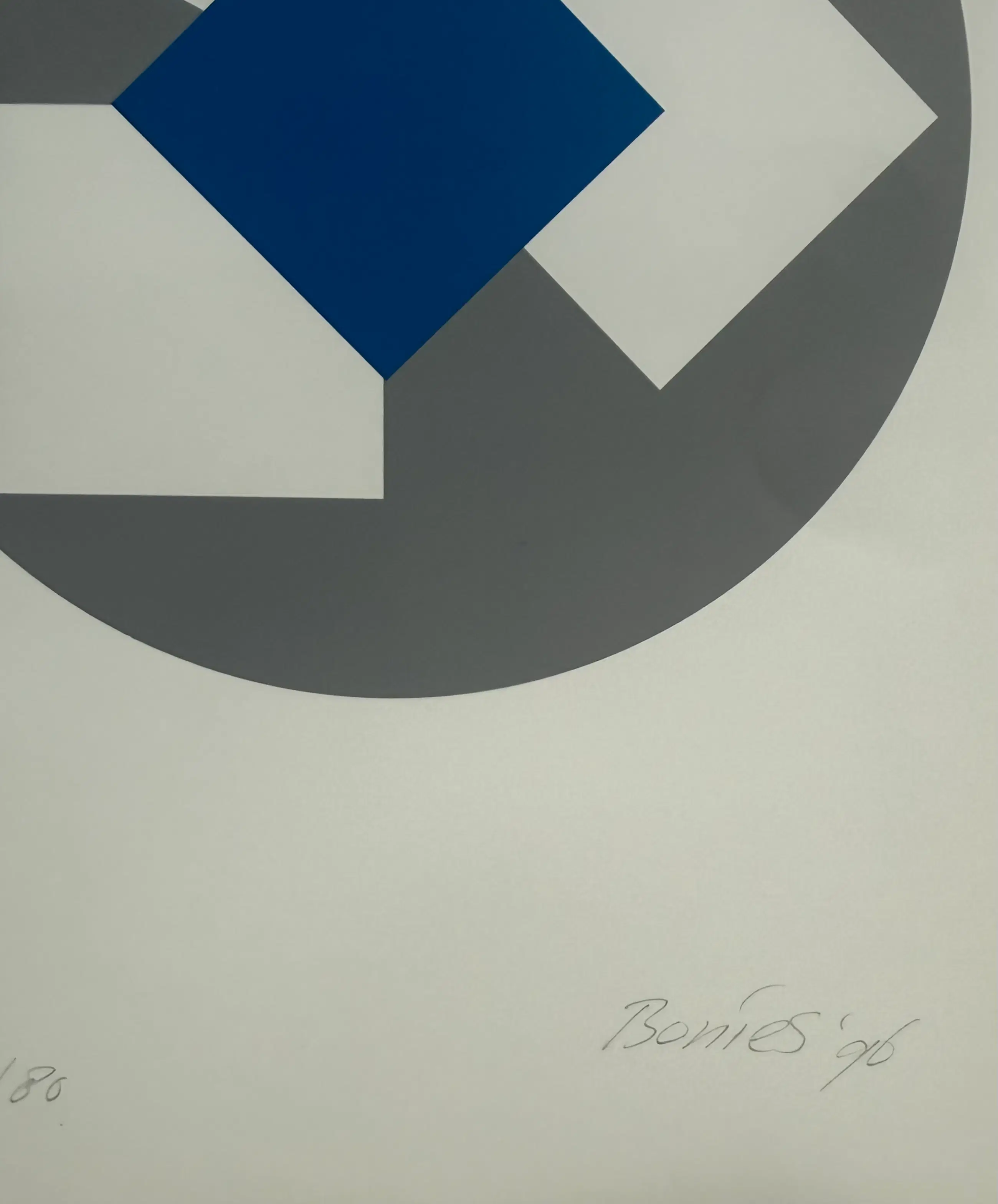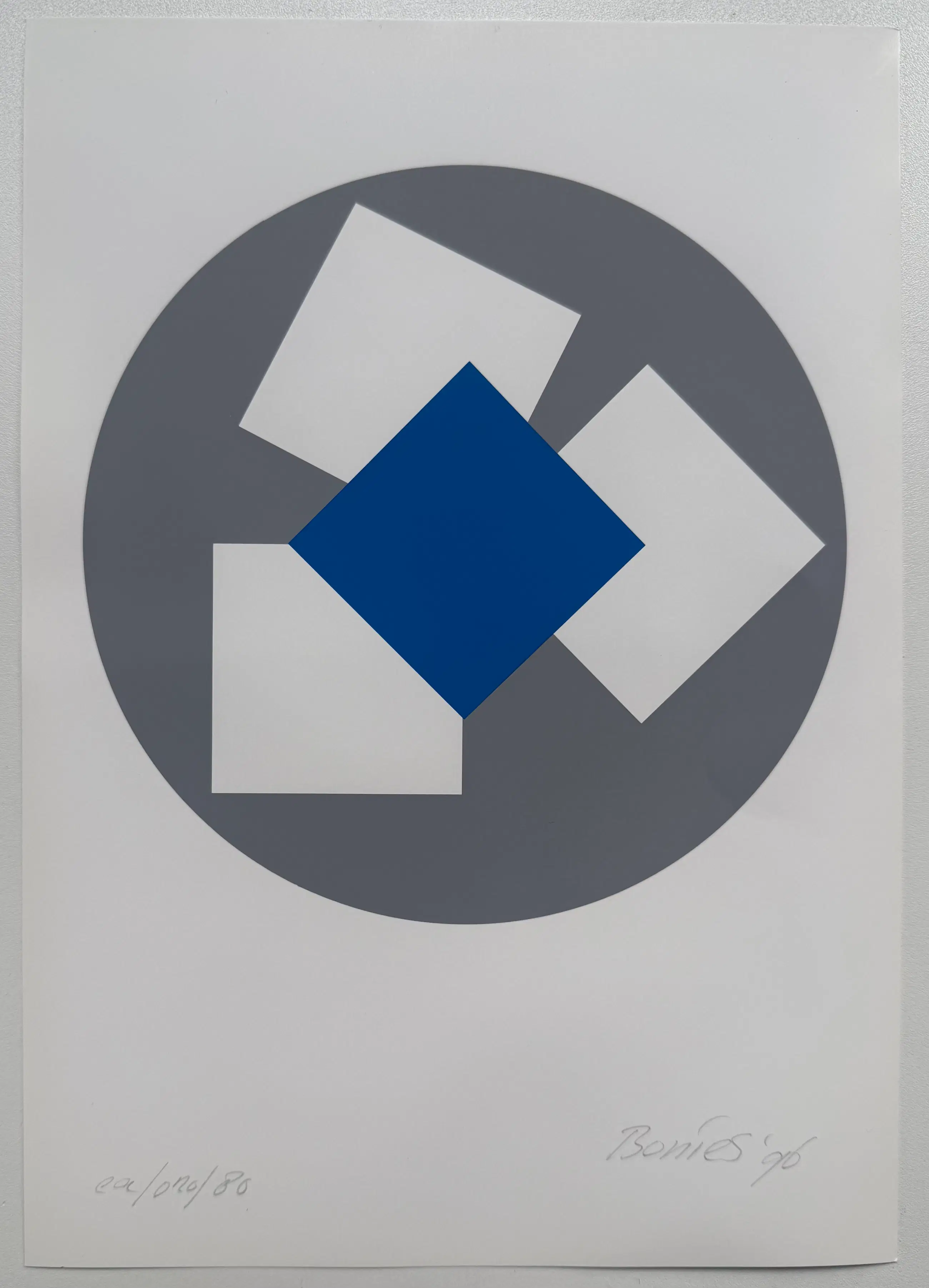 Fraaie zeefdruk op papier van deze befaamde geometrisch abstracte kunstenaar. Rechtsonder gesigneerd en gedateerd met potlood door de kunstenaar.