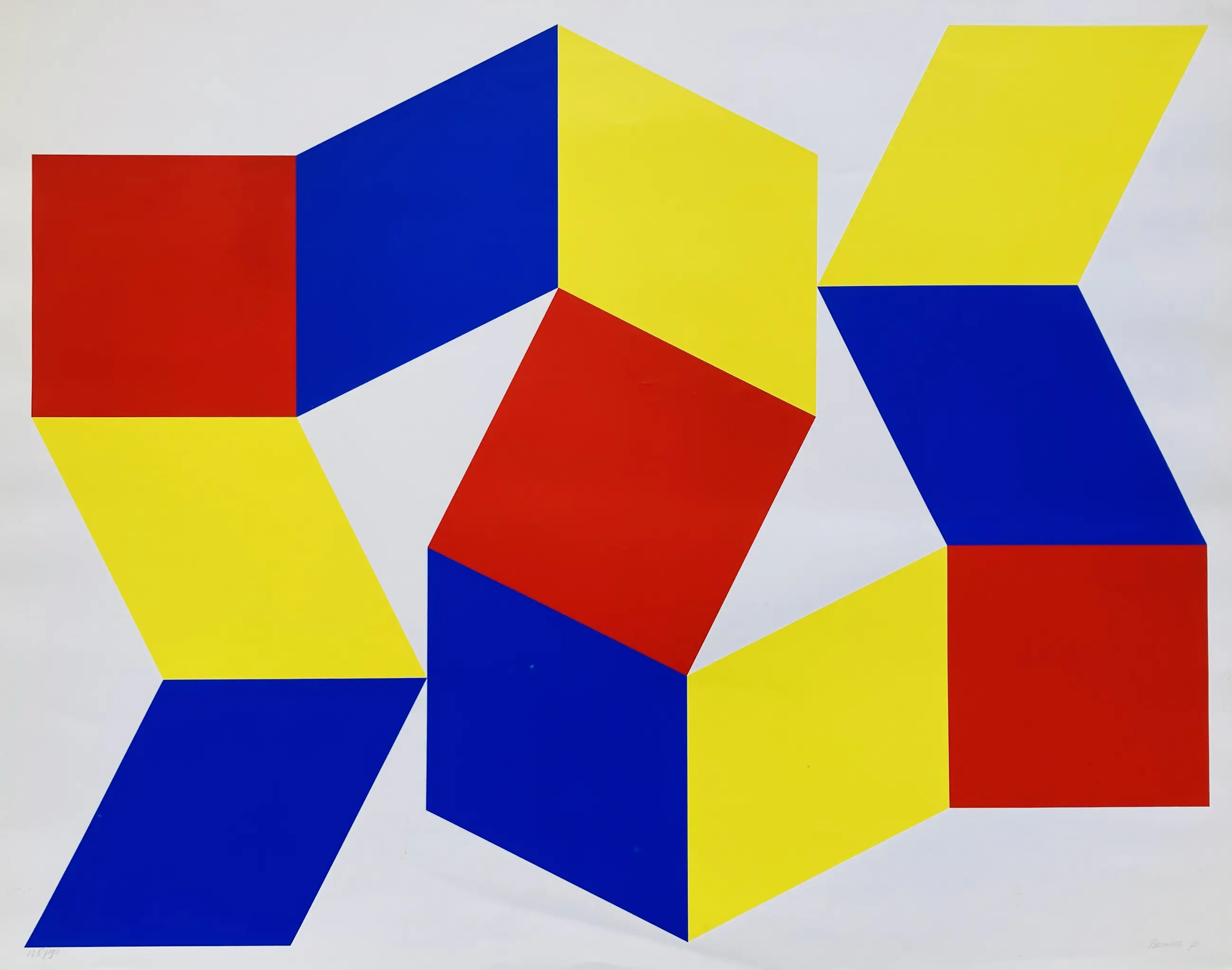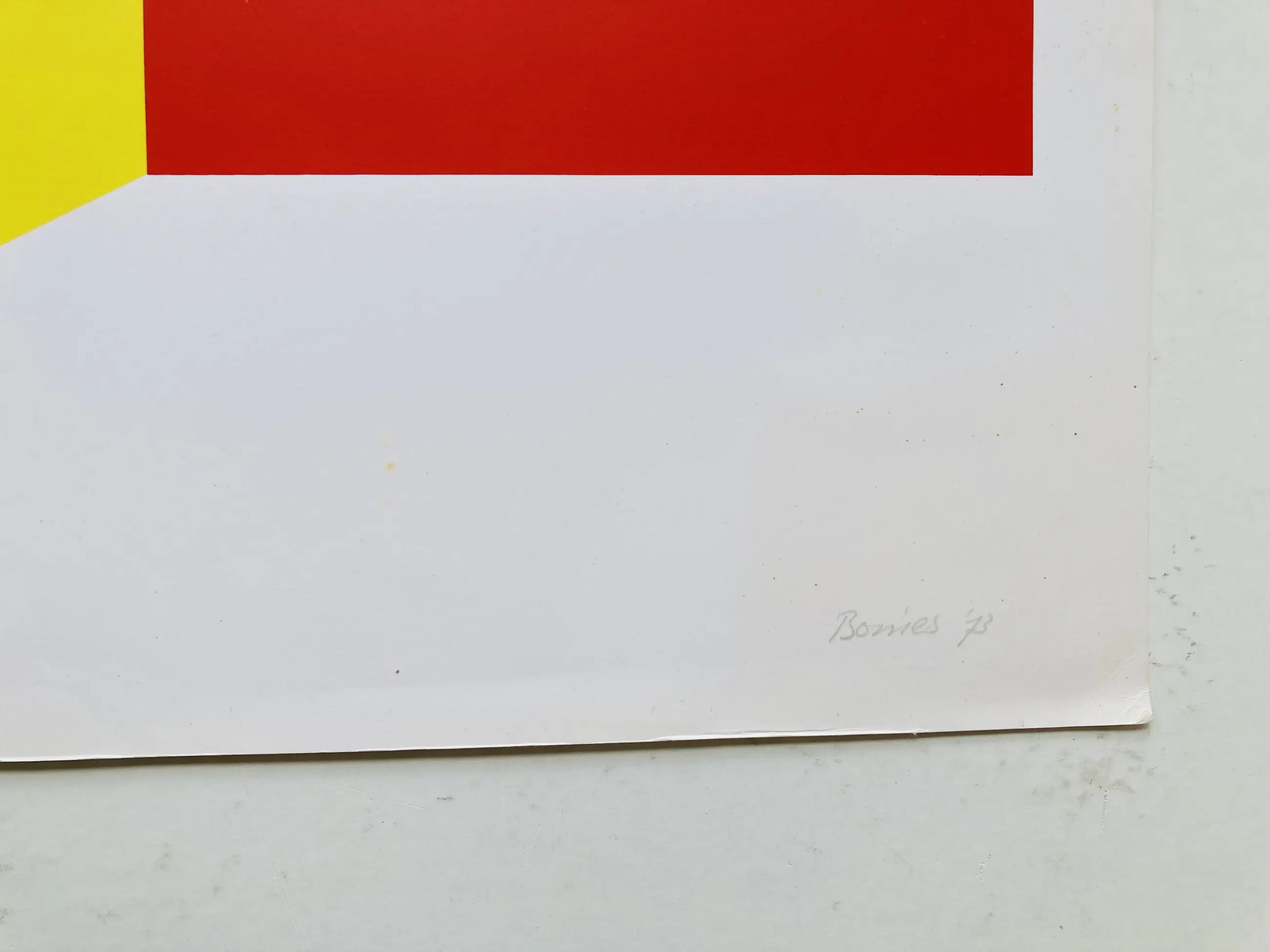 Een prachtig kunstwerk van de Nederlandse kunstenaar Bob Bonies (1937). Het werk is handgesigneerd door de kunstenaar en is gemaakt in 1973. Het werk verkeert in prima conditie, maar heeft wat kleine ouderdomsvlekjes.