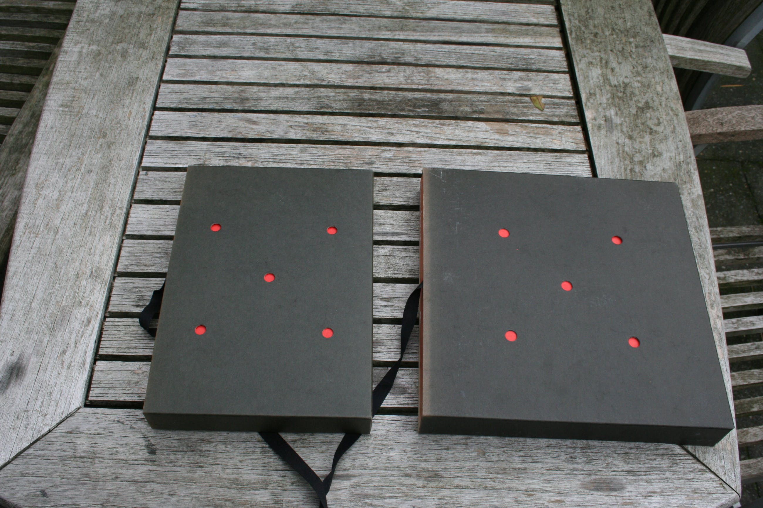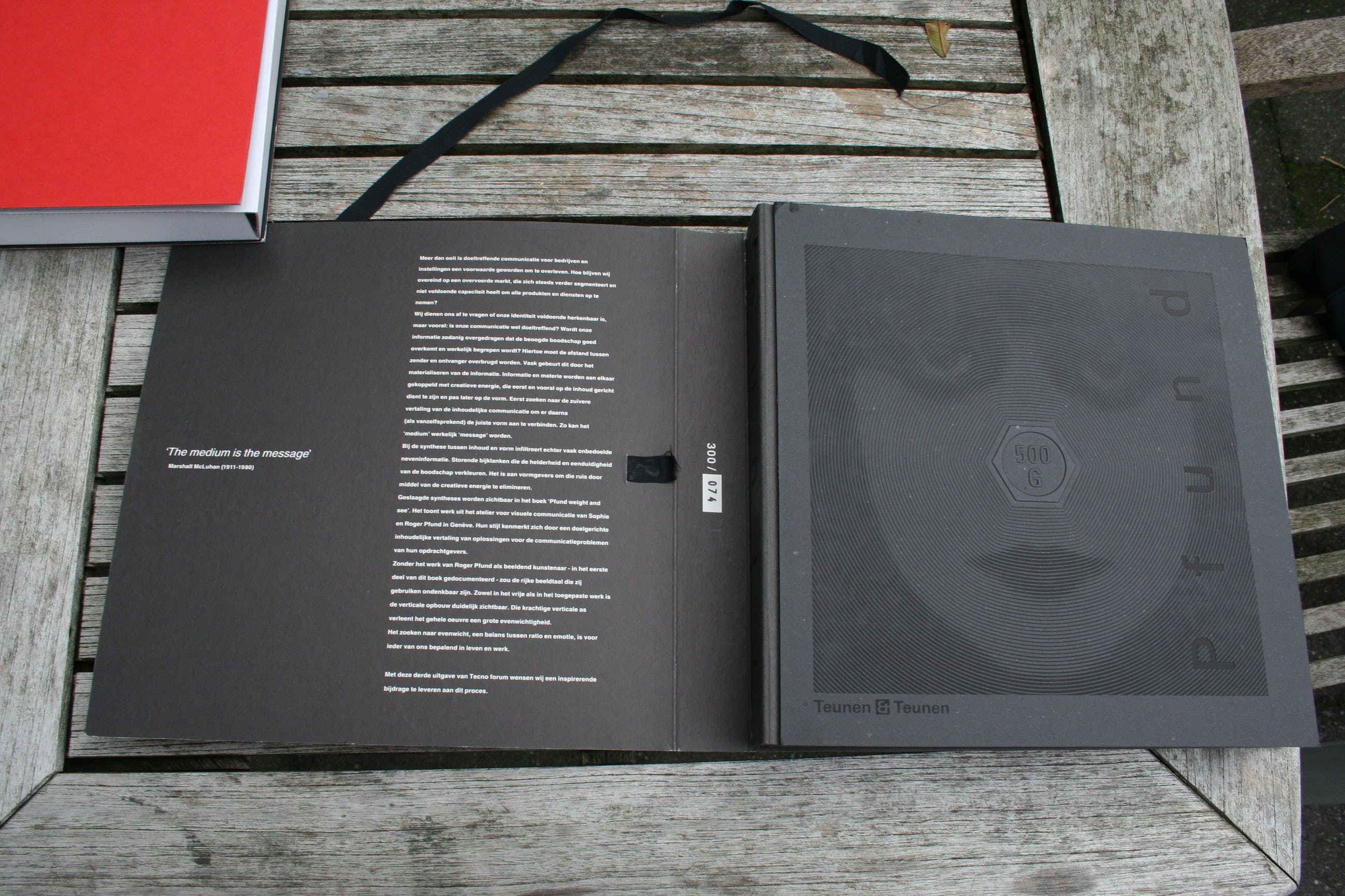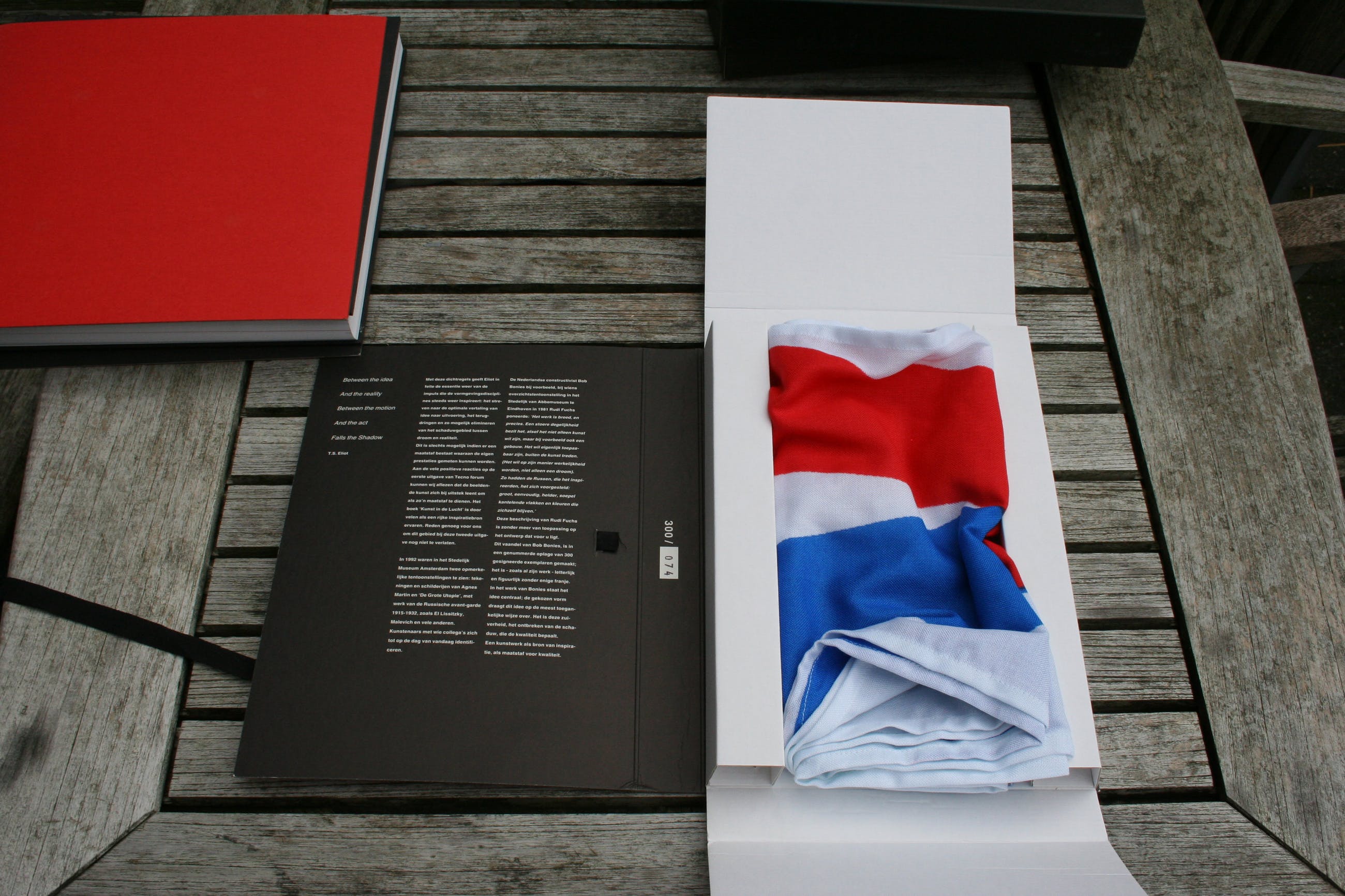 Het vaandel is,zoals al zijn werk,letterlijk en figuurlijk zonder enige franje.In het werk van Bonies staat het idee centraal;de gekozen vorm draagt dit idee op de meest toegankelijke wijze over.Het is deze zuiverheid,het ontbreken van de schaduw,die de kwaliteit bepaald.en kunstwerk als bron van inspiratie,als maatstaf voor kwaliteit.Boek en vaandel zijn in nieuwstaat,de cassette dozen zelf zijn iets wat verkleurd.