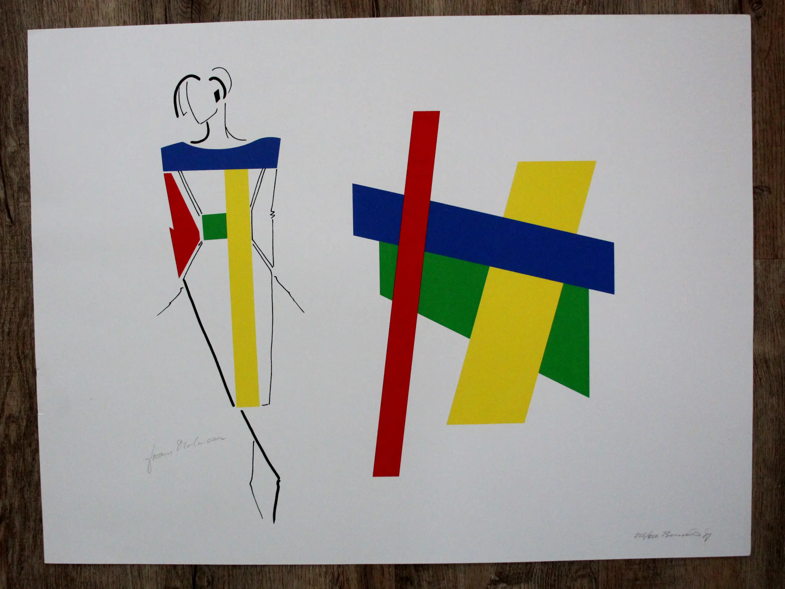 Zeefdruk van Bob Bonies in samenwerking met Frans Molenaar (modeontwerper). Jaar: 1989. Nummer: 205/250. Afmetingen voorstelling: H51 x b50cm. Het werk is rechts onderin en links onderin gesigneerd door de kunstenaars. De authenticiteit van het aangeboden werk wordt volledig gegarandeerd. Een certificaat van echtheid kan, op aanvraag worden gegarandeerd.