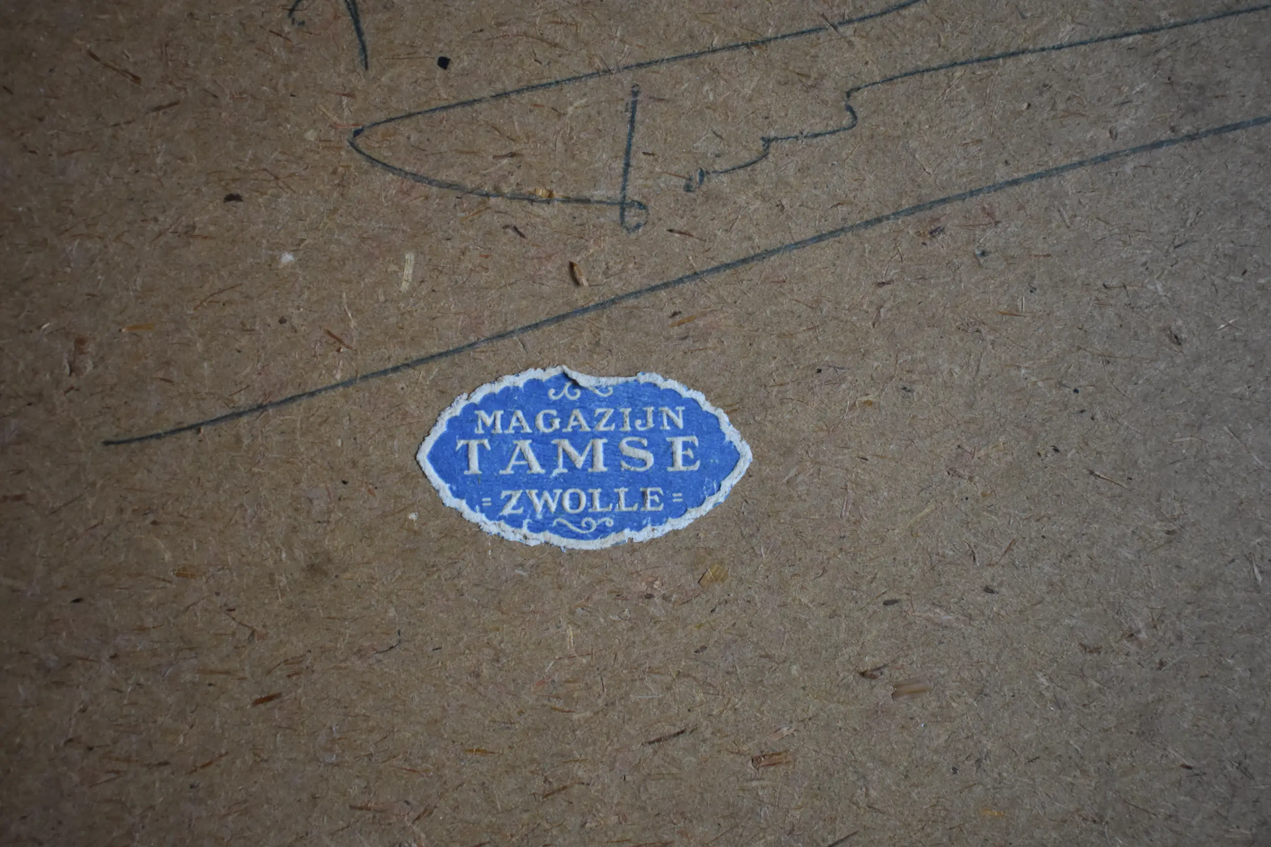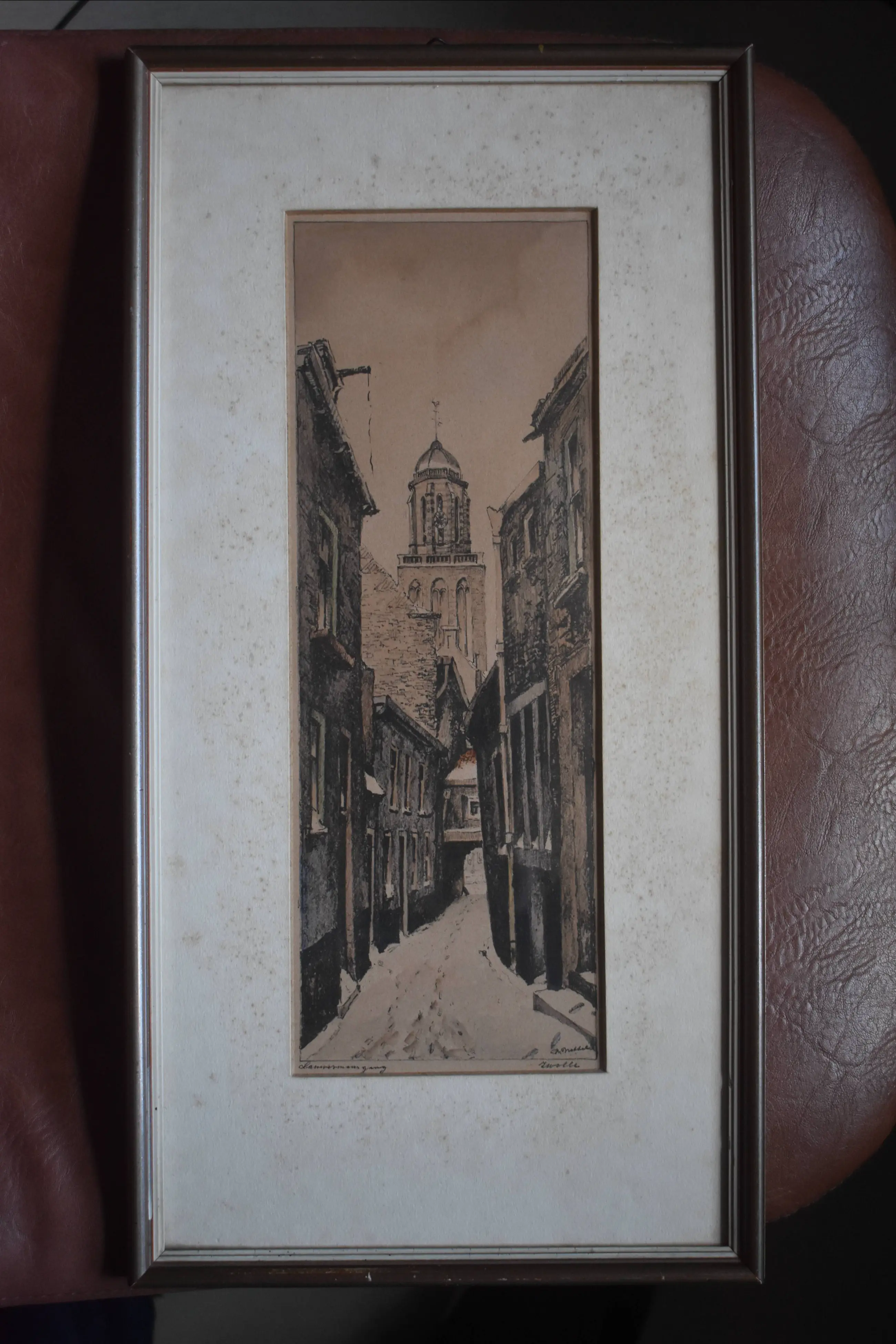Bob Brobbel maakte diverse etsen en litho's. Deze Lauwersmangang is in 1950 kado gegeven en gekocht in magazijn Tamse in Zwolle gezien het etiket op de achterzijde. De geaquarelleerde litho is nog authentiek in de lijst die zeer lichte gebruikssporen vertoont. De litho is in zeer goede conditie. gesigneerd en getekend .