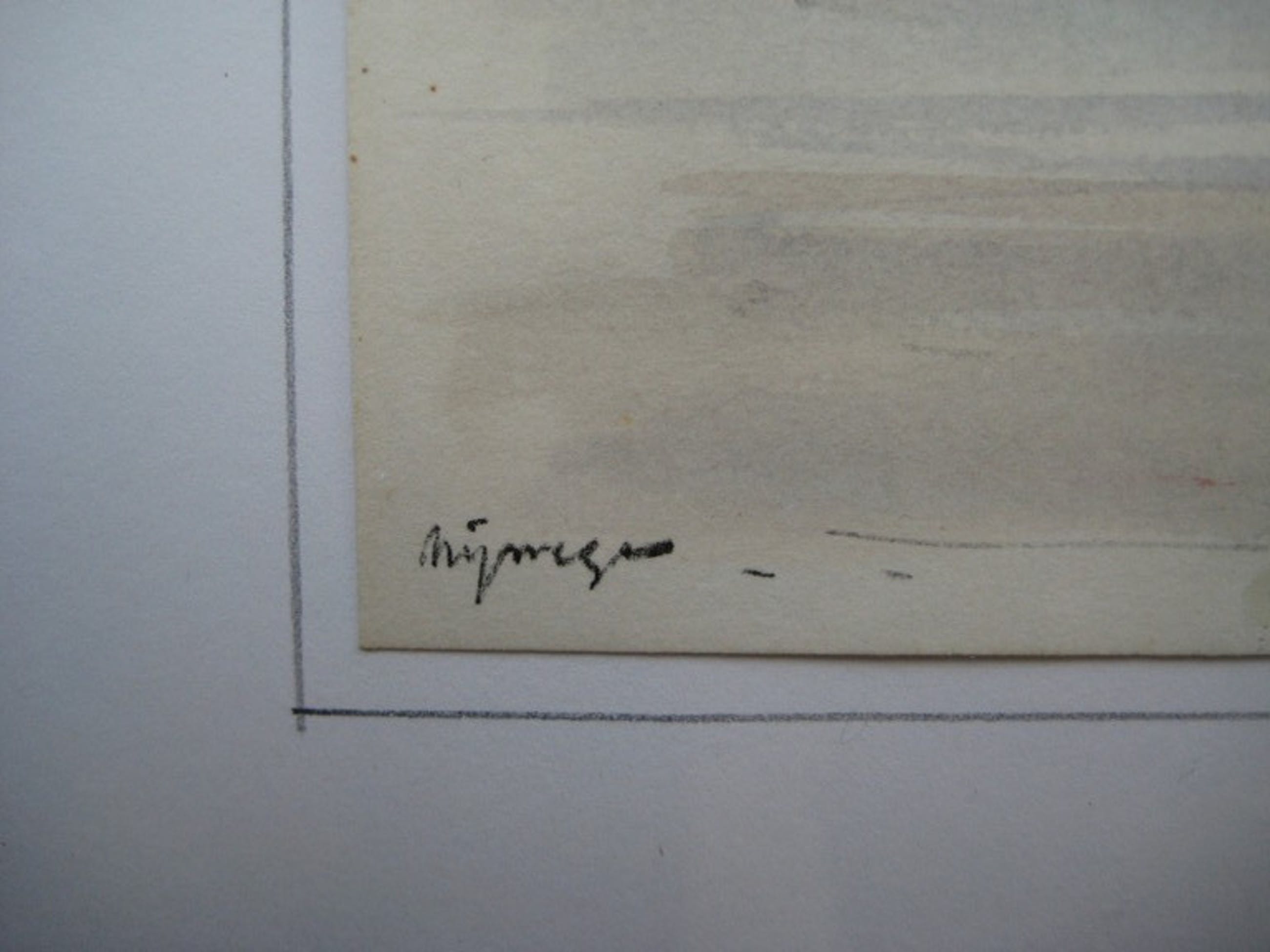 In lijstje achter glas, geen passepartout, Lijstje is oud en beschadigd.