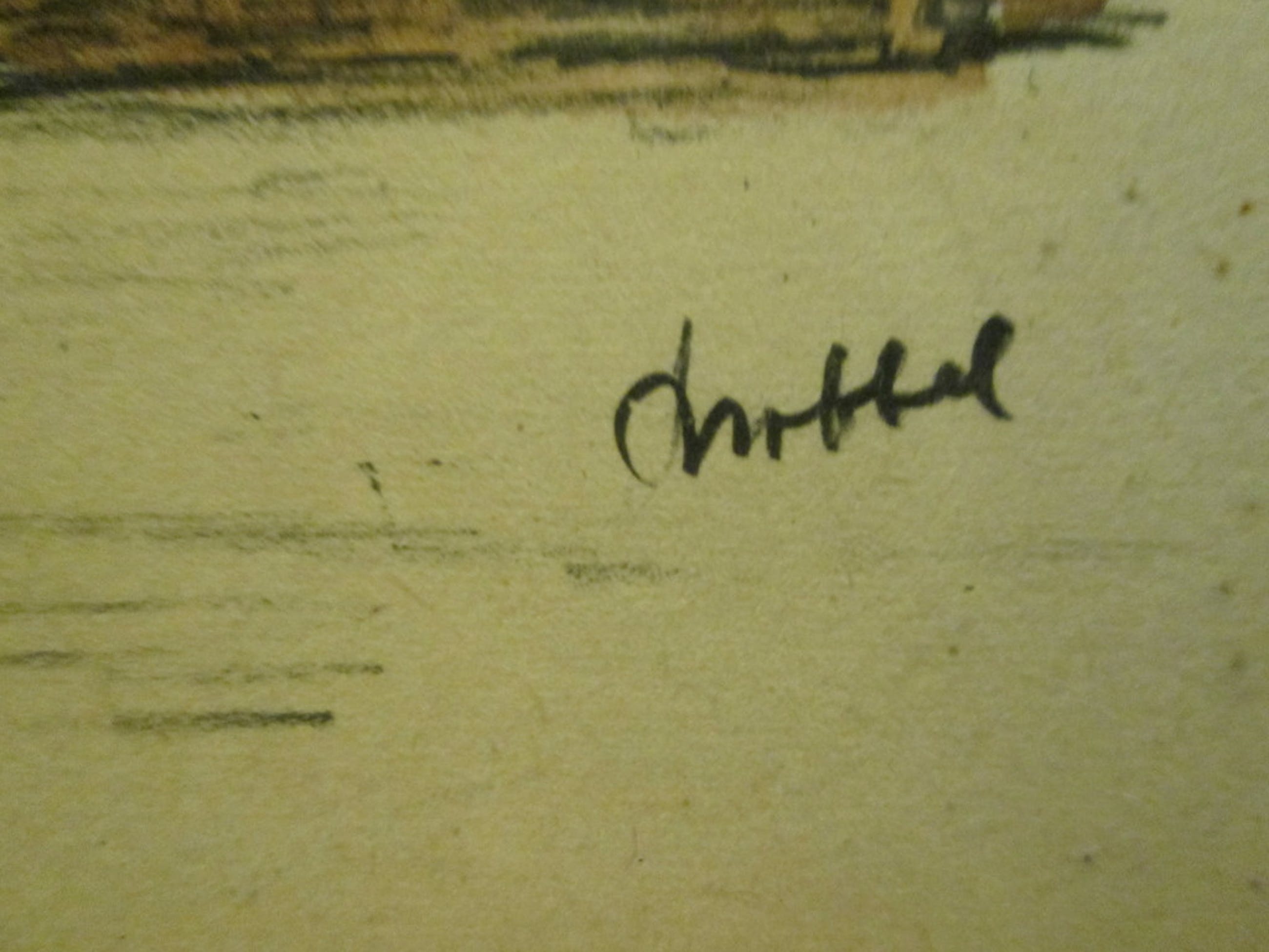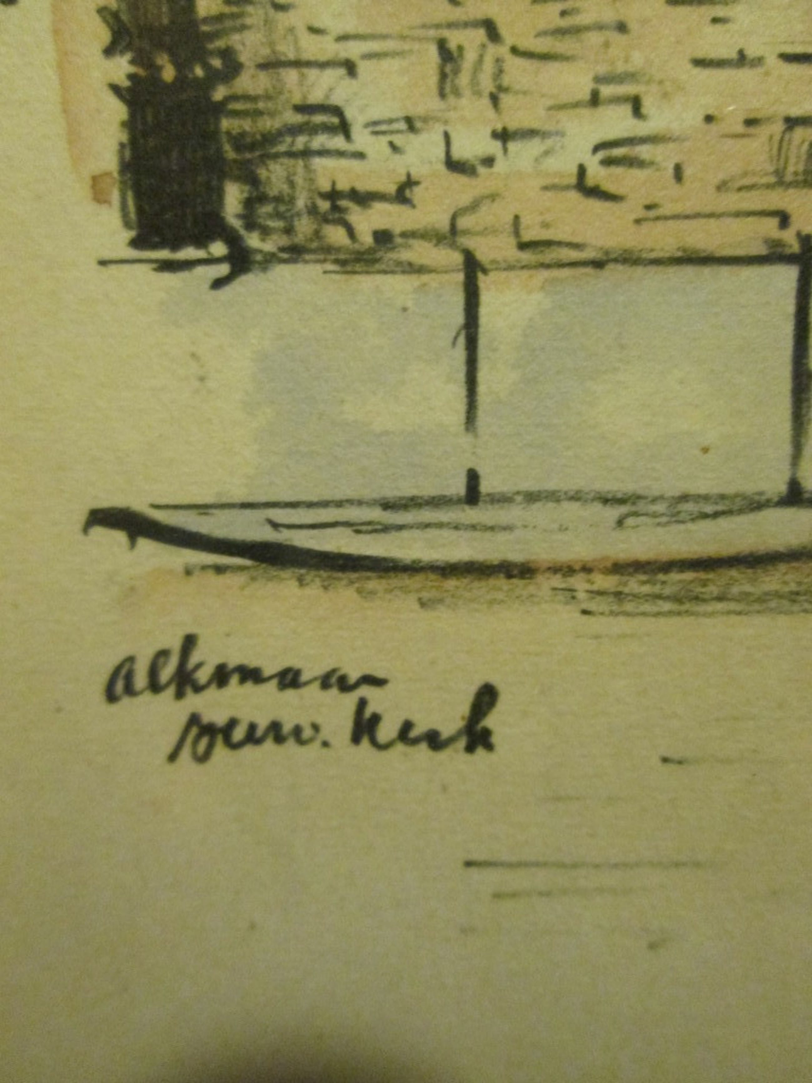 Aquarel-litho 21 x 15 cm, ingelijst (33 x 25.5 cm kader) achter passe-partout en glas. Gesigneerd en betiteld, r.o. Brobbel, l.o. Herv. Kerk Alkmaar. Het werk is in goed staat, de lijst heeft enkele verwaarloosbare mankementen.