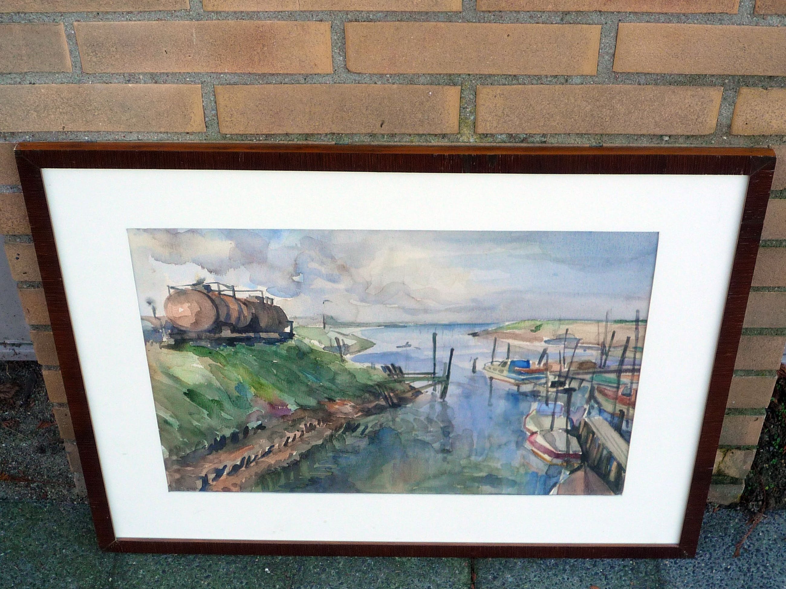 Conditie van de aquarel zeer goed, conditie van de lijst goed (zie foto's)