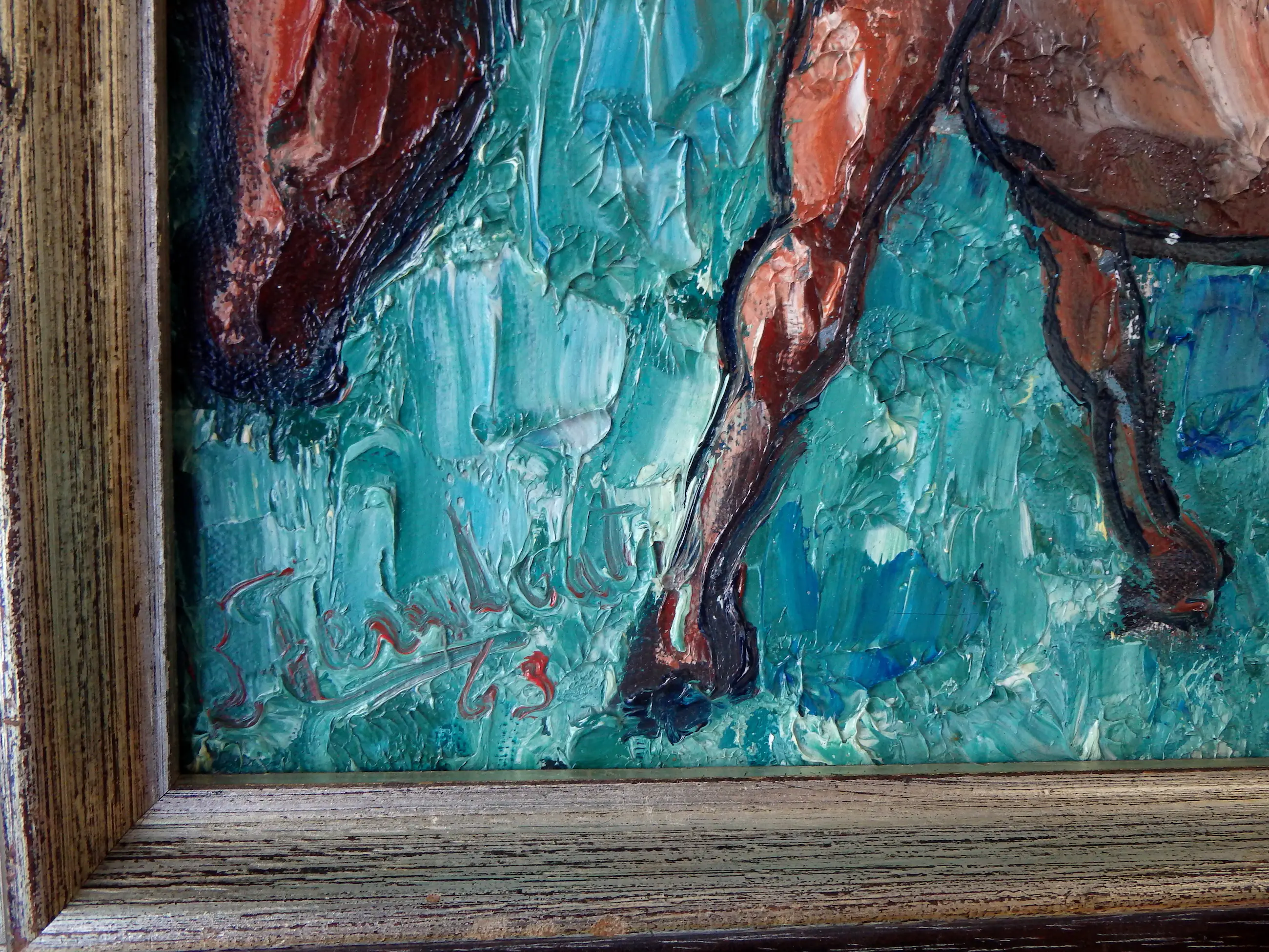 Onderwerpen: landschap en mens, vrij sterk gedeformeerd.