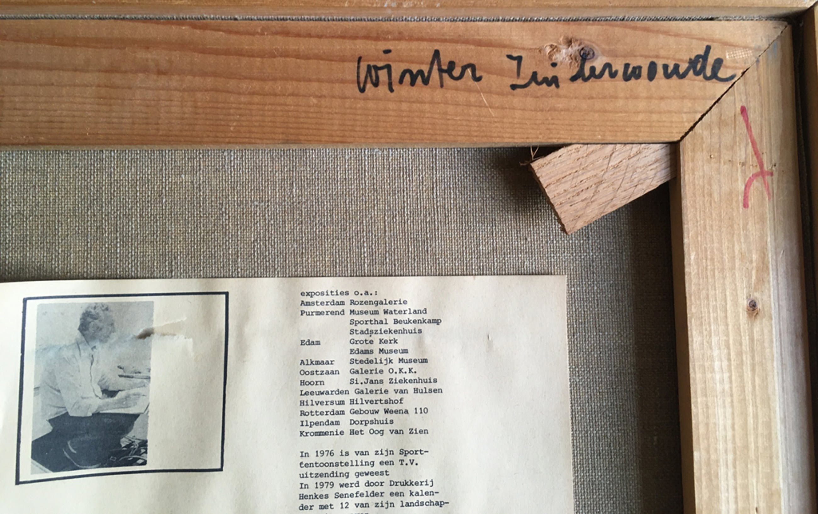 Prachtig winterimpressie van het landschap rond Zuiderwoude in Noord-Holland. Geschilderd in de nihilistische stijl die Bob Immink zo kenmerkt.