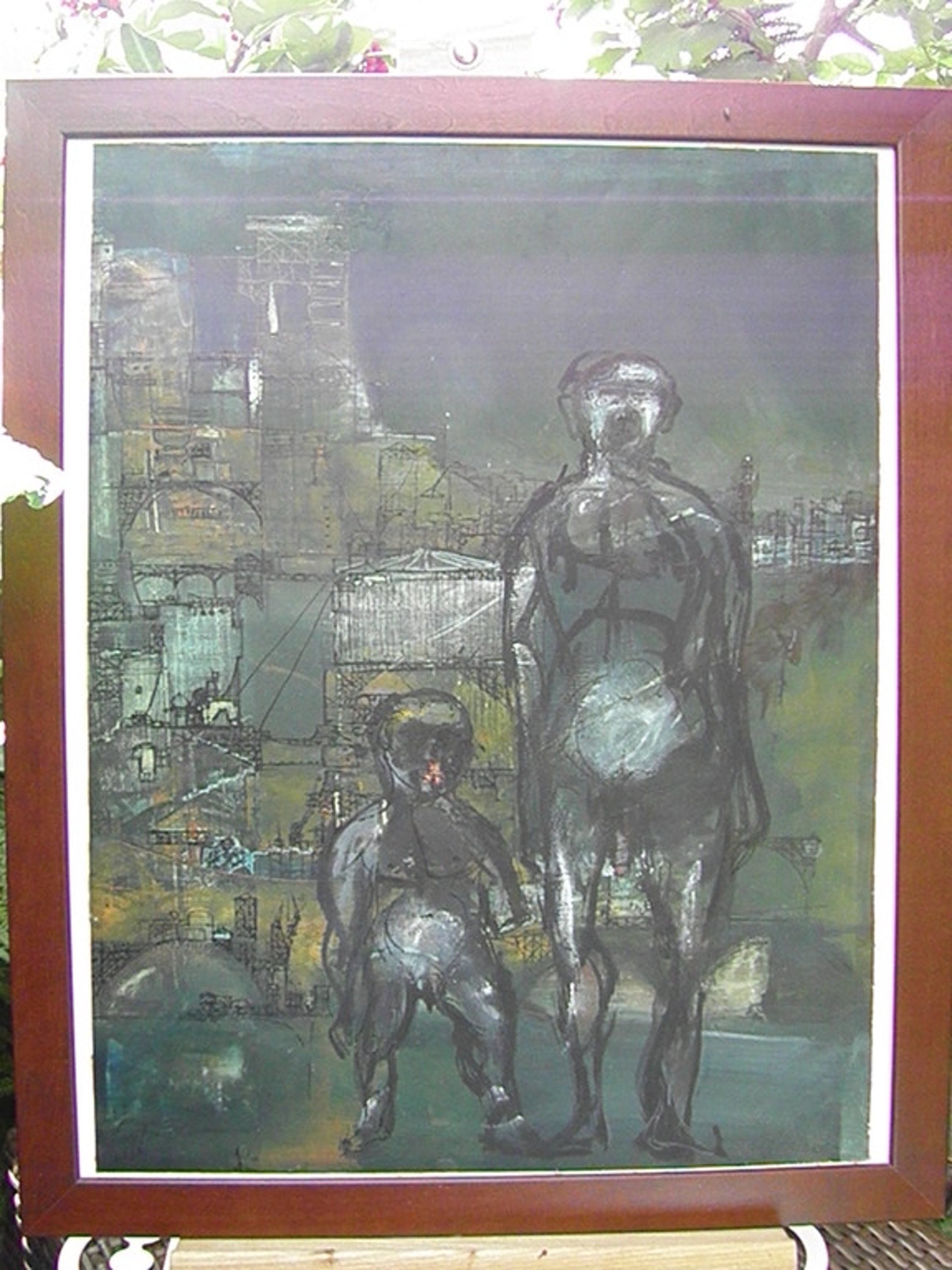 Zijn werk is in vele collecties te vinden. Hij exposeert nationaal maar vooral ook internationaal. Deze gemengde techniek uit 1963