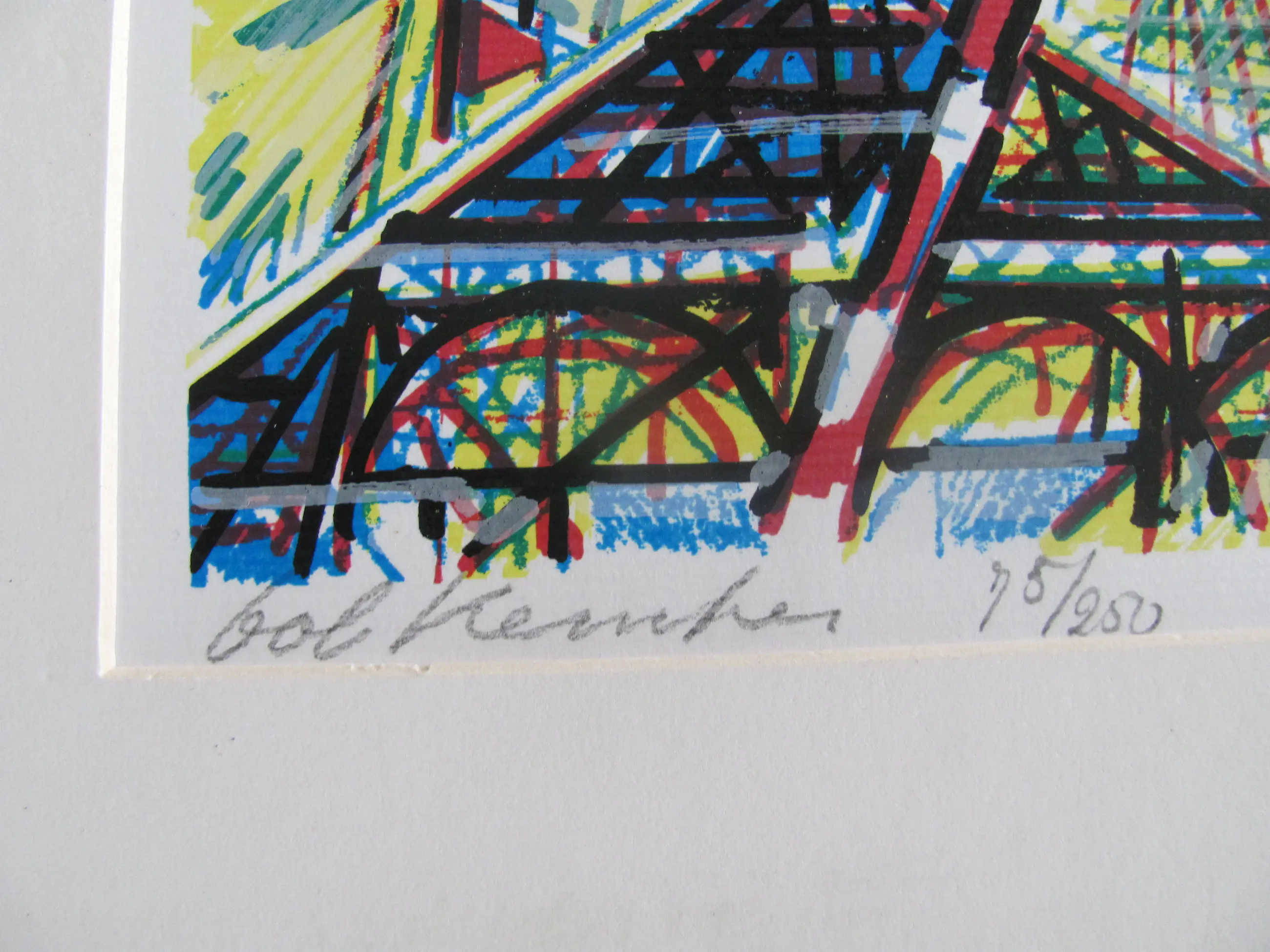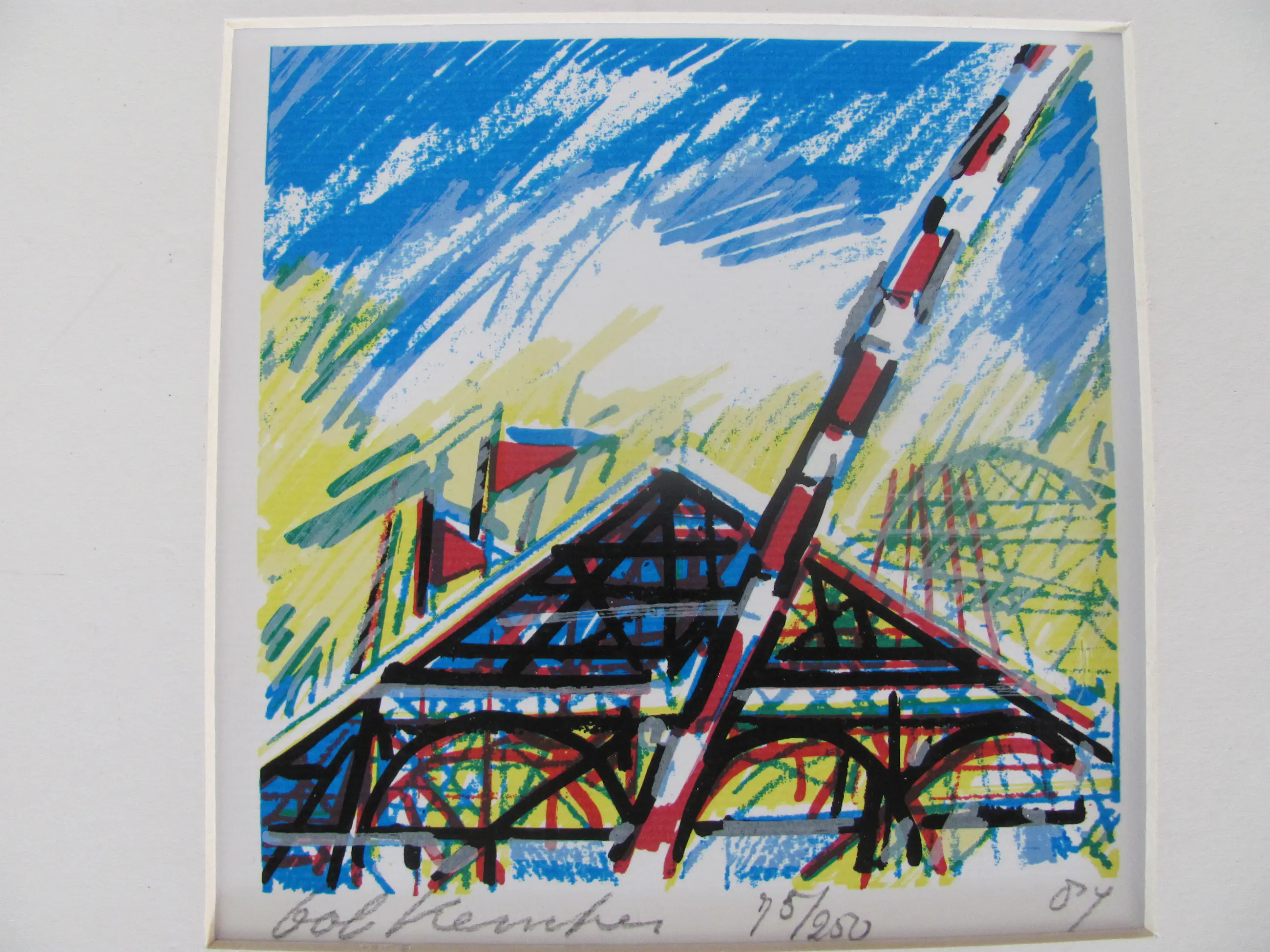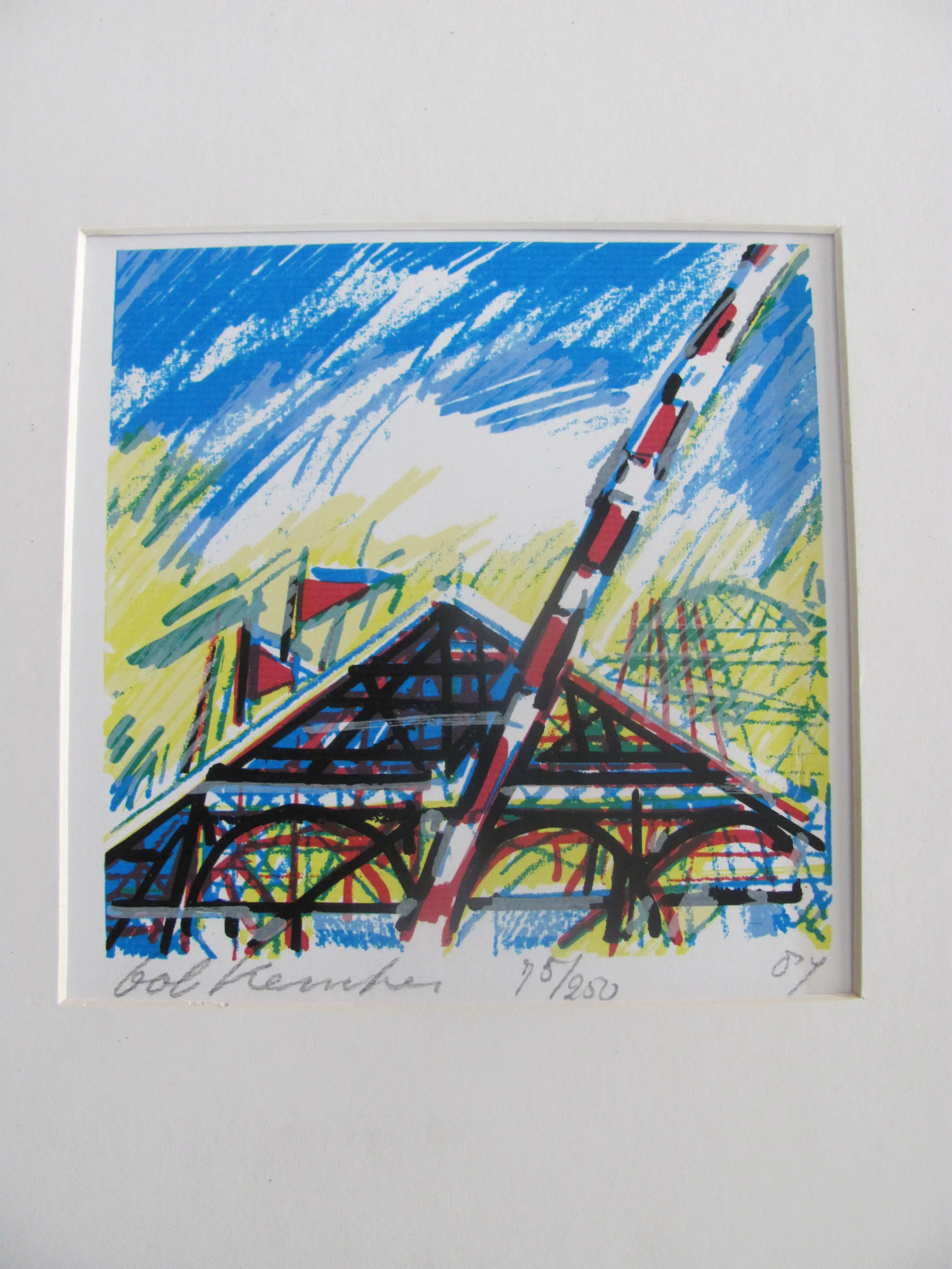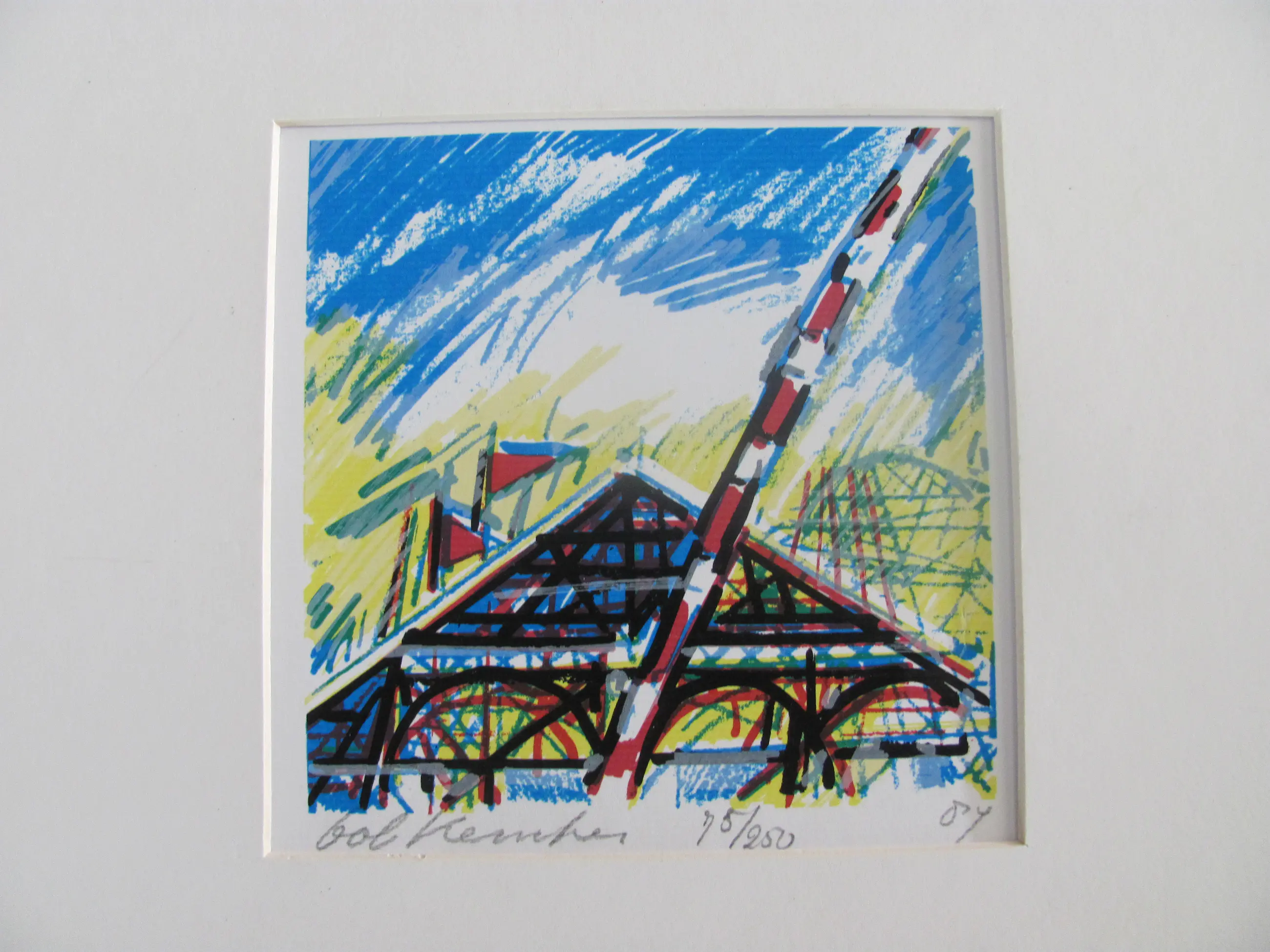 Kleine zeefdruk van Bob Kemper. Linksonder gesigneerd. Midden onder genummerd: 75/250 Rechtsonder gedateerd: '87.