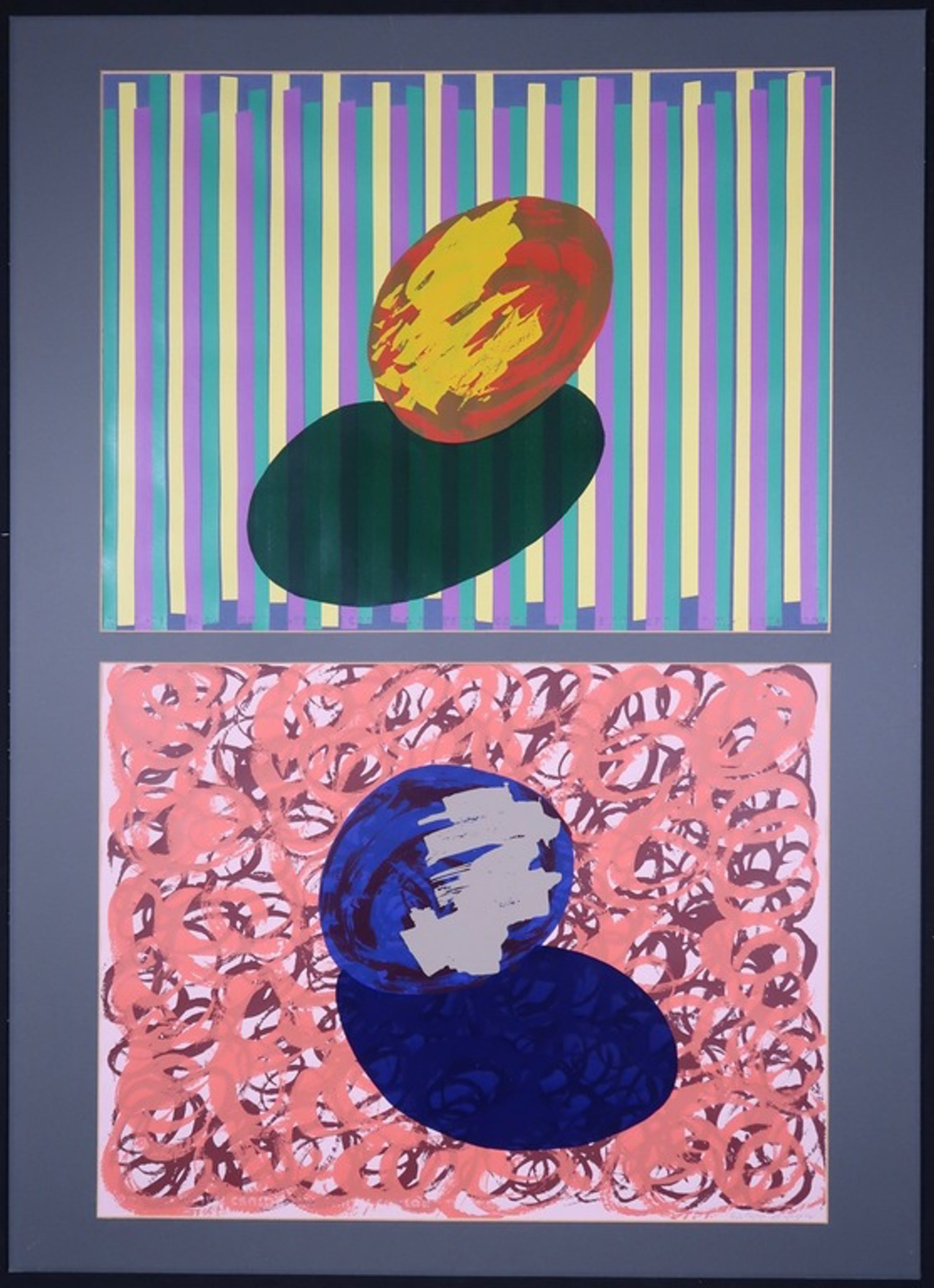 Materiaal: 2x Zeefdruk op papier, in 1 passe-partout