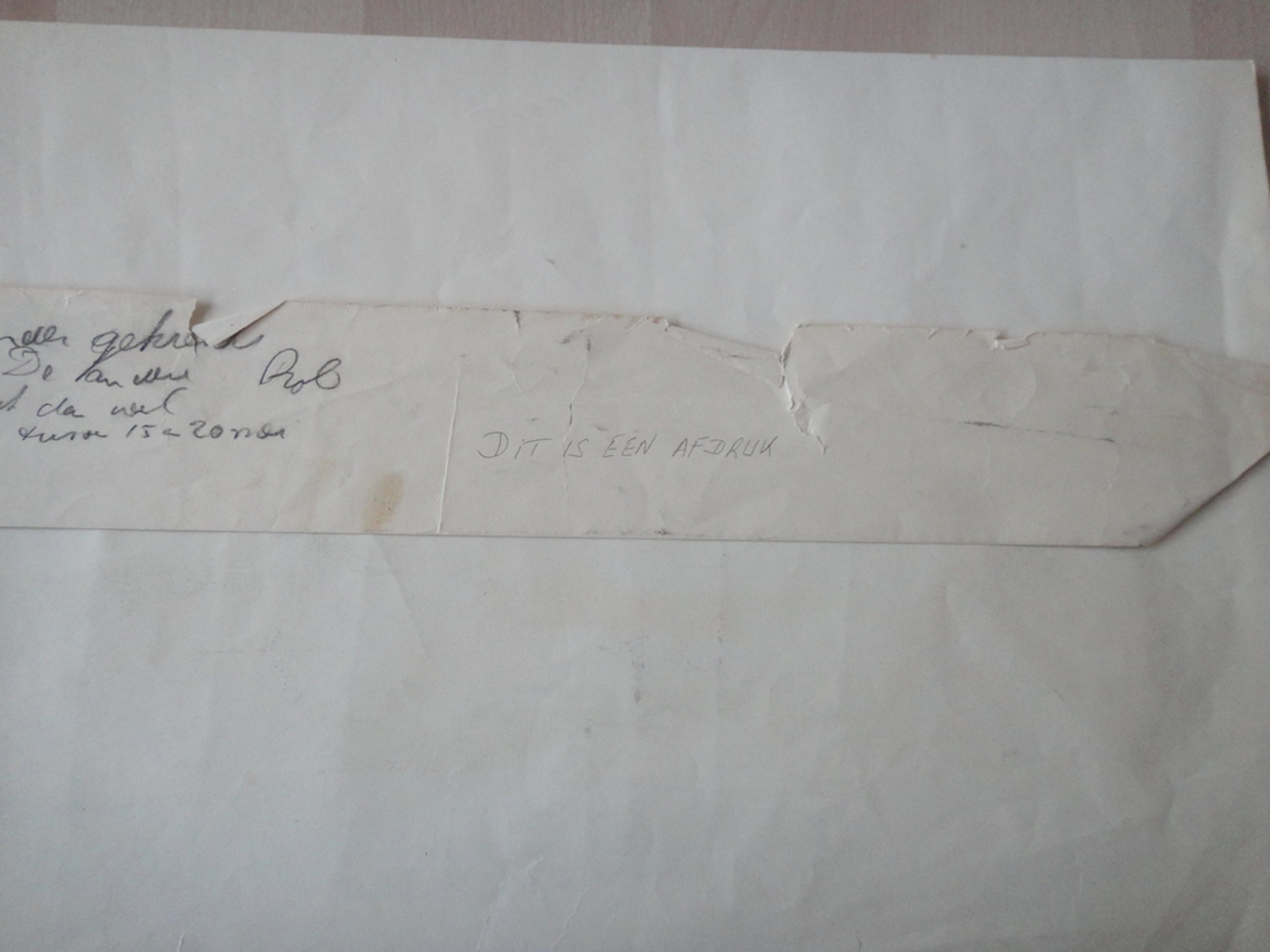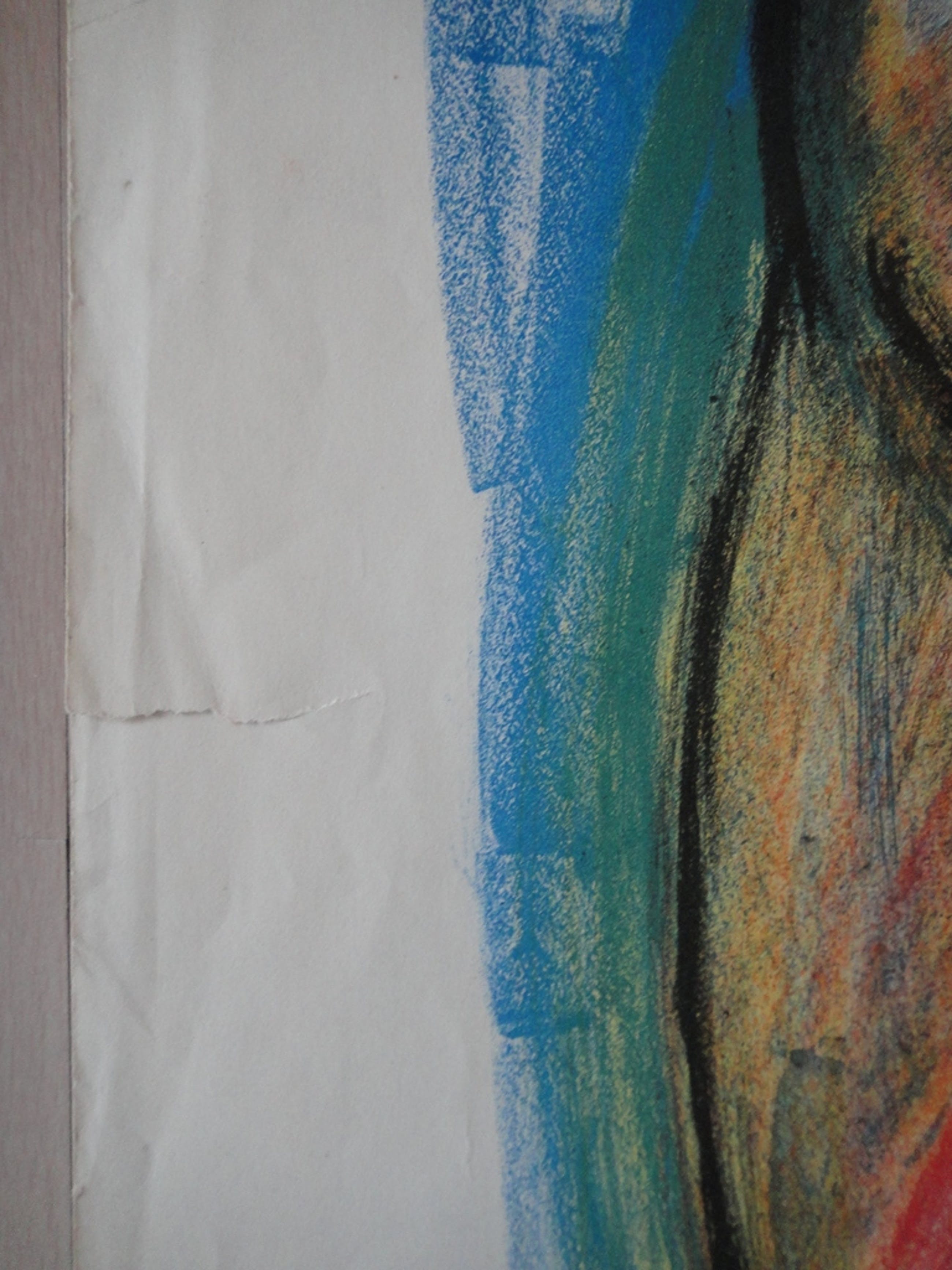 Aan de linkerzijde zit een scheurtje, dat bij inlijsten met passe-partout niet meer zichtbaar zal zijn.