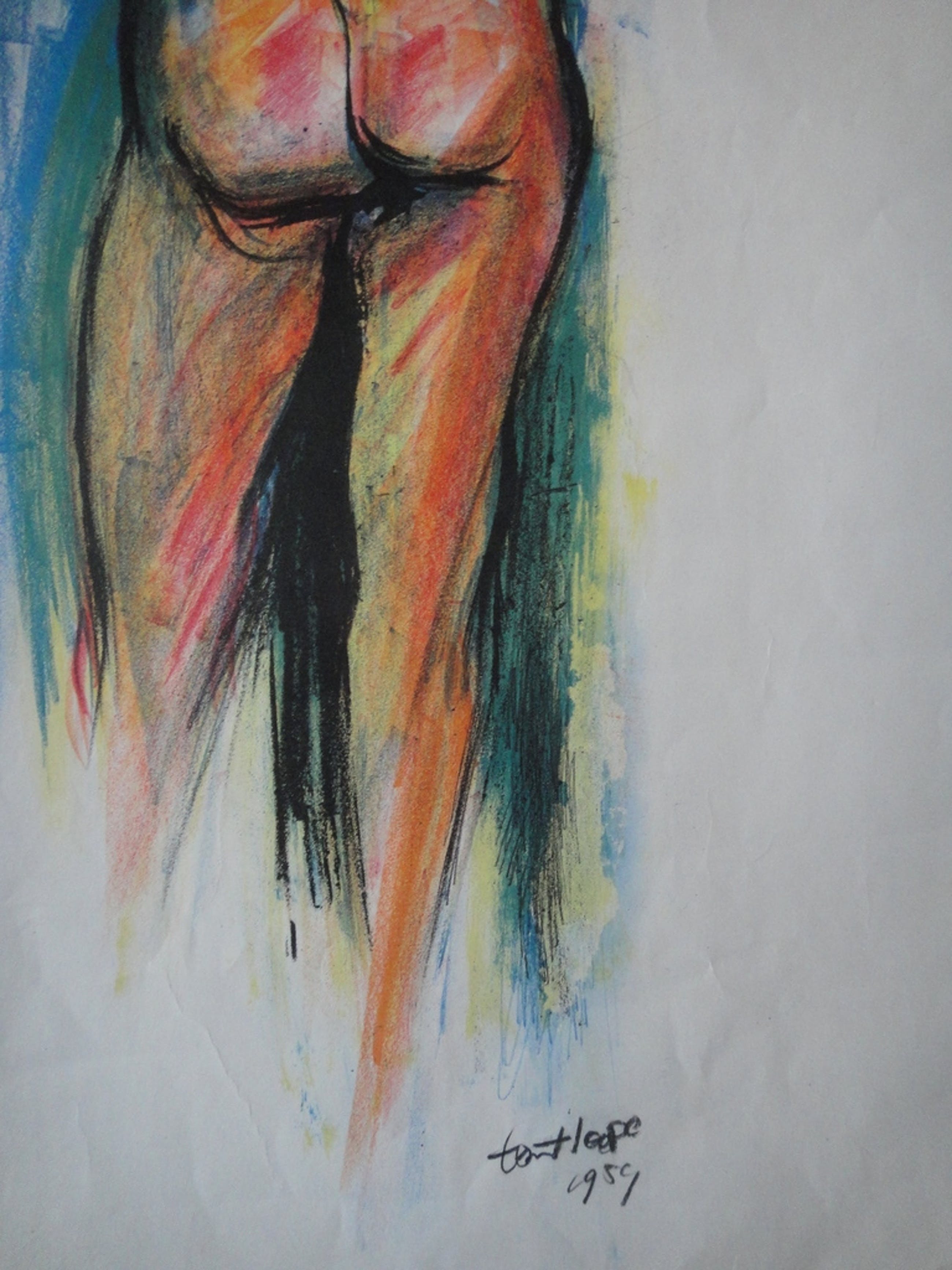 Litho door Bob ten Hoope (1920-2014) met voorstelling van een staand vrouwelijk naakt.