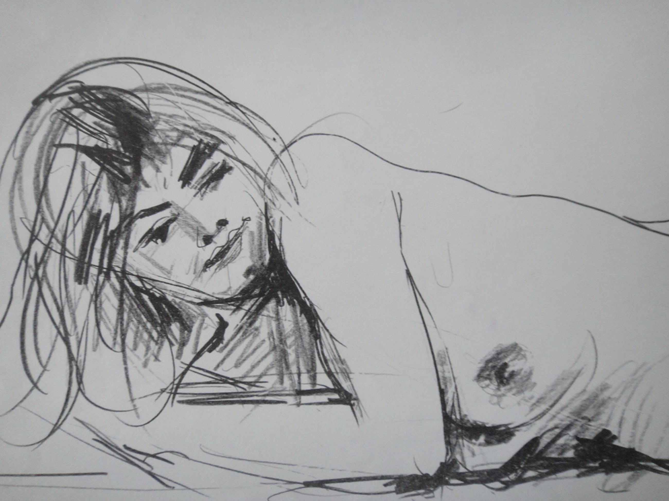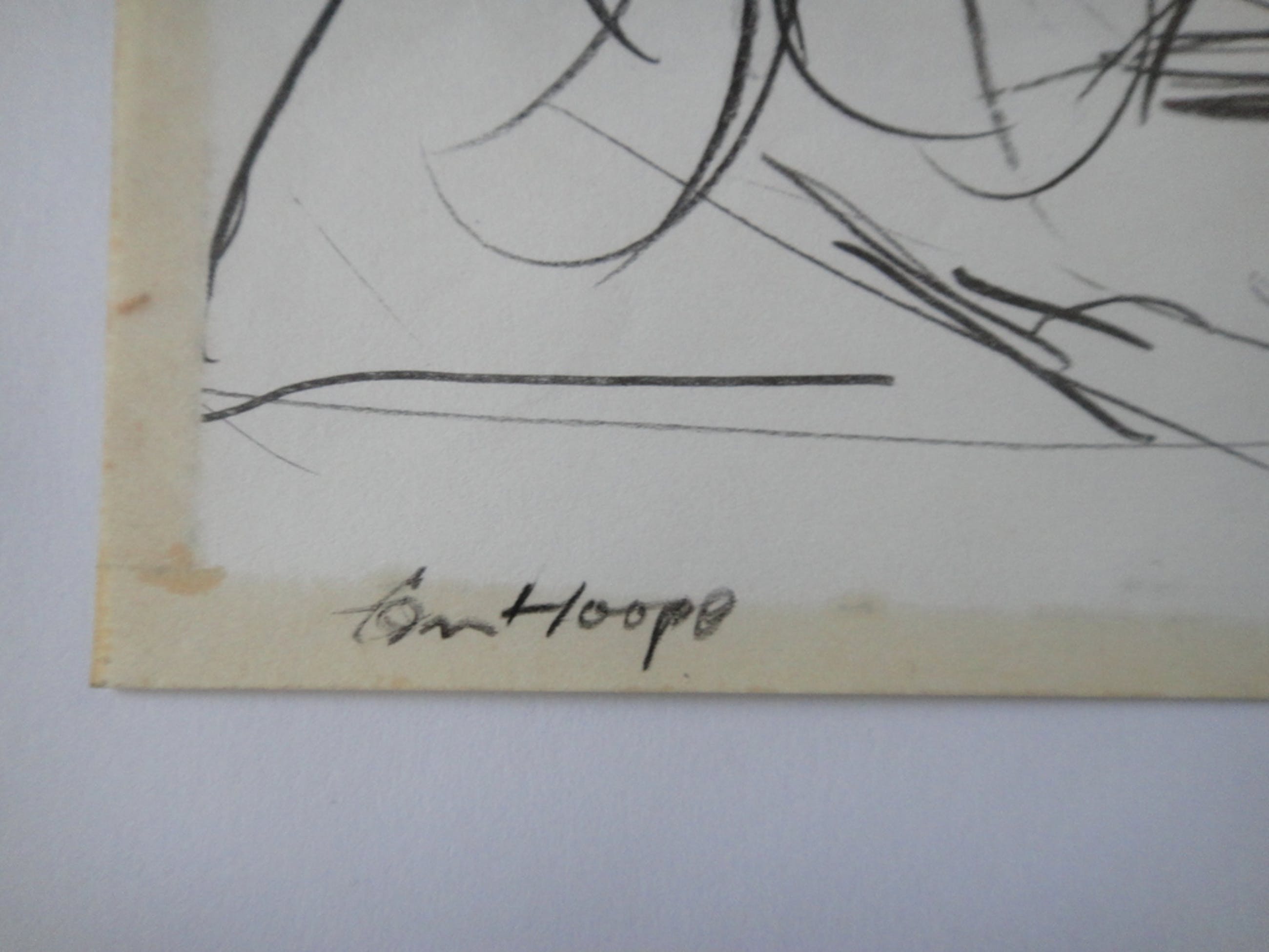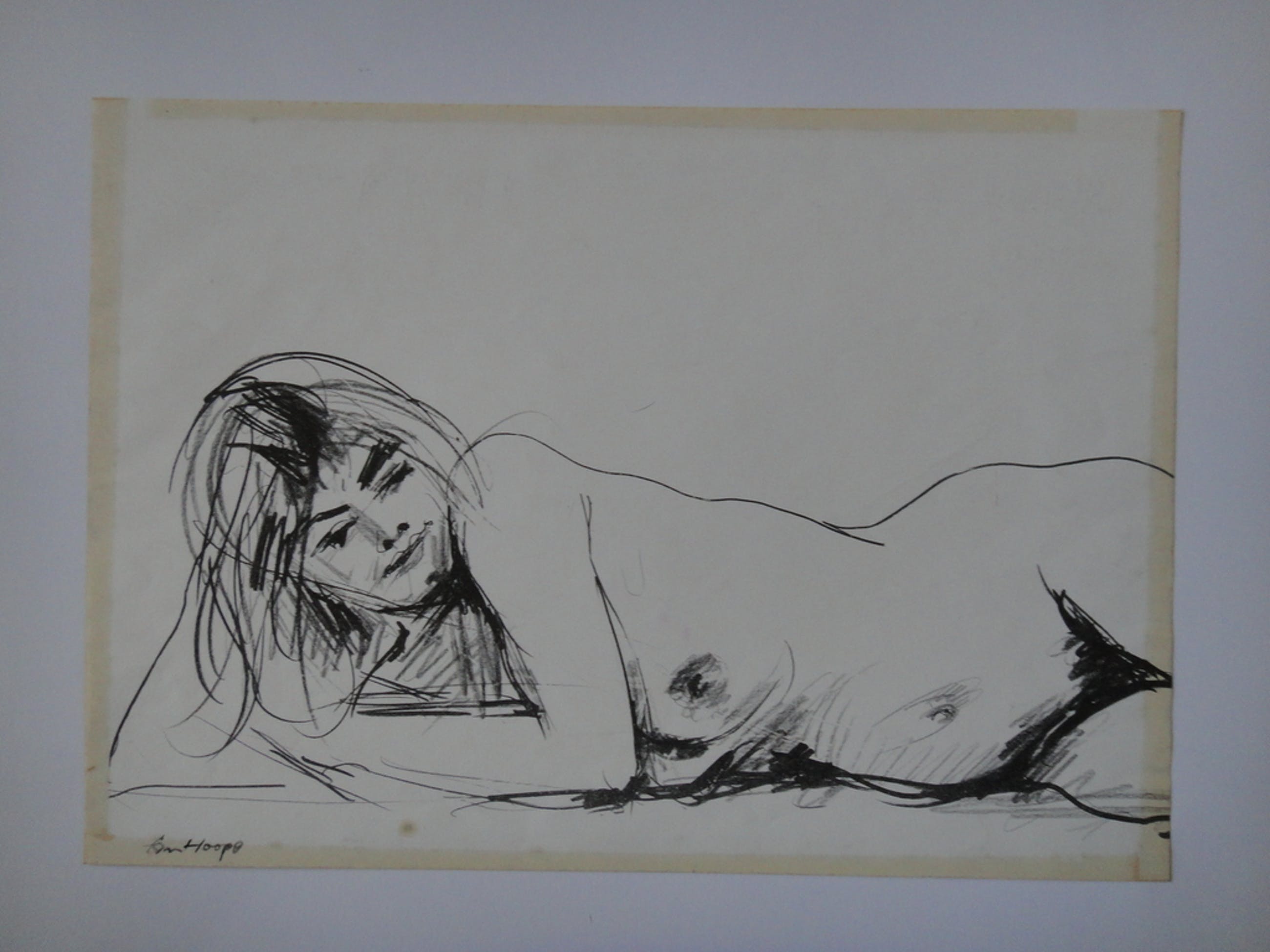 Fraaie, krachtige tekening door Bob ten Hoope (1920-2014) met voorstelling van een staand vrouwelijk naakt.