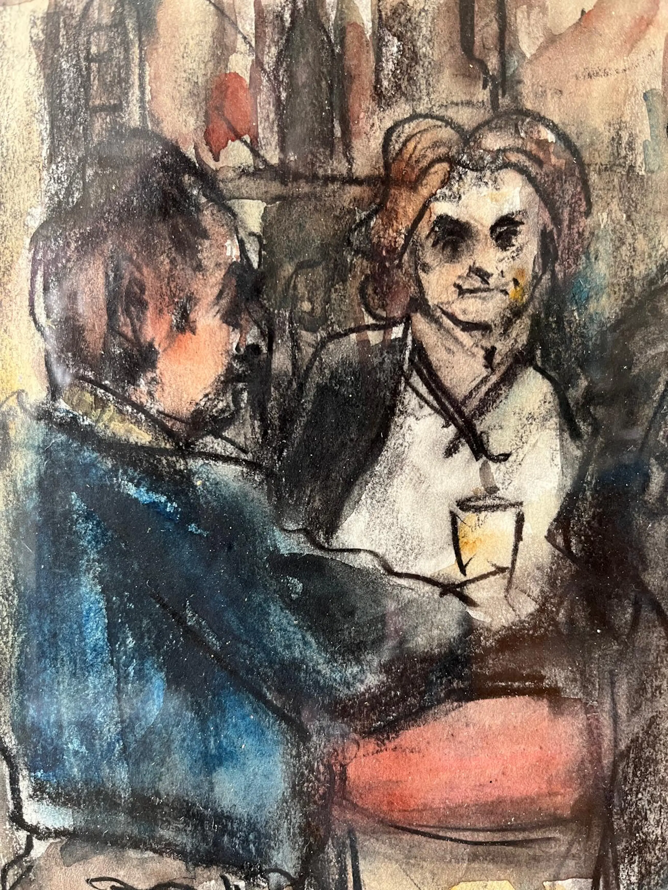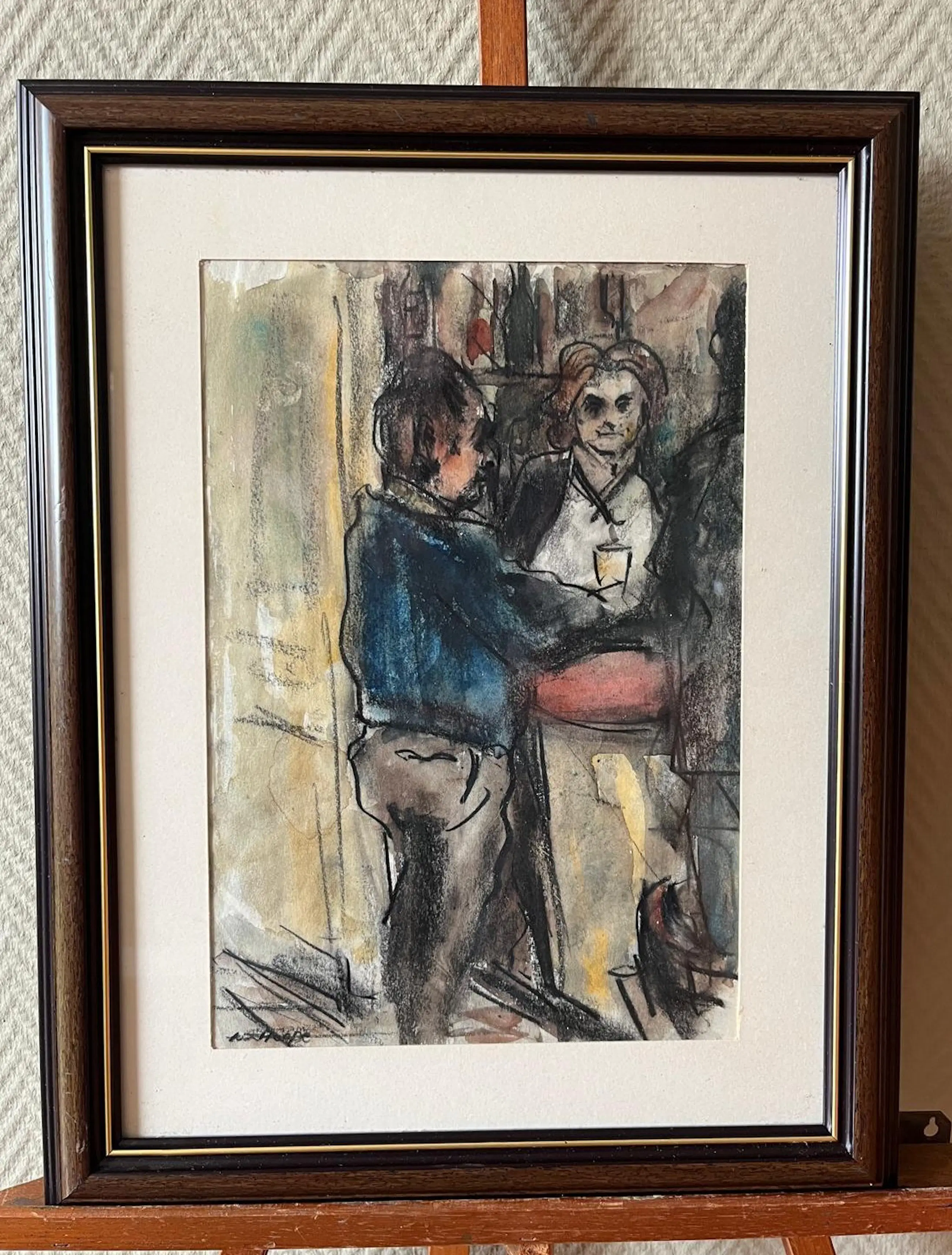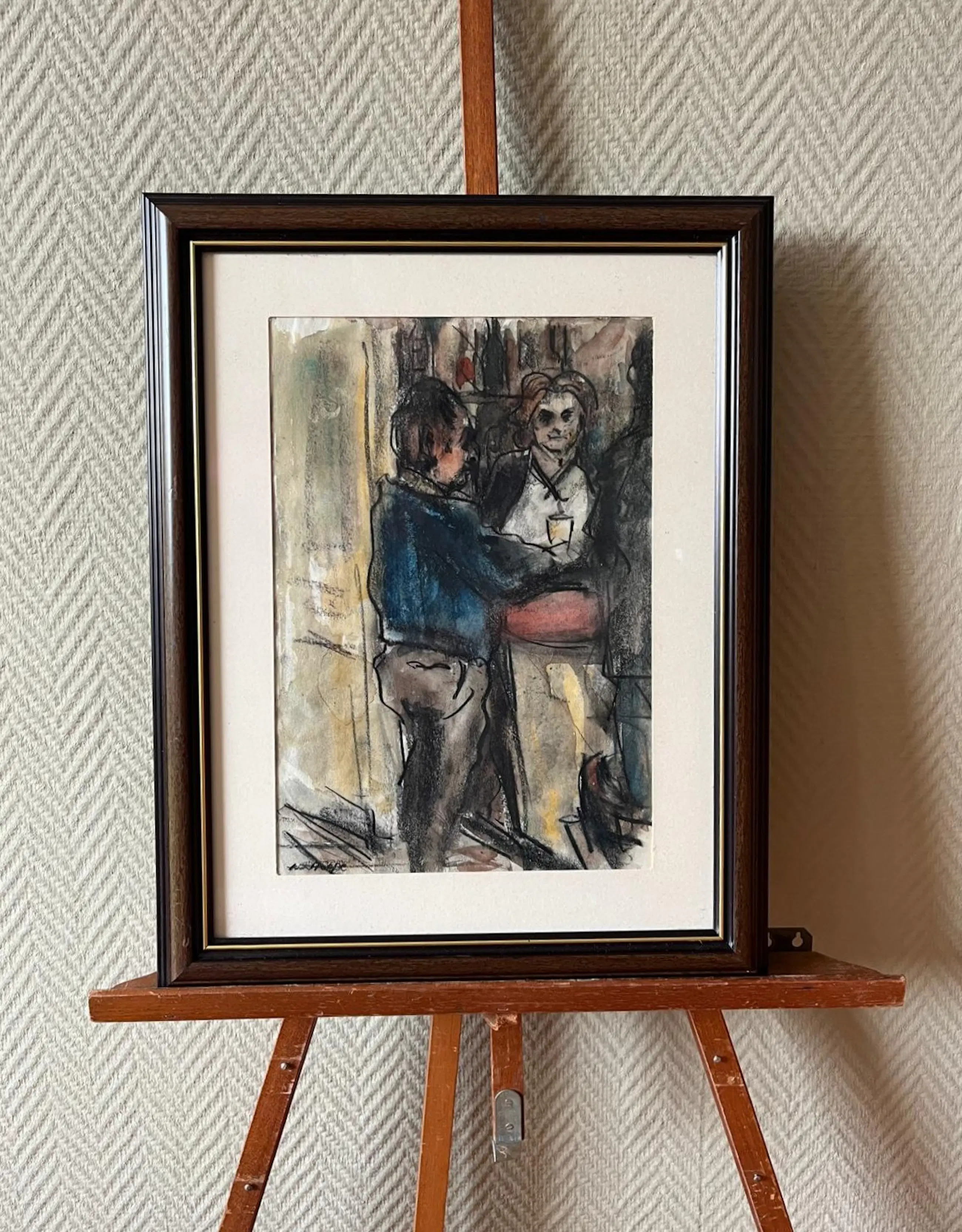 Fraaie voorstelling in houtskool en aquarel op papier