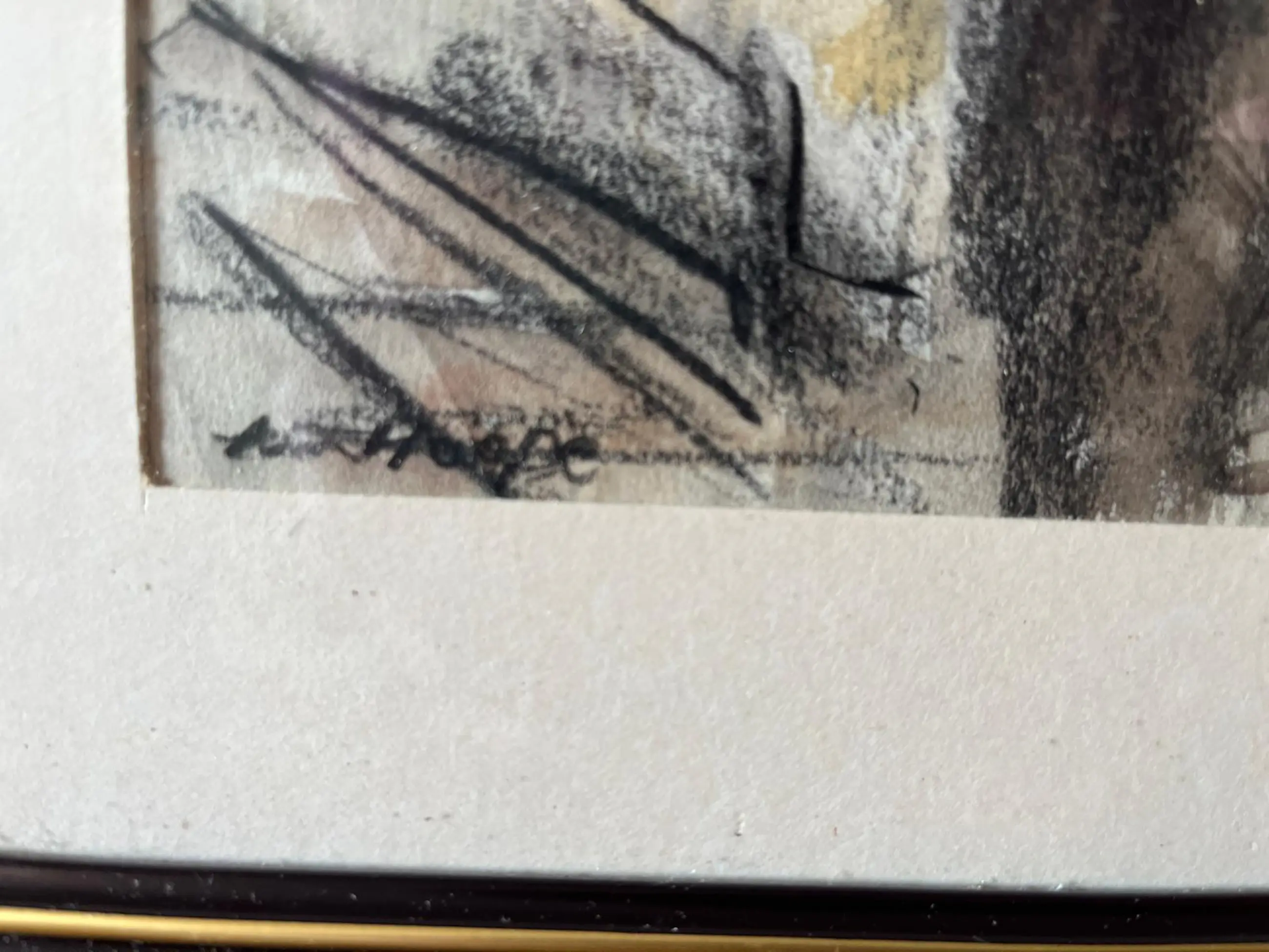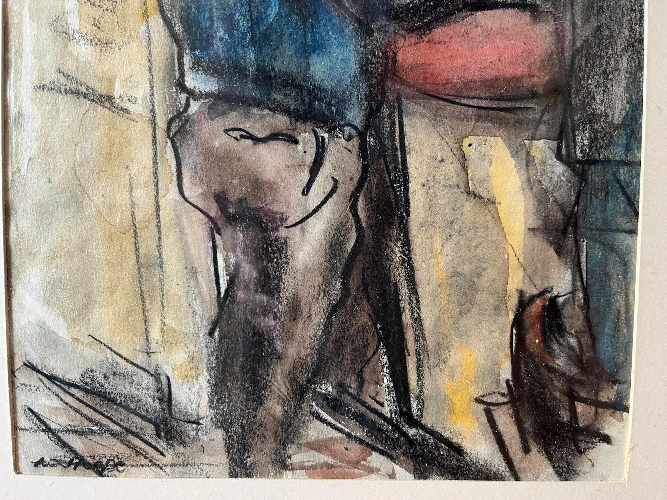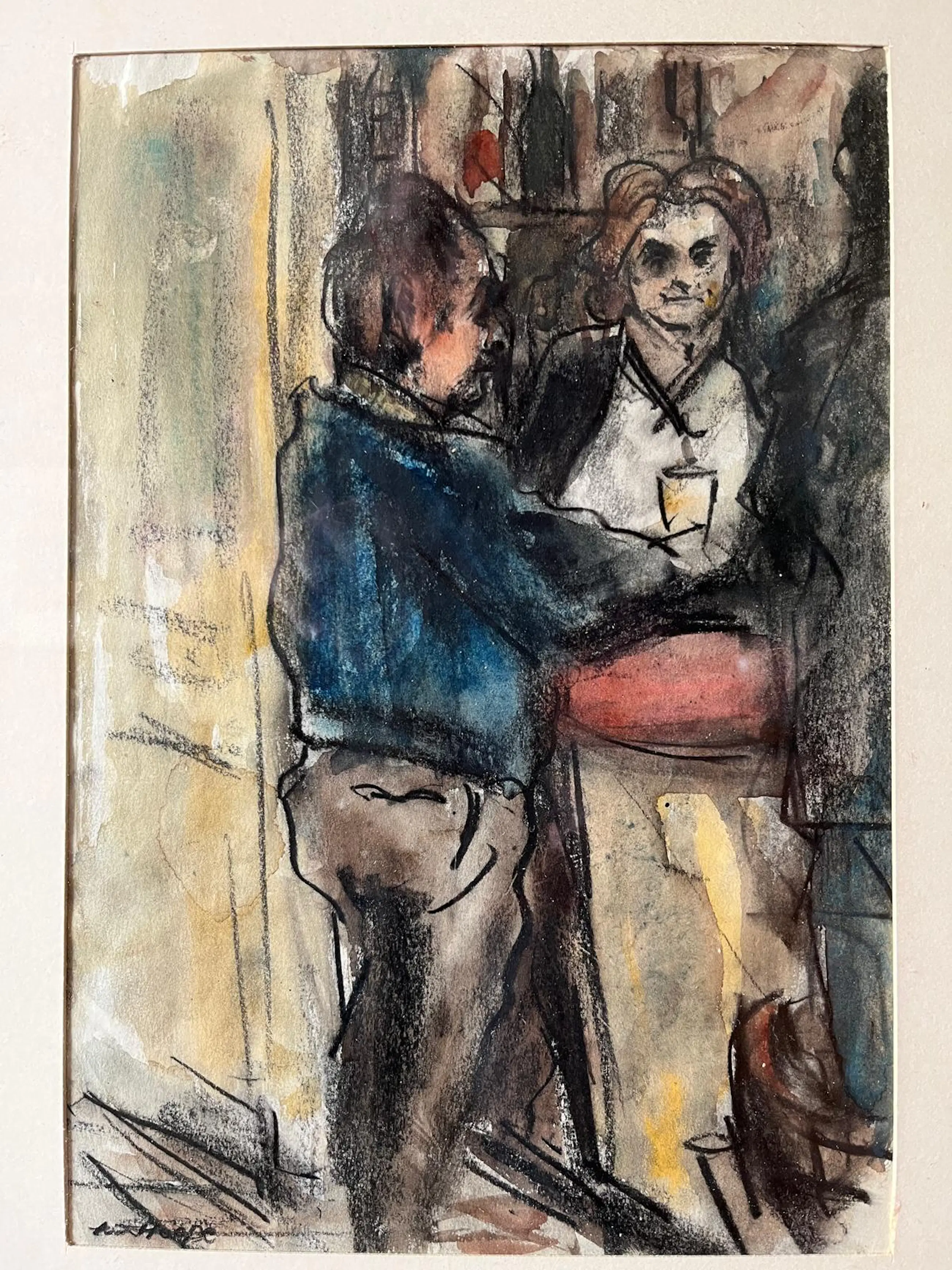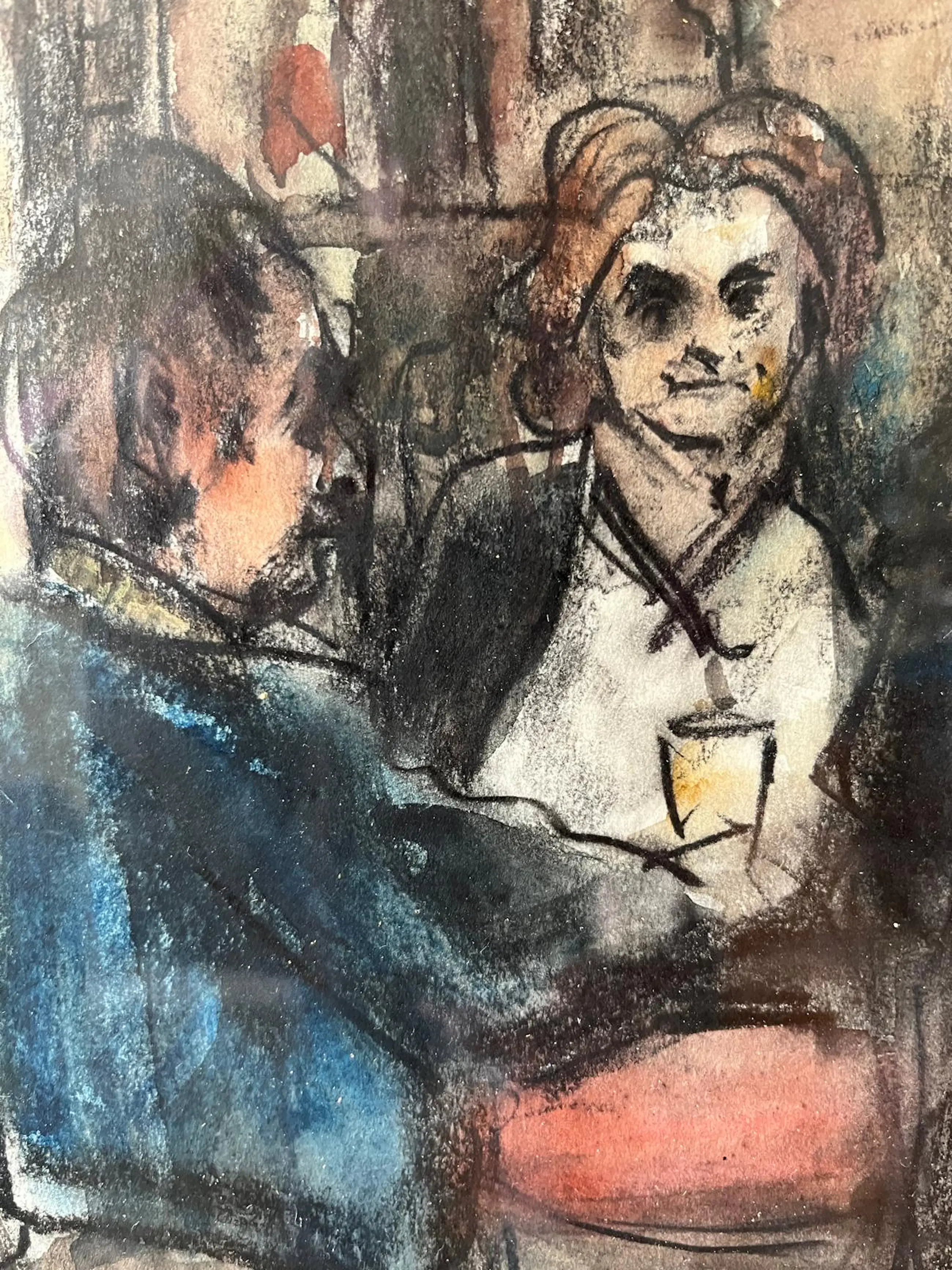 Fraaie voorstelling in houtskool en aquarel op papier