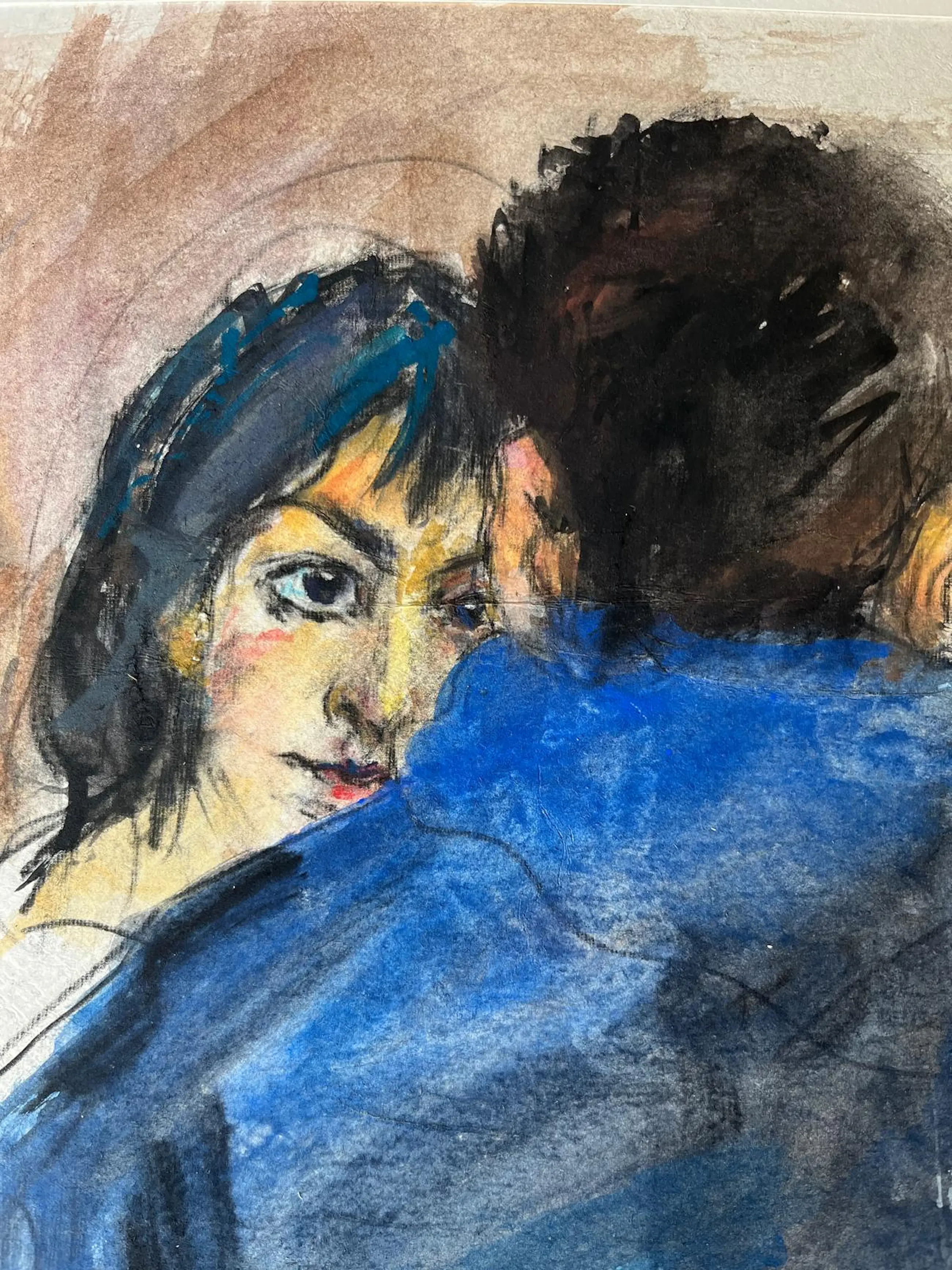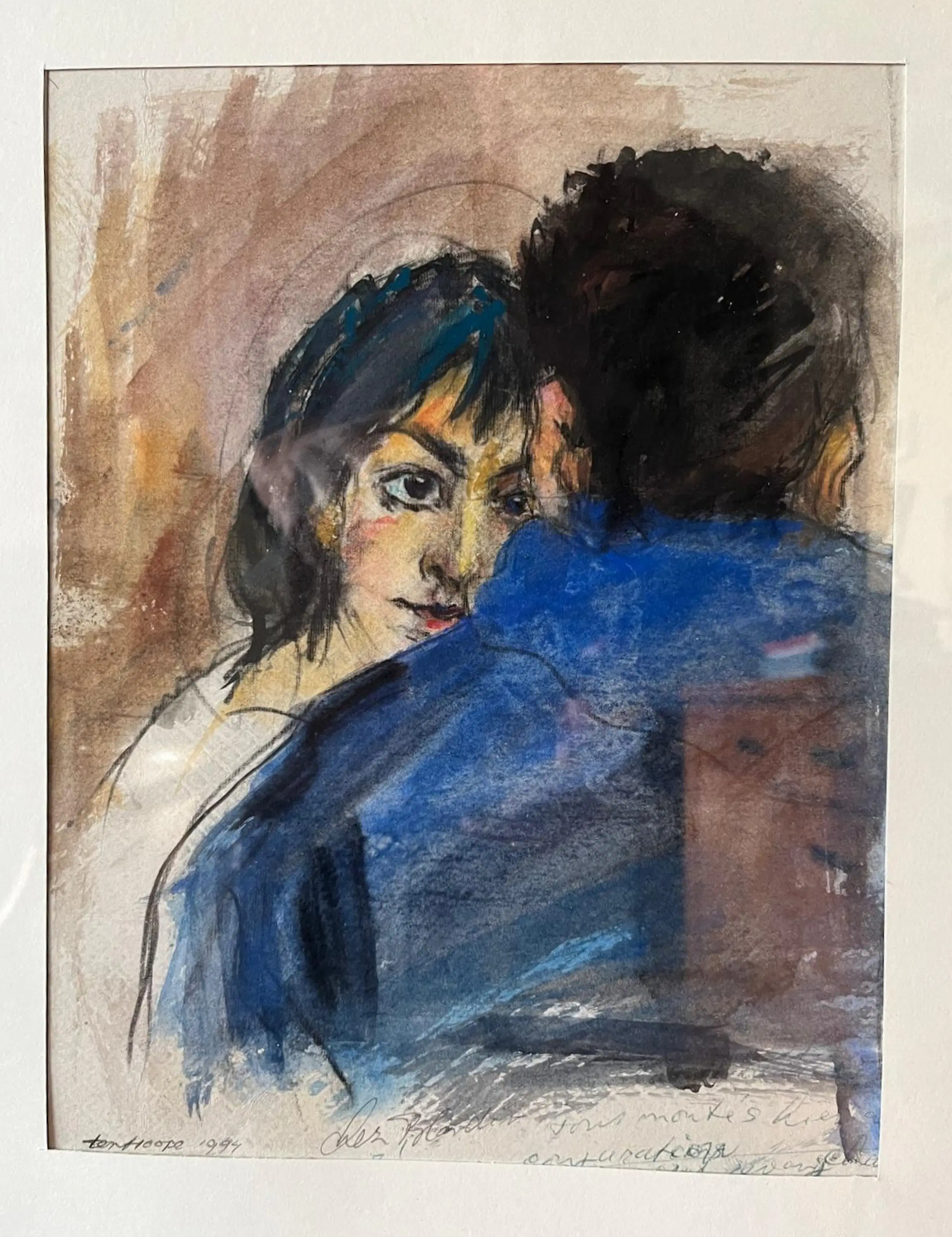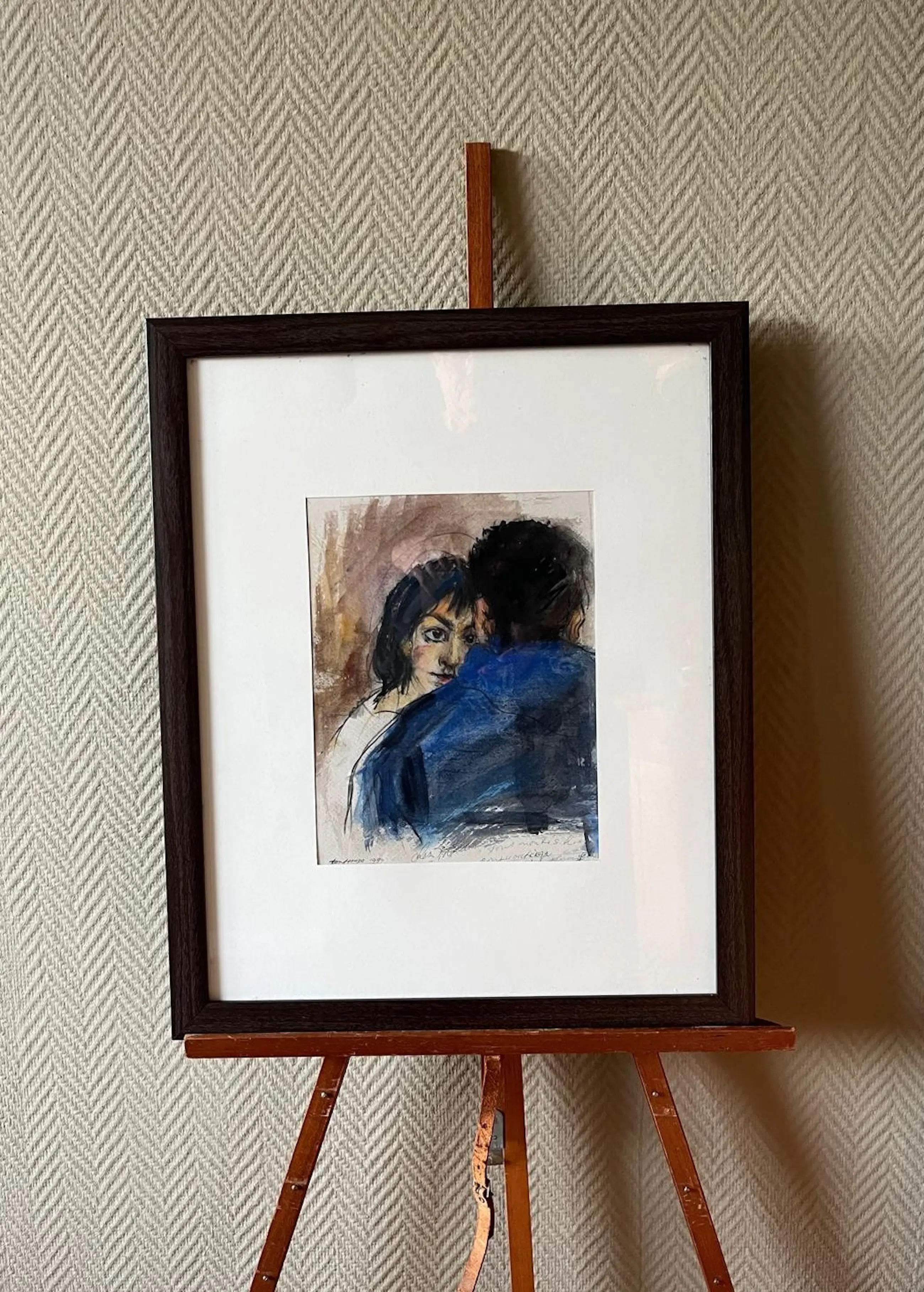 Fraaie voorstelling in houtskool en aquarel op papier
