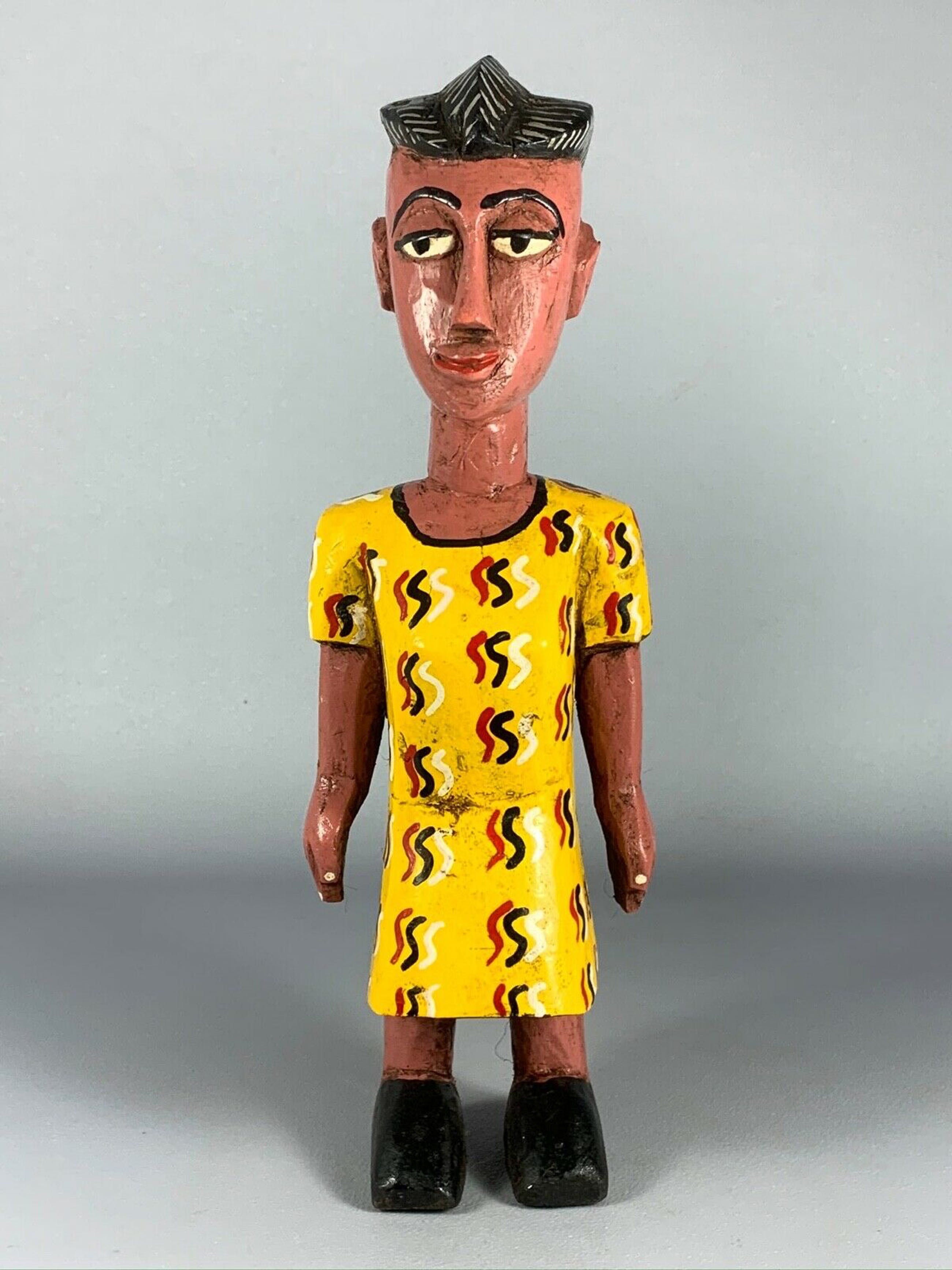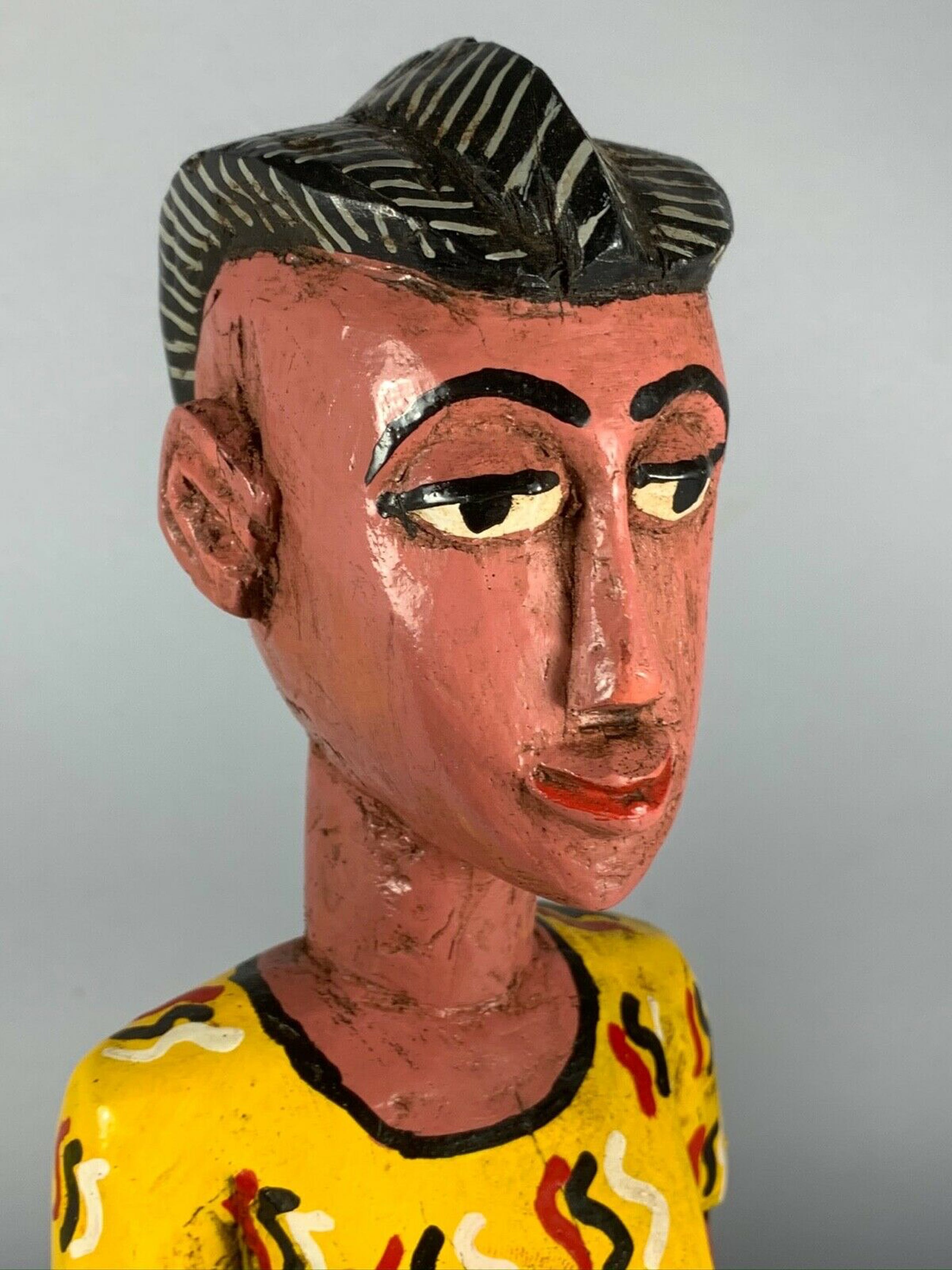 Hand carved from a single piece of colorful painted wood.