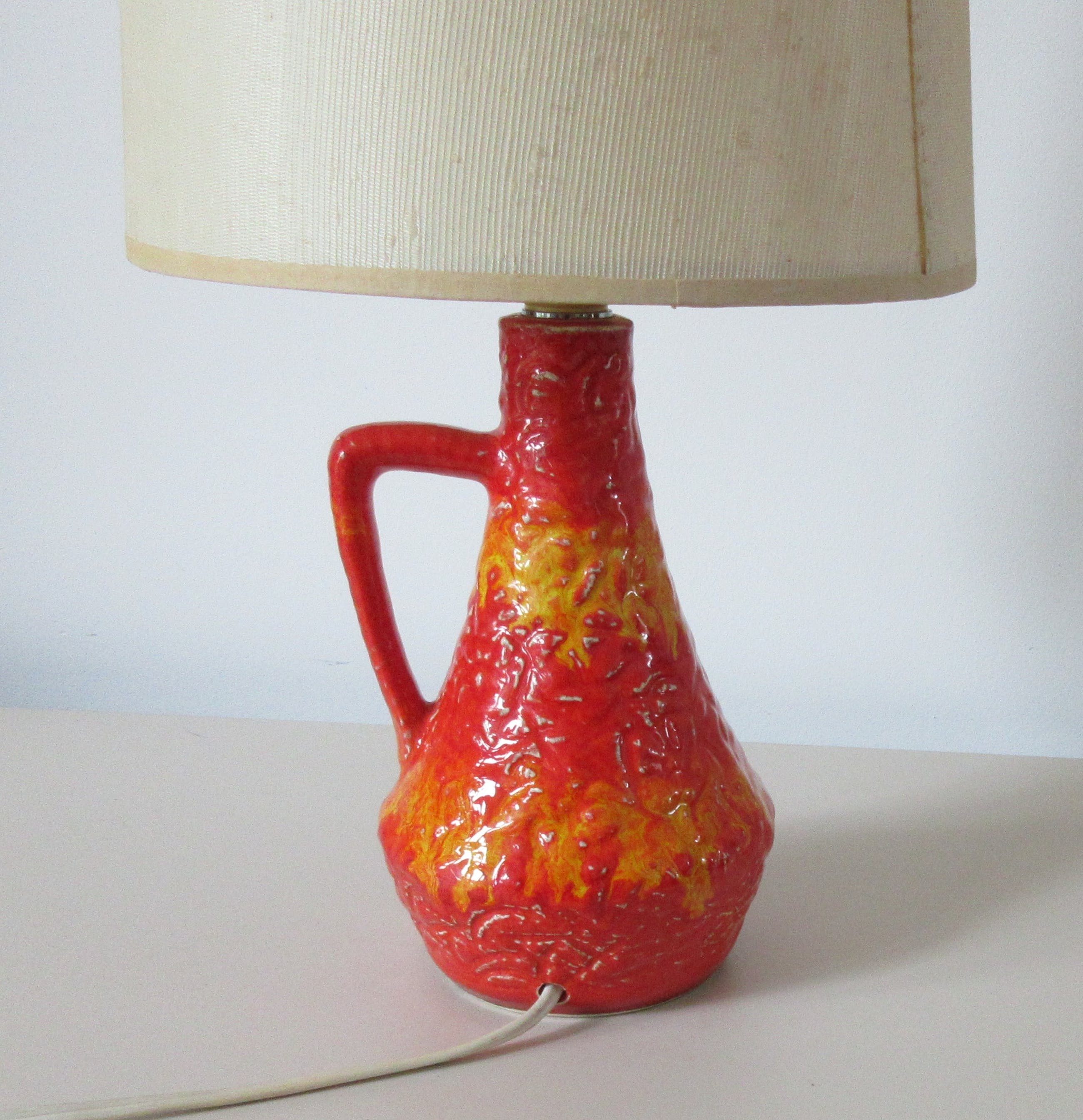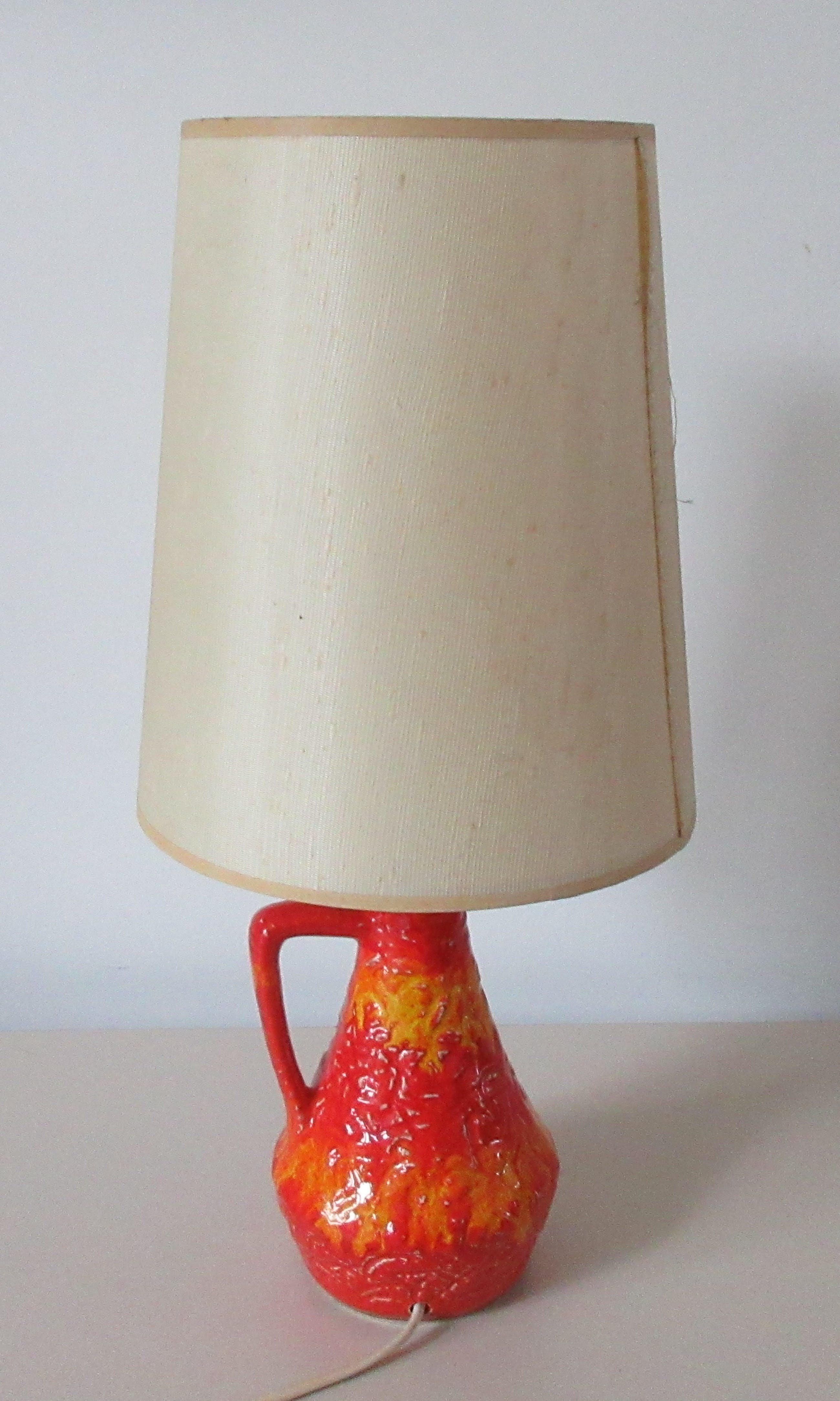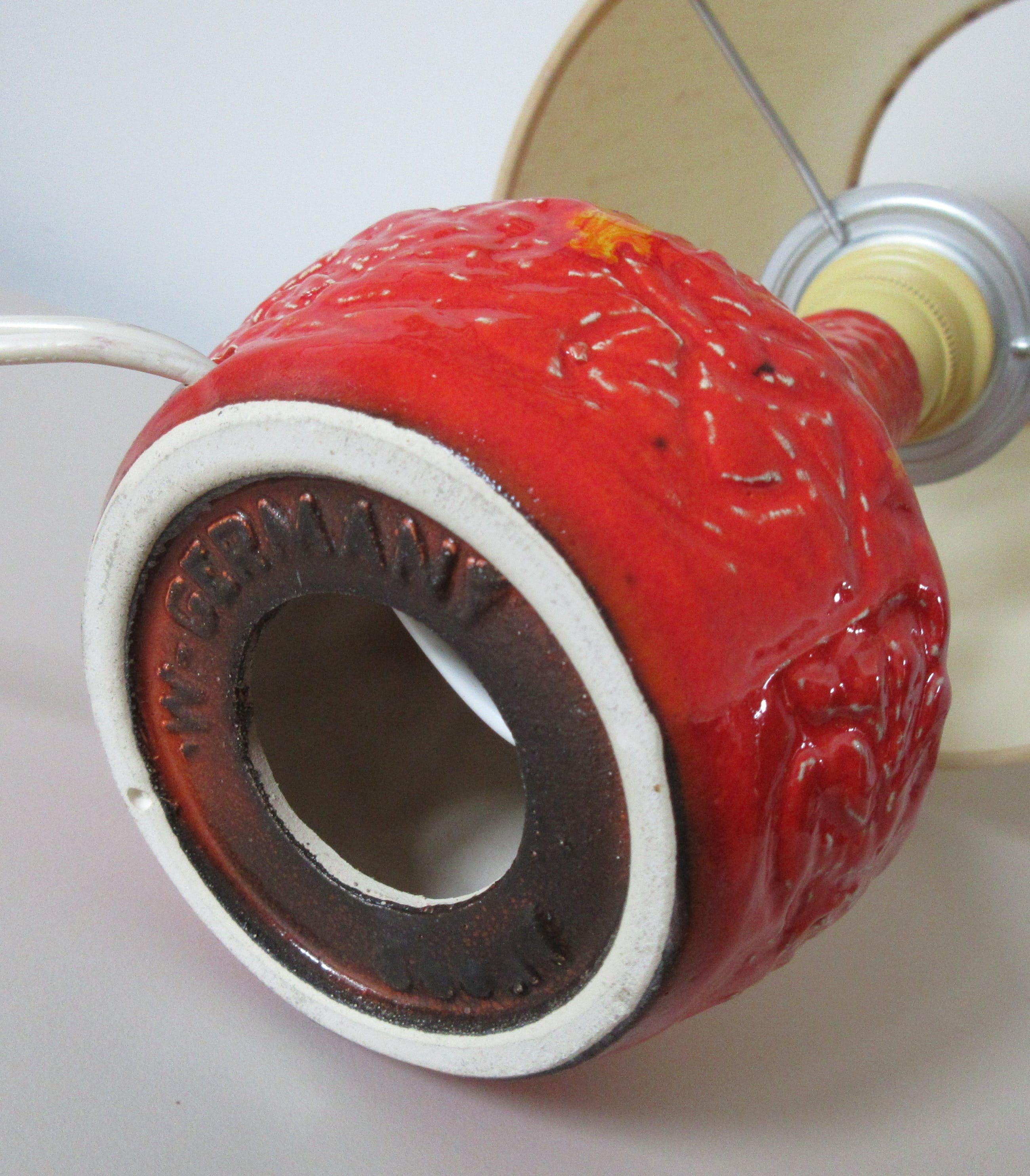 Fat Lava Oranje Rode lampvoet model 566-17 incluis originele kap - Bay Keramik. Ontwerp Bodo Mans in de jaren '60. In perfecte ongebruikte nieuwstaat, de plastic hoes zit nog om de kap heen. Genummerd + W. Germany aan de onderzijde.