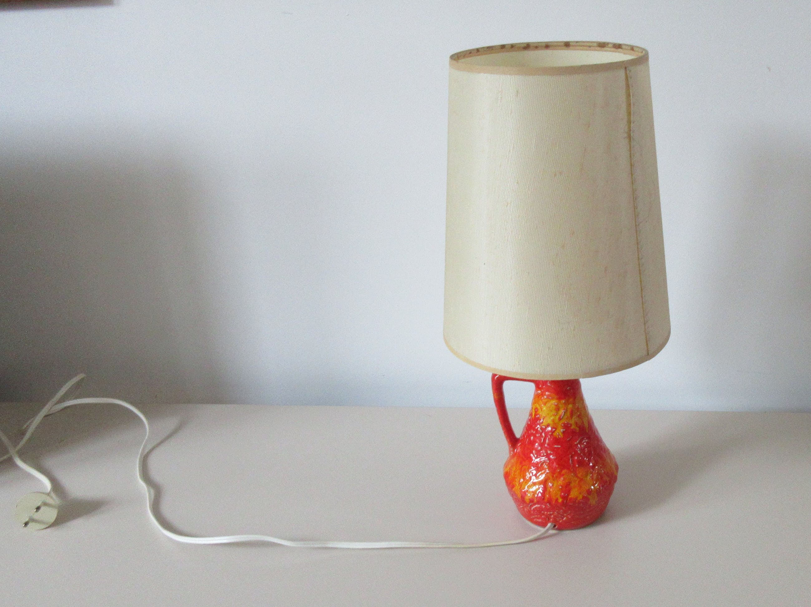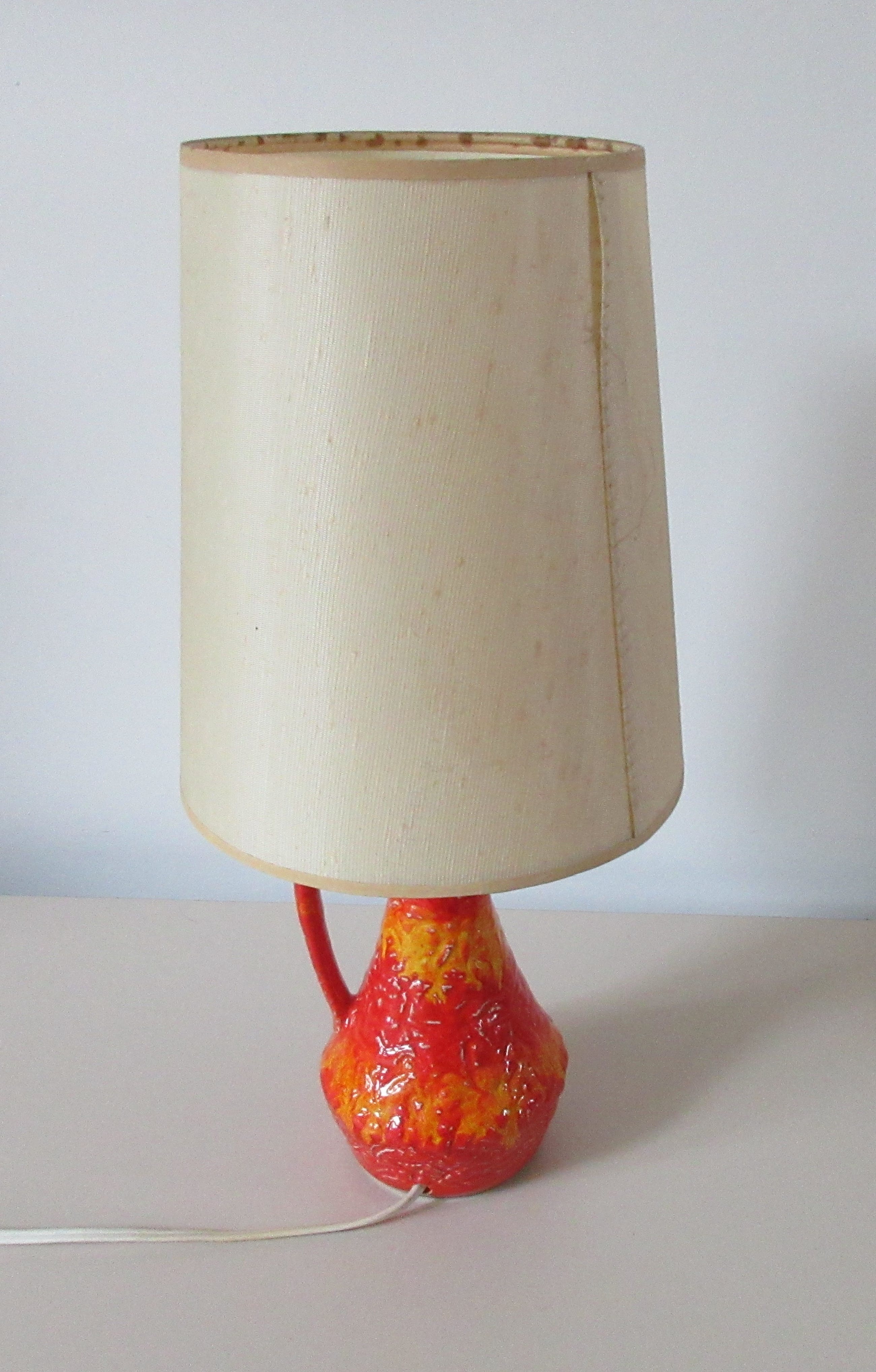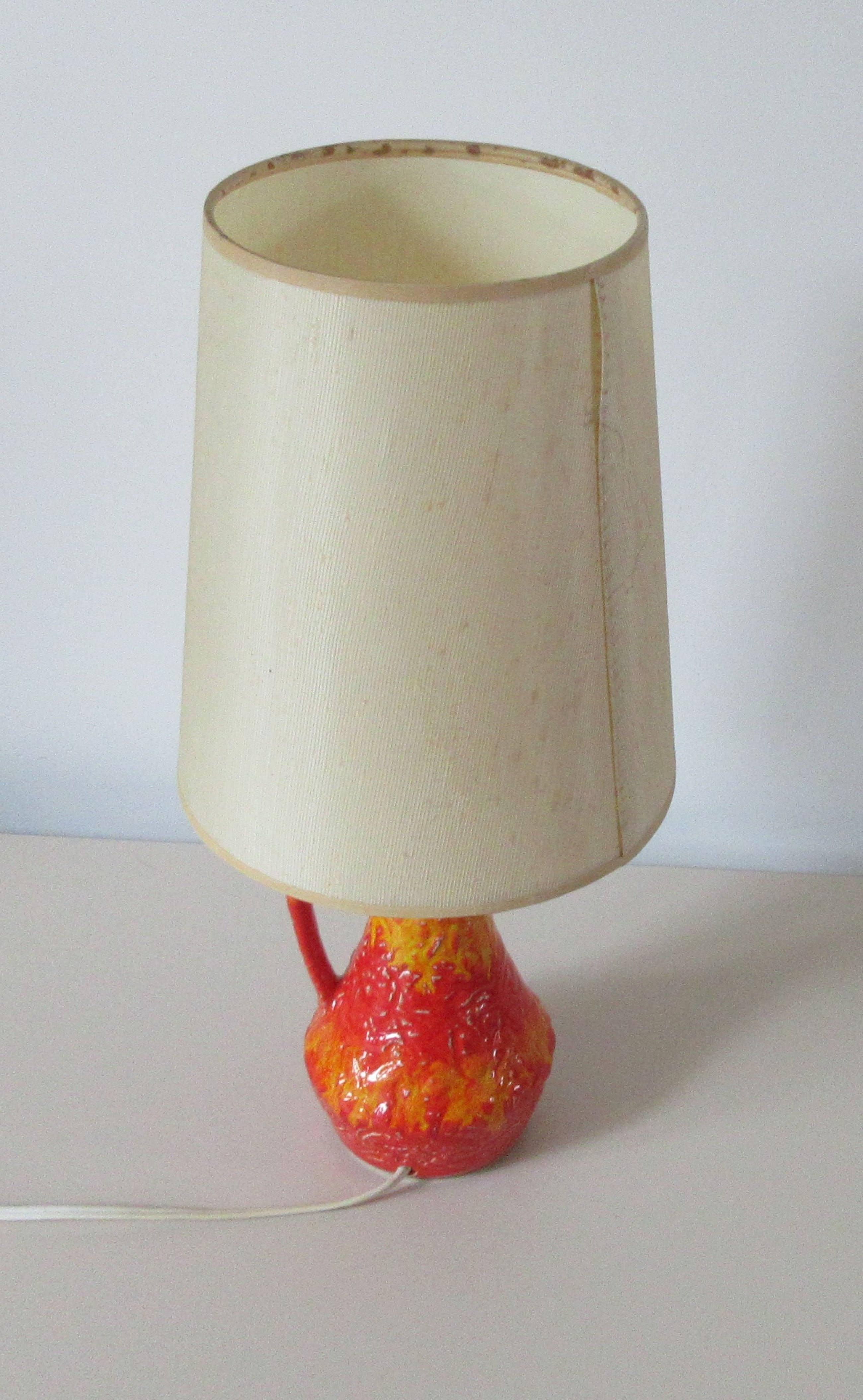 Fat Lava Oranje Rode lampvoet model 566-17 incluis originele kap - Bay Keramik. Ontwerp Bodo Mans in de jaren '60. In perfecte ongebruikte nieuwstaat, de plastic hoes zit nog om de kap heen. Genummerd + W. Germany aan de onderzijde.