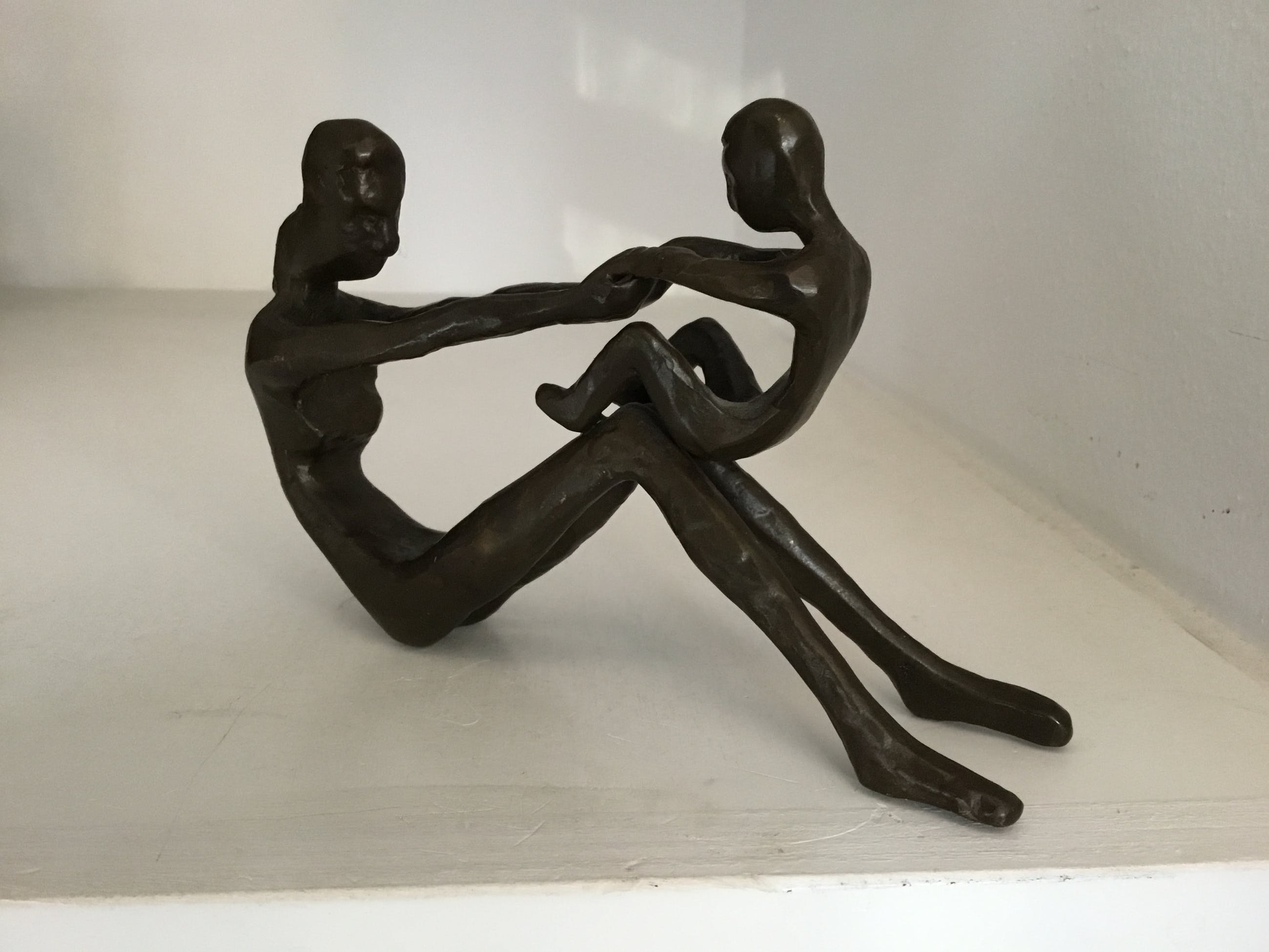 Mooi en vertederend sculptuur van een moeder spelend met haar kind. Kunstenares : Bodrul Khalique Materiaal : verbronsd metaal Het sculptuur verkeert in goede staat en wordt zorgvuldig verpakt en aangetekend verzonden