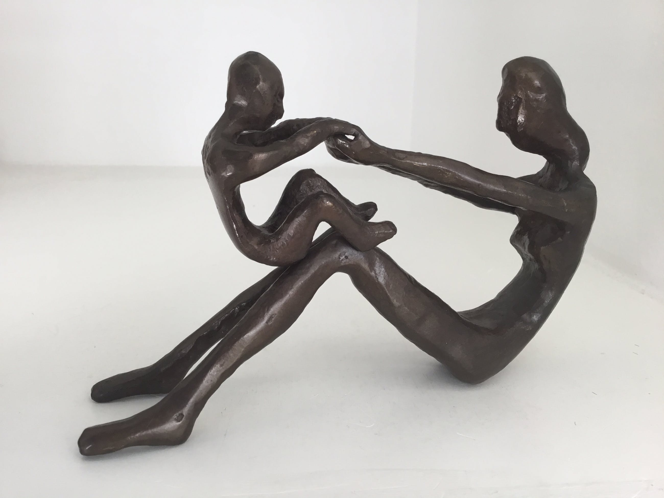 Twee zeer fraaie sculpturen van de bekende kunstenares Bodrul Khalique. Sculptuur “ Moeder hand in hand “ Hoogte : 20 cm Breedte: 13 cm Sculptuur “ Zittende moeder met kind “ Hoogte: 11 cm Lengte: 15 cm Materiaal: verbronsd metaal. De twee sculpturen verkeren in goede staat en worden zorgvuldig verpakt en aangetekend verzonden.