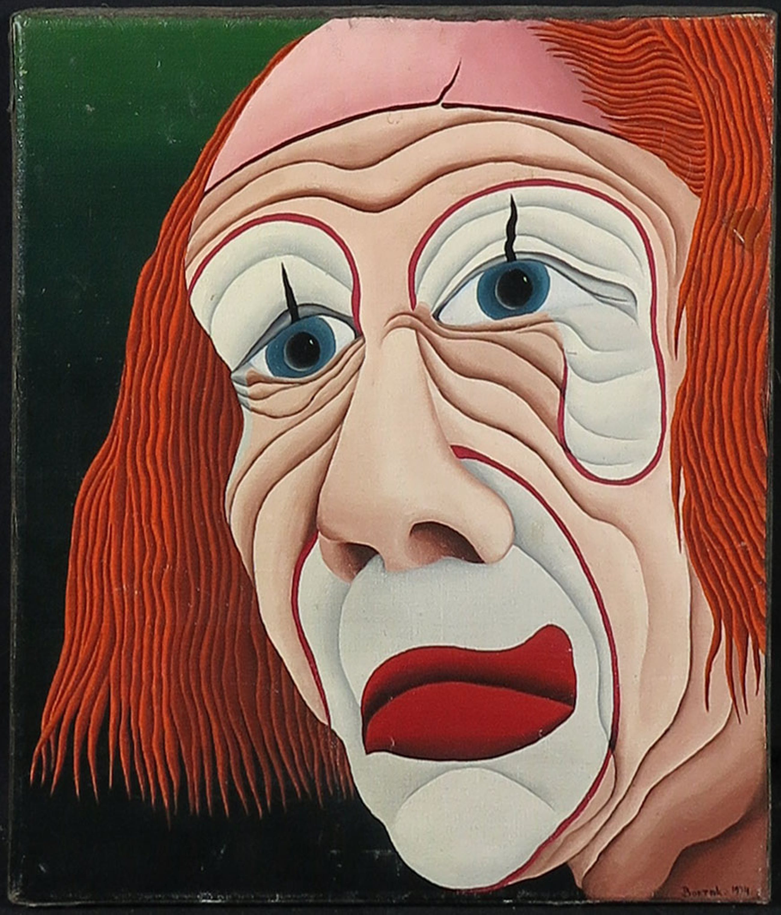 | Rechts t.h.v. de ogen een beschadiging langs de rand welke (amateuristisch) is gerestaureerd. Langs de randen en hoeken van werk slijtage en enkele plekjes in het beeld. | |||