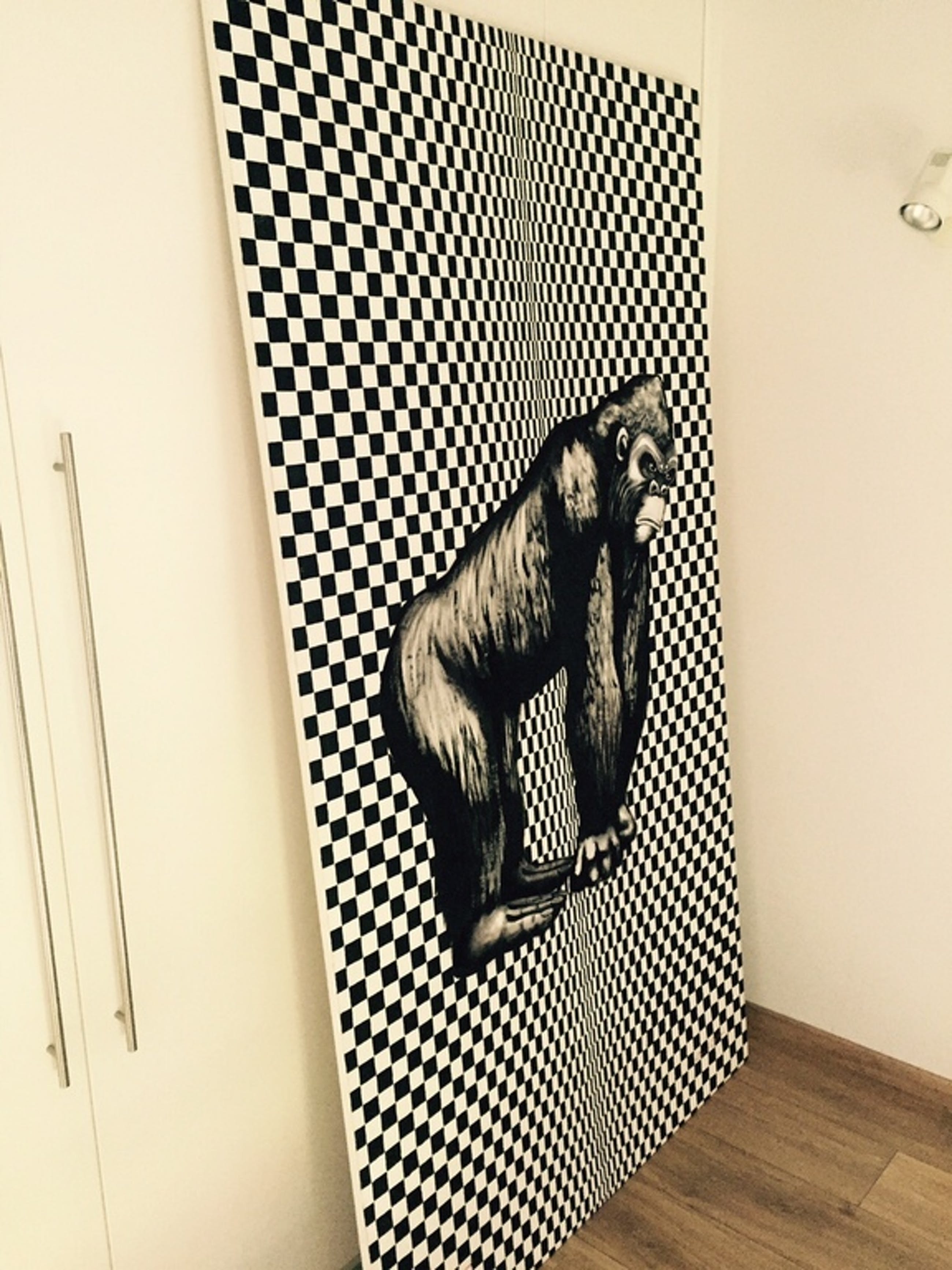 Prachtig groot werk op canvas, meet 2 m op 1,15 m. In goede staat.