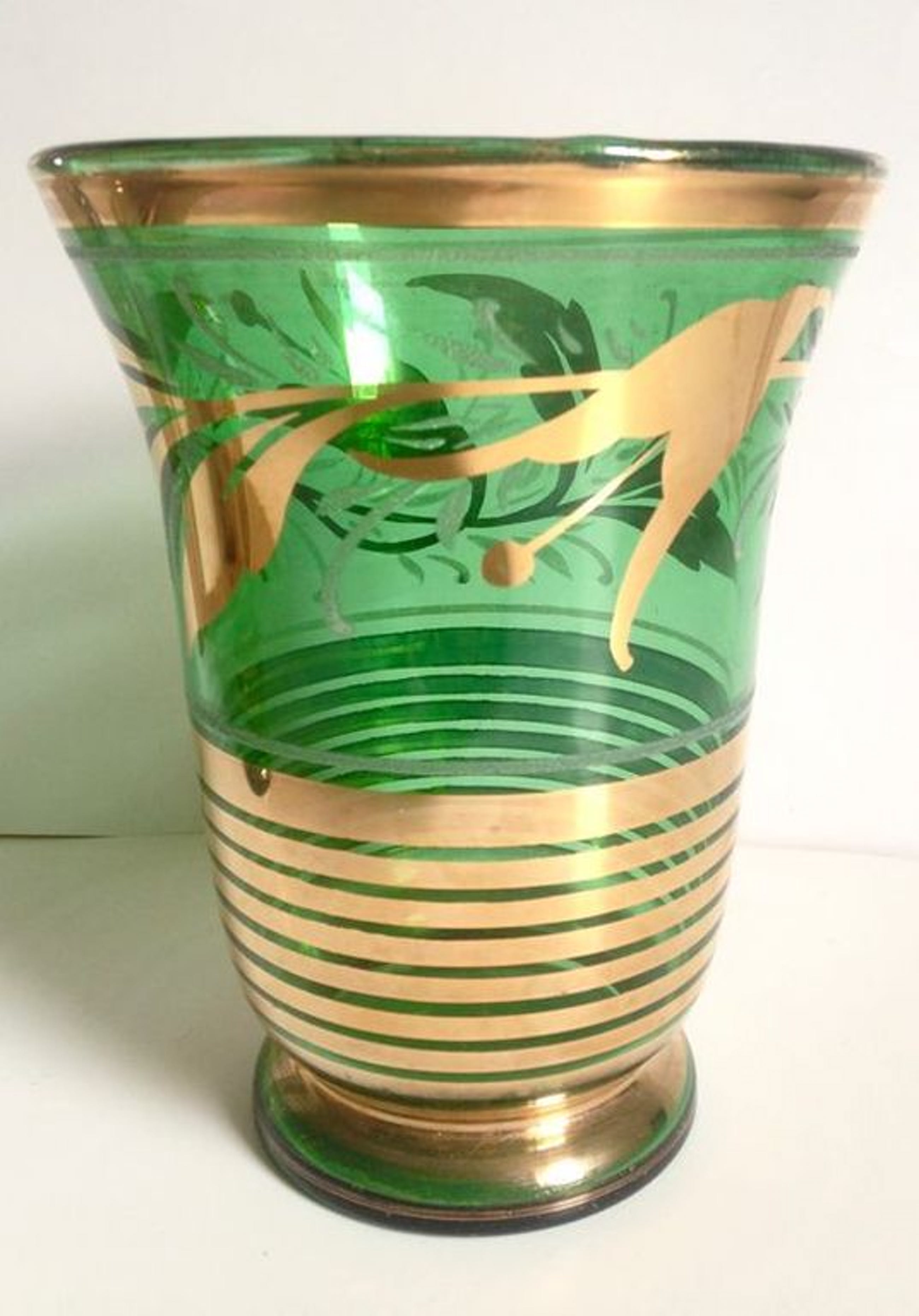 De grote vaas heeft een floraal verguld decor en de kleinere een decor van parallelle banen.
