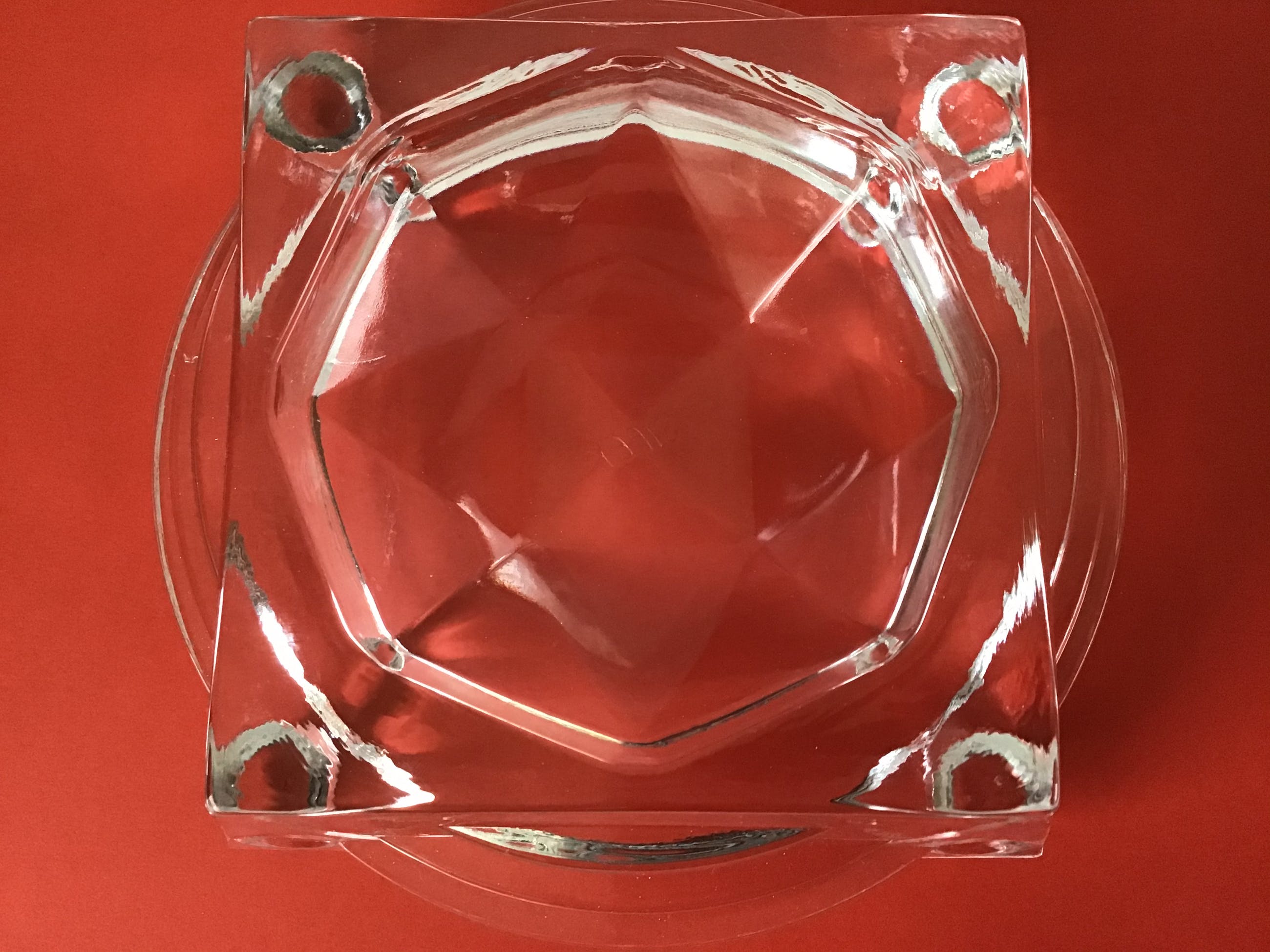 Mooie glazen schaalbaar de bekende Tjechische glaskunstenaar Borek Sipek De schaal staat op 4 glazen pootjes en loopt trapsgewijs op.