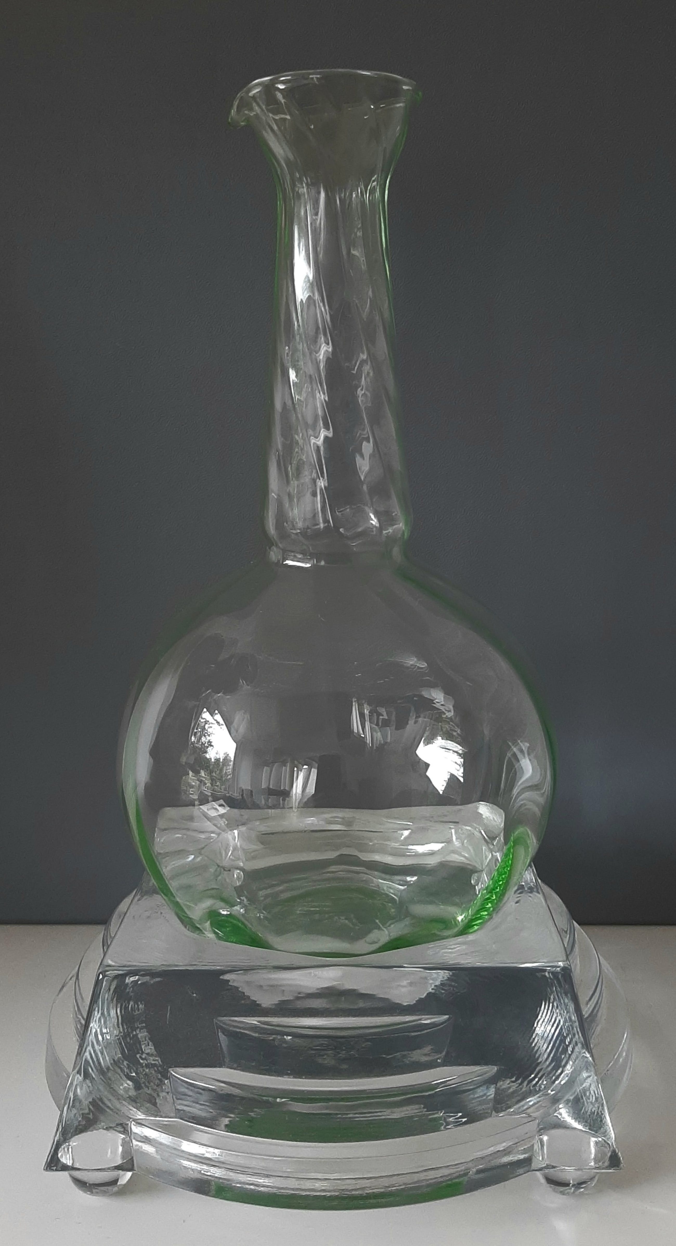Handgemaakte karaf en koeler/houder Boheems glas. Gemaakt voor DSM, originele verpakking aanwezig.