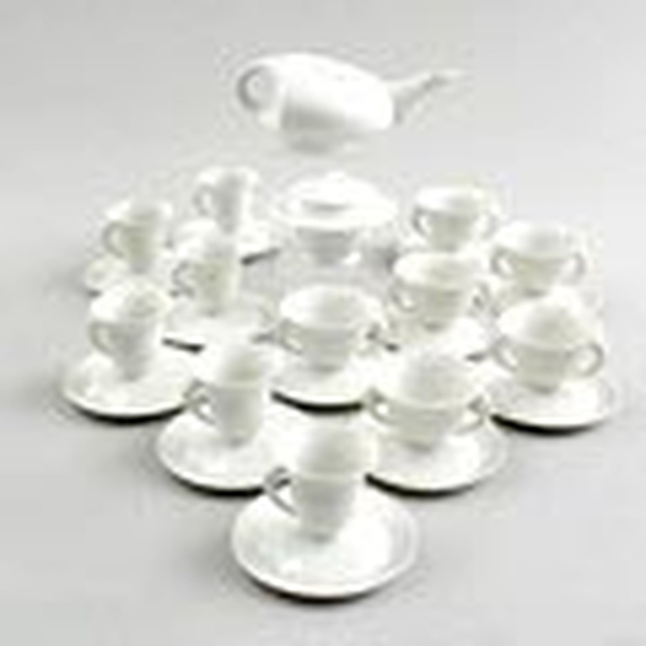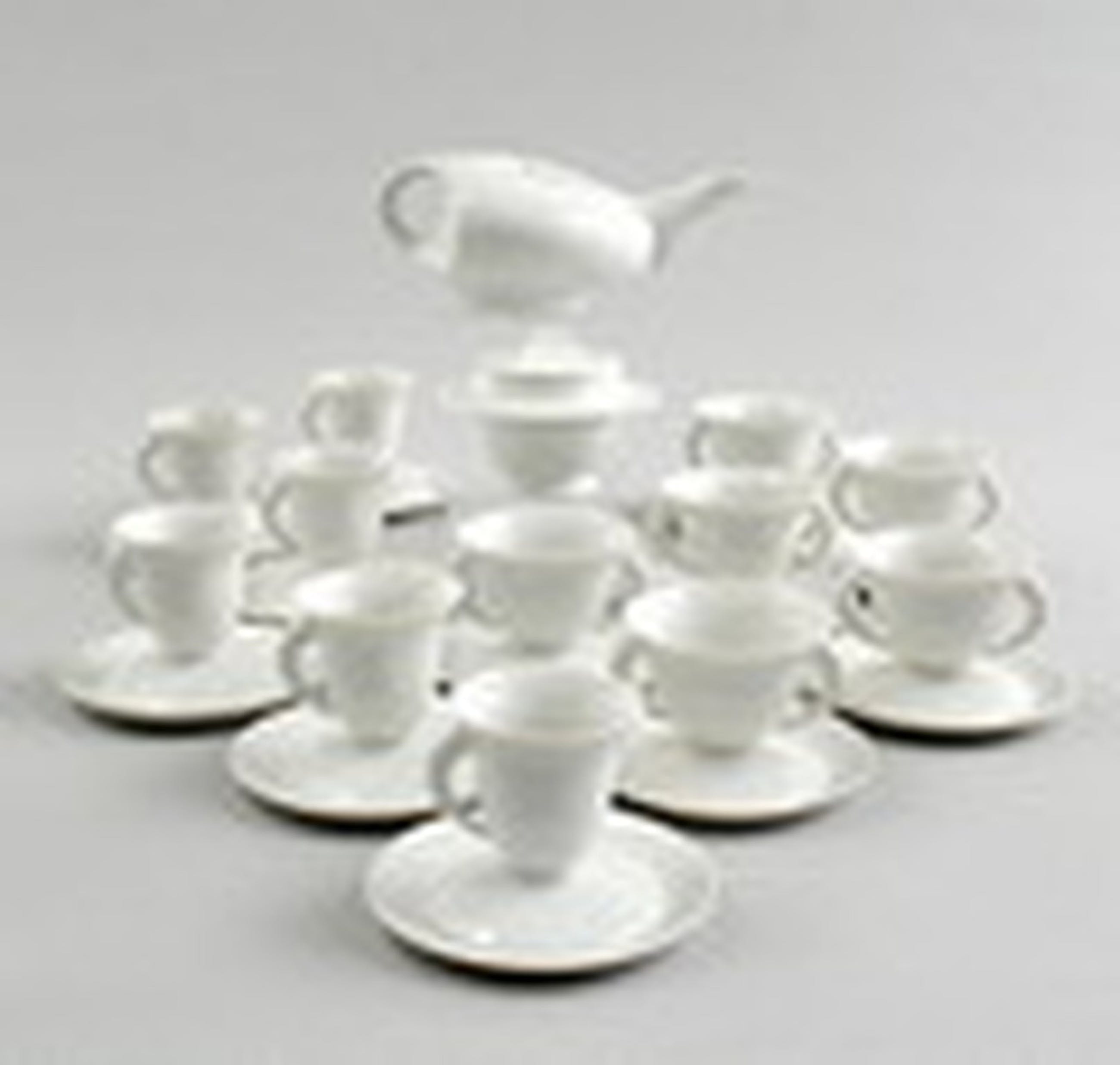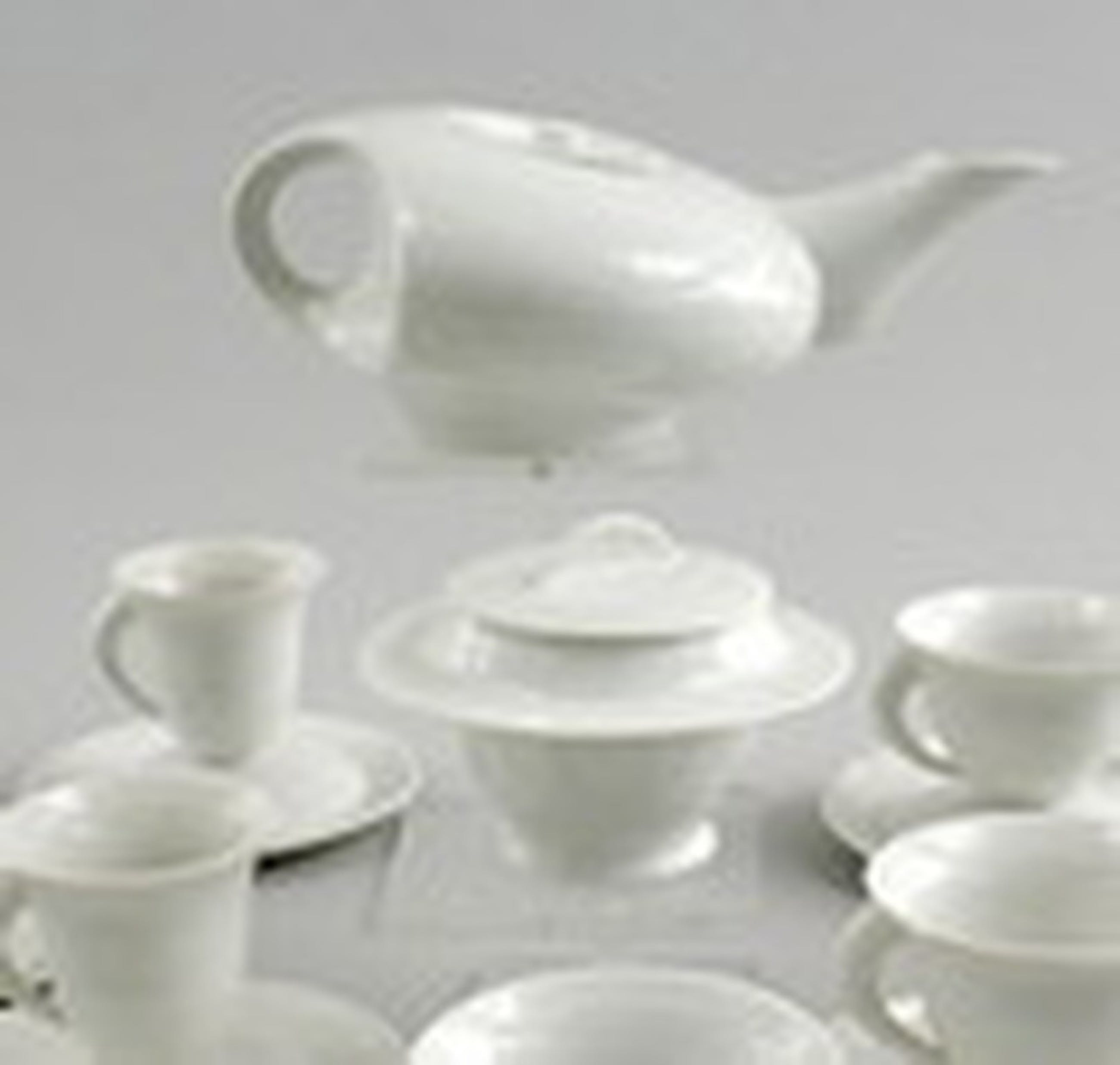 Porseleinen koffie- en theeservies bestaande uit een theepot met deksel, suikerpot met deksel, zes theekoppen, zes koffiekoppen en twaalf schoteltjes (26x), ontwerp Bořek Šípek ca.1996, uitgevoerd voor Driade / Italië.