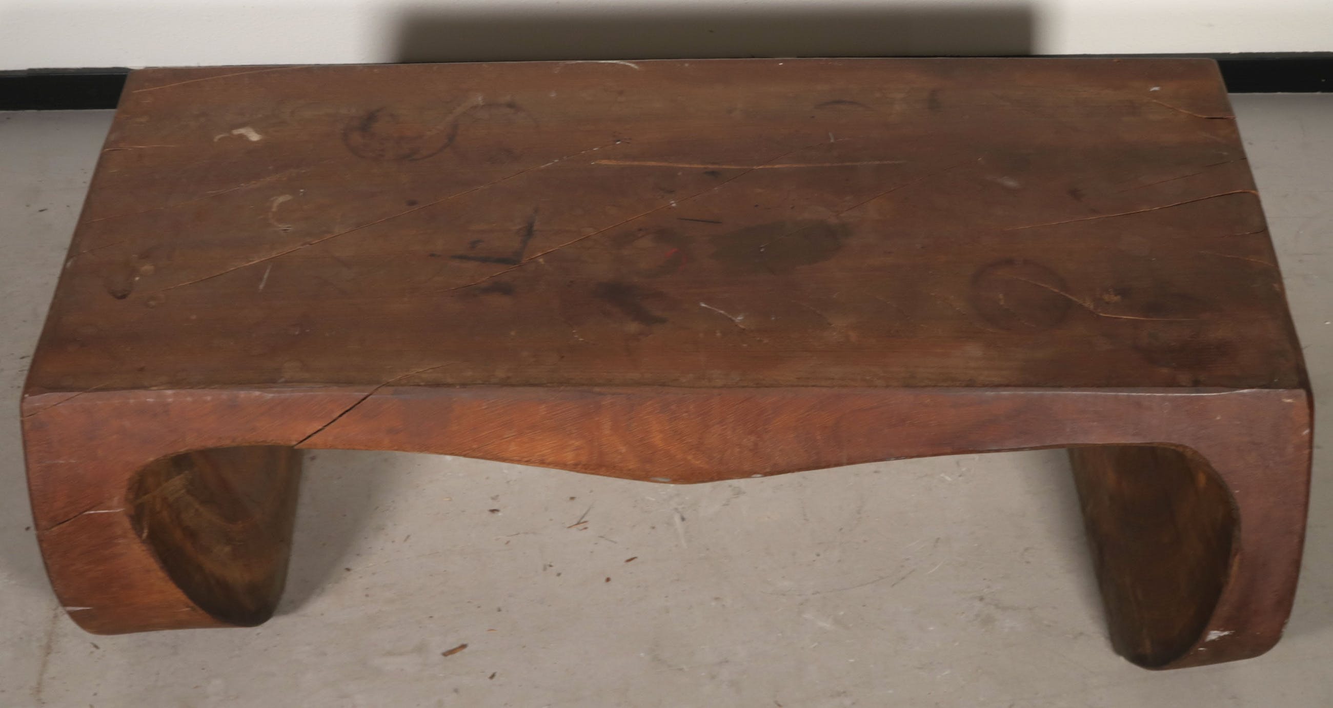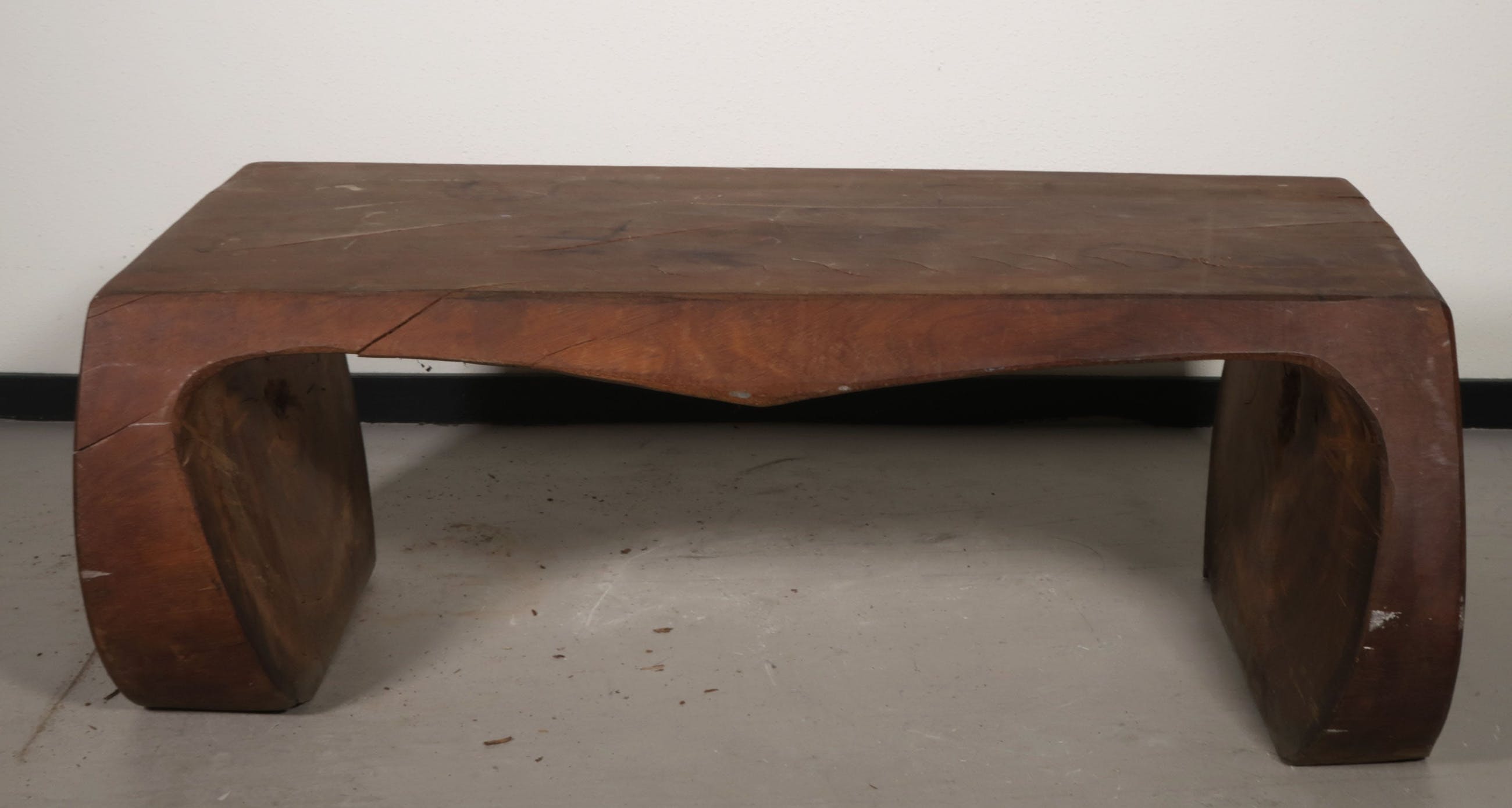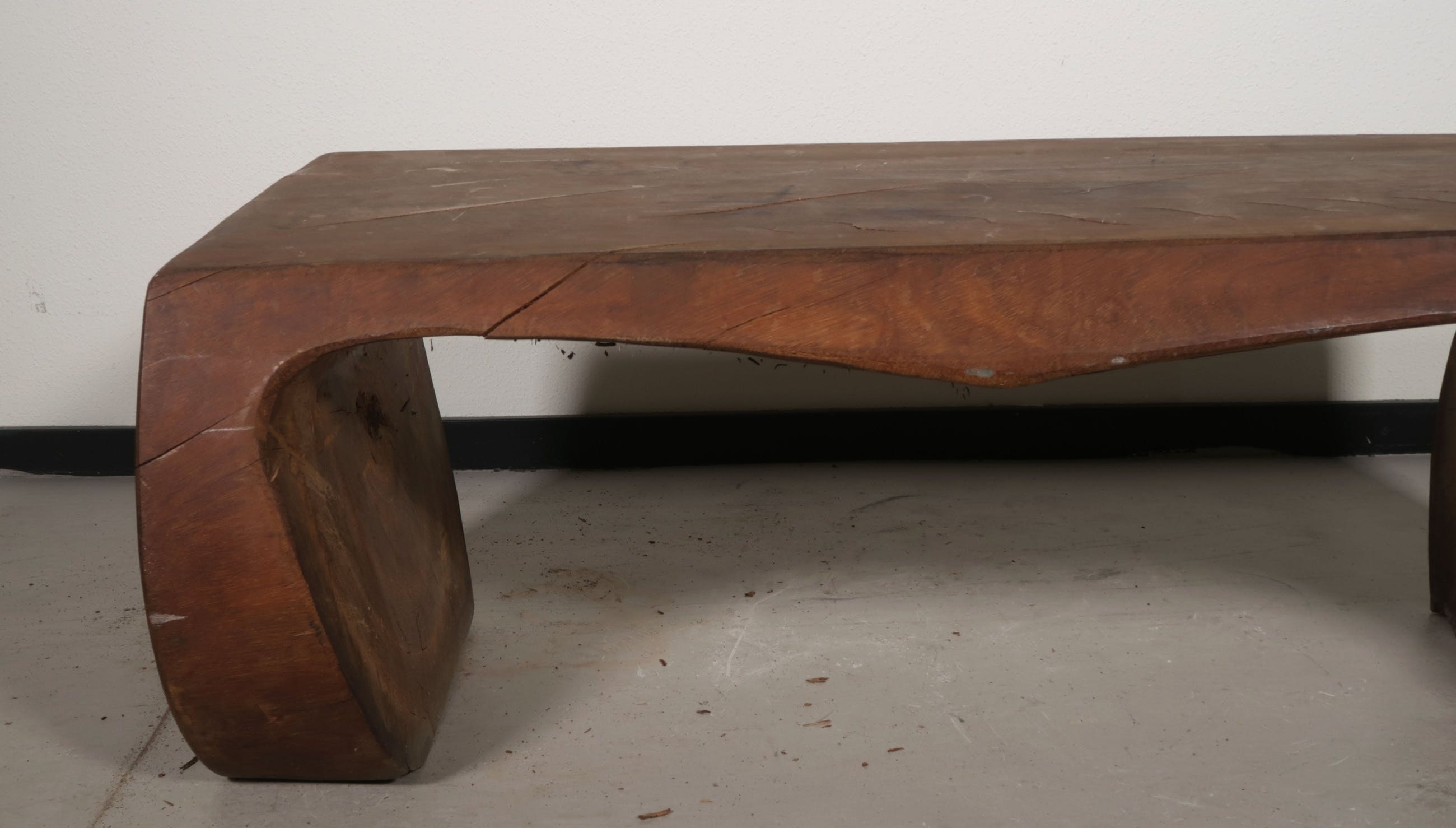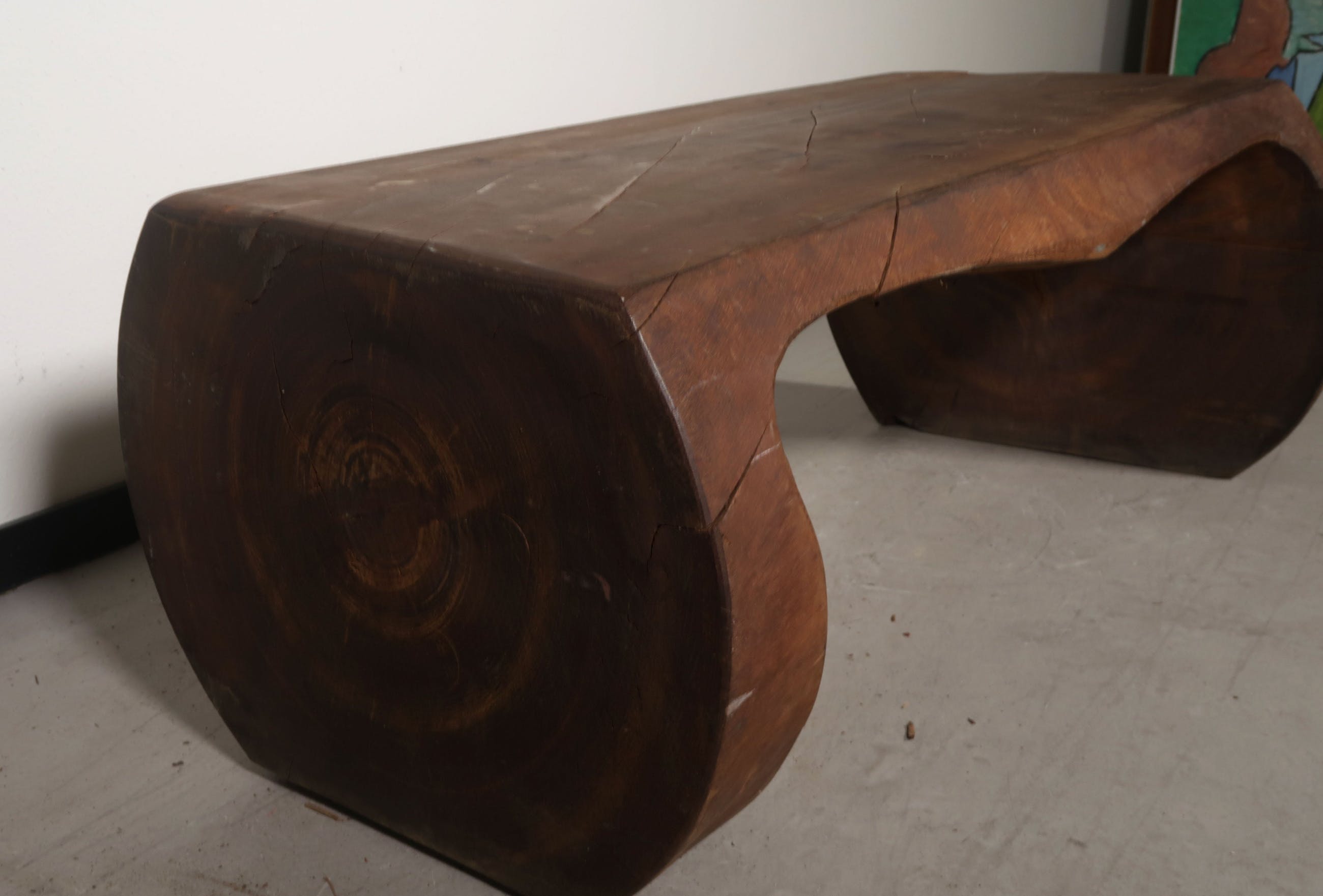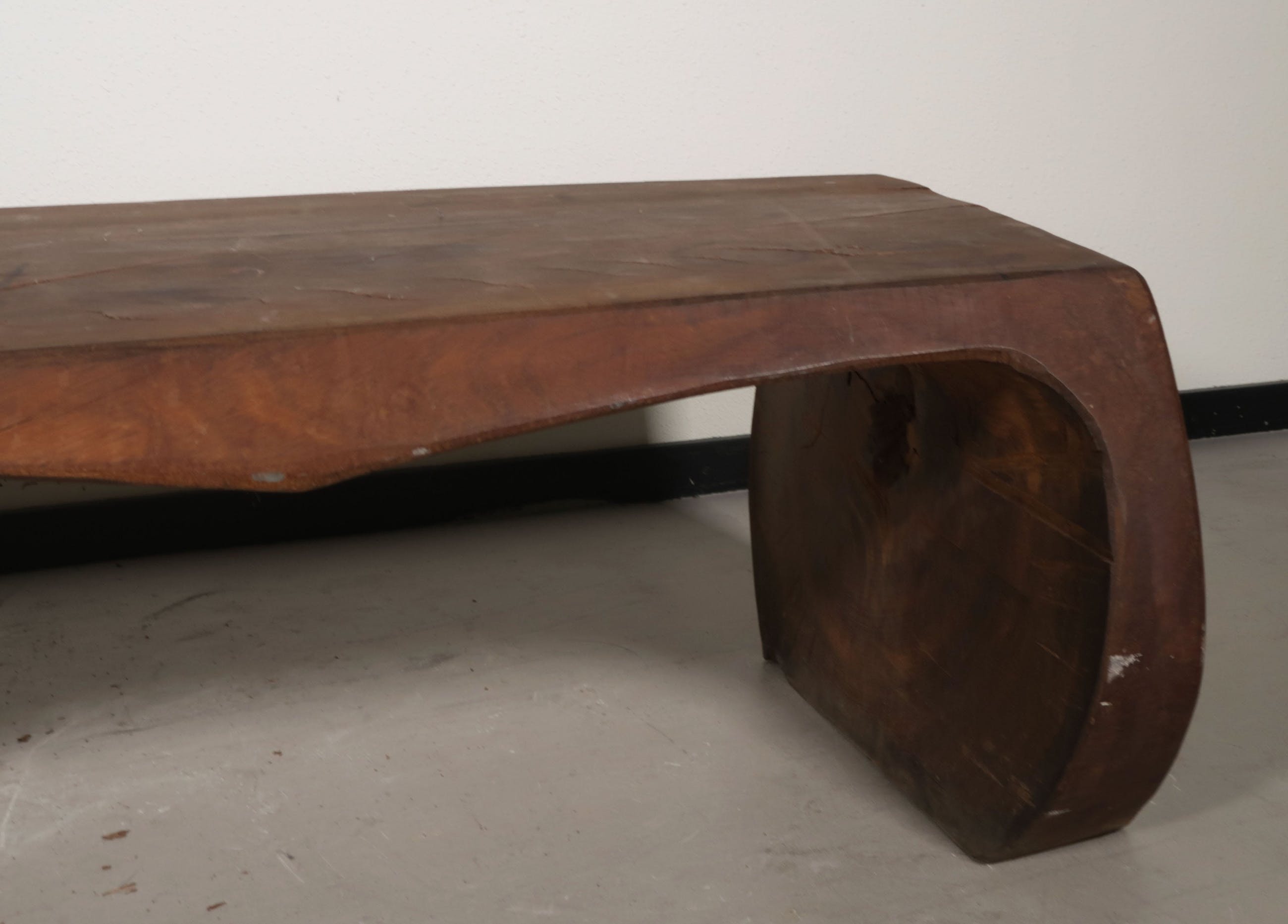 | Met wat scheuren in het hout en enkele kringen op het bankje. | |