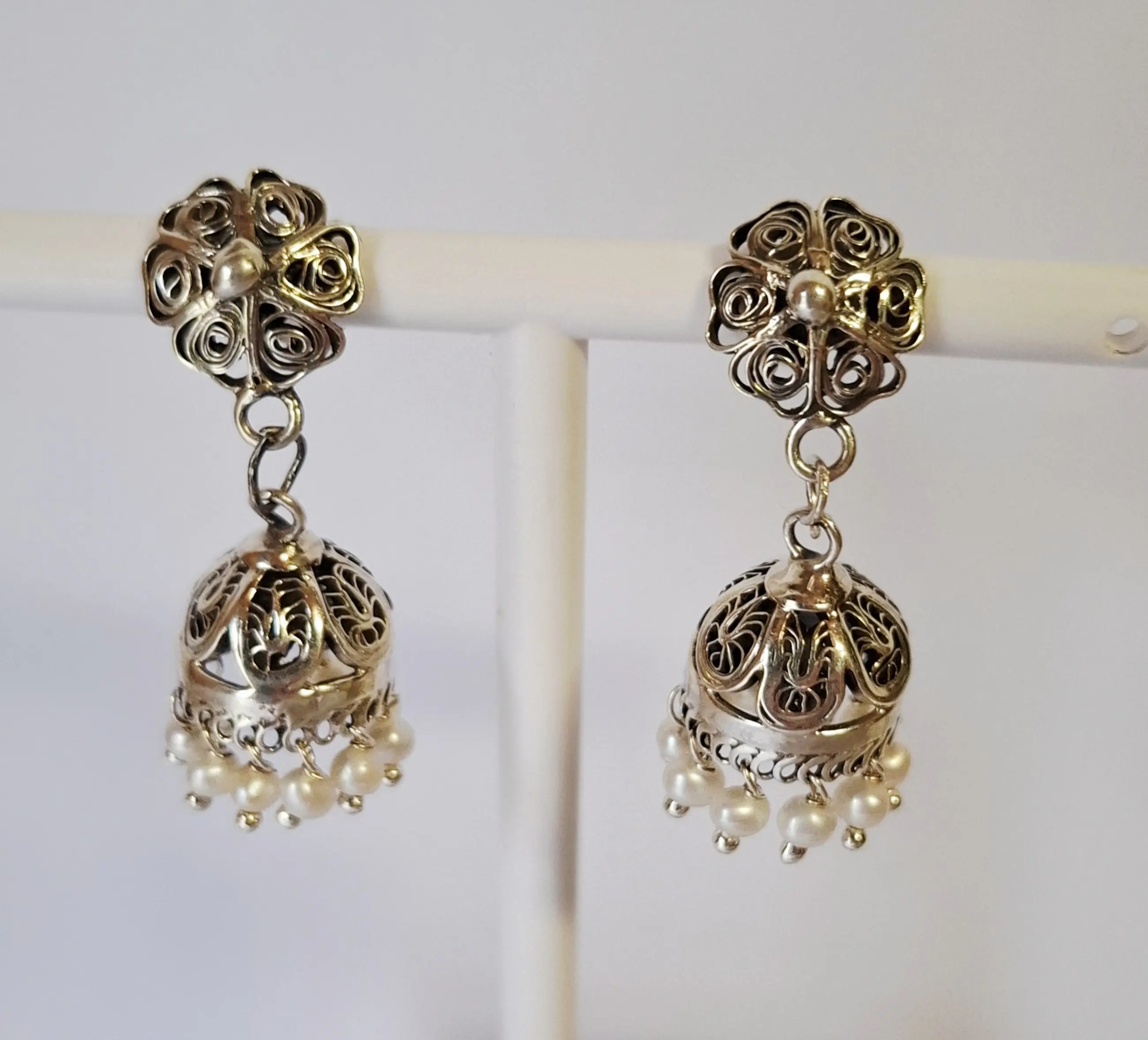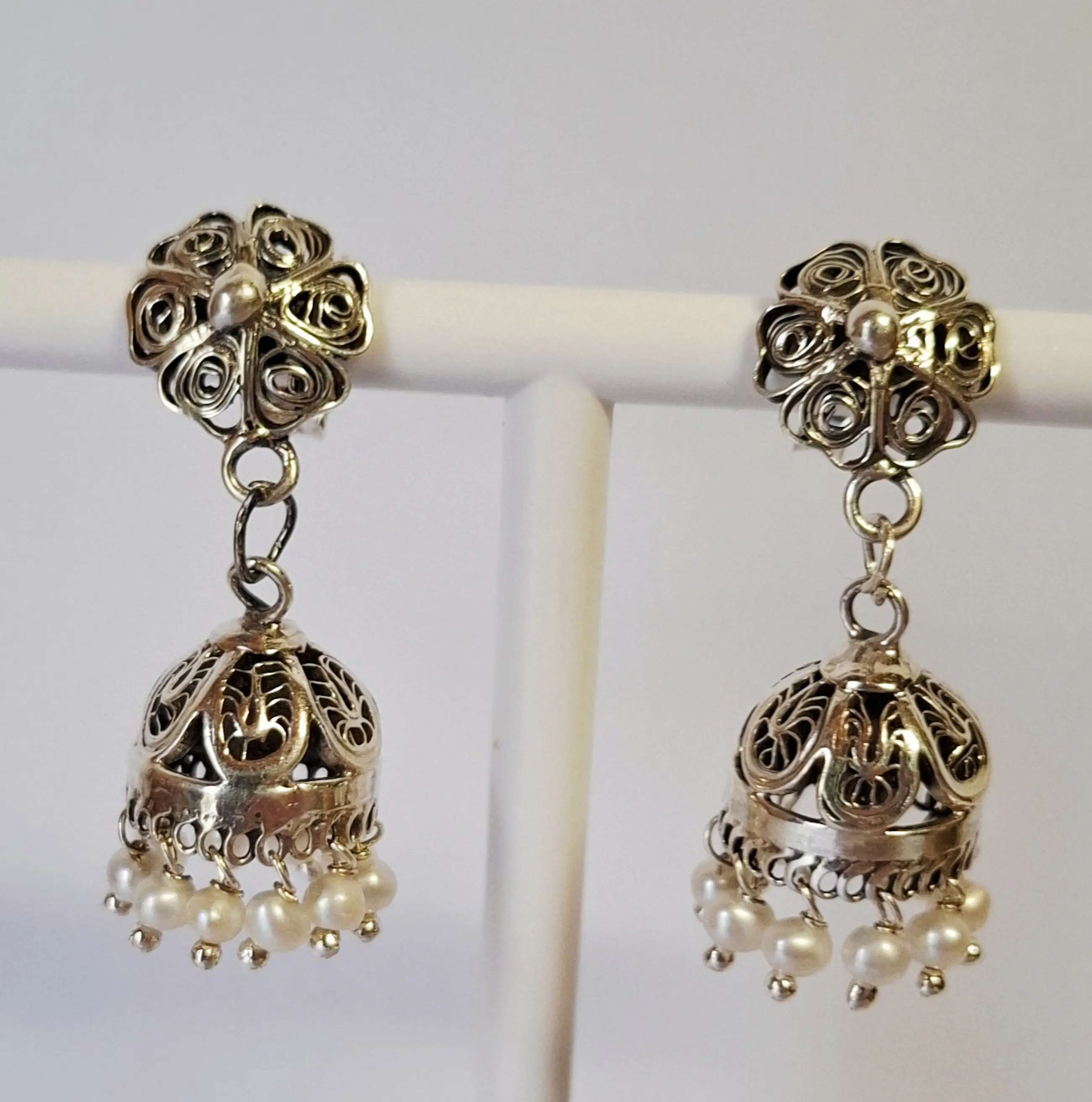 Zilveren oorbellen, zilveren Jhumka oorbellen, klokken drop oorbellen, tribale sieraden India, Boho oorbellen, antieke zilveren oorbellen SignoraArt. Circa 1980