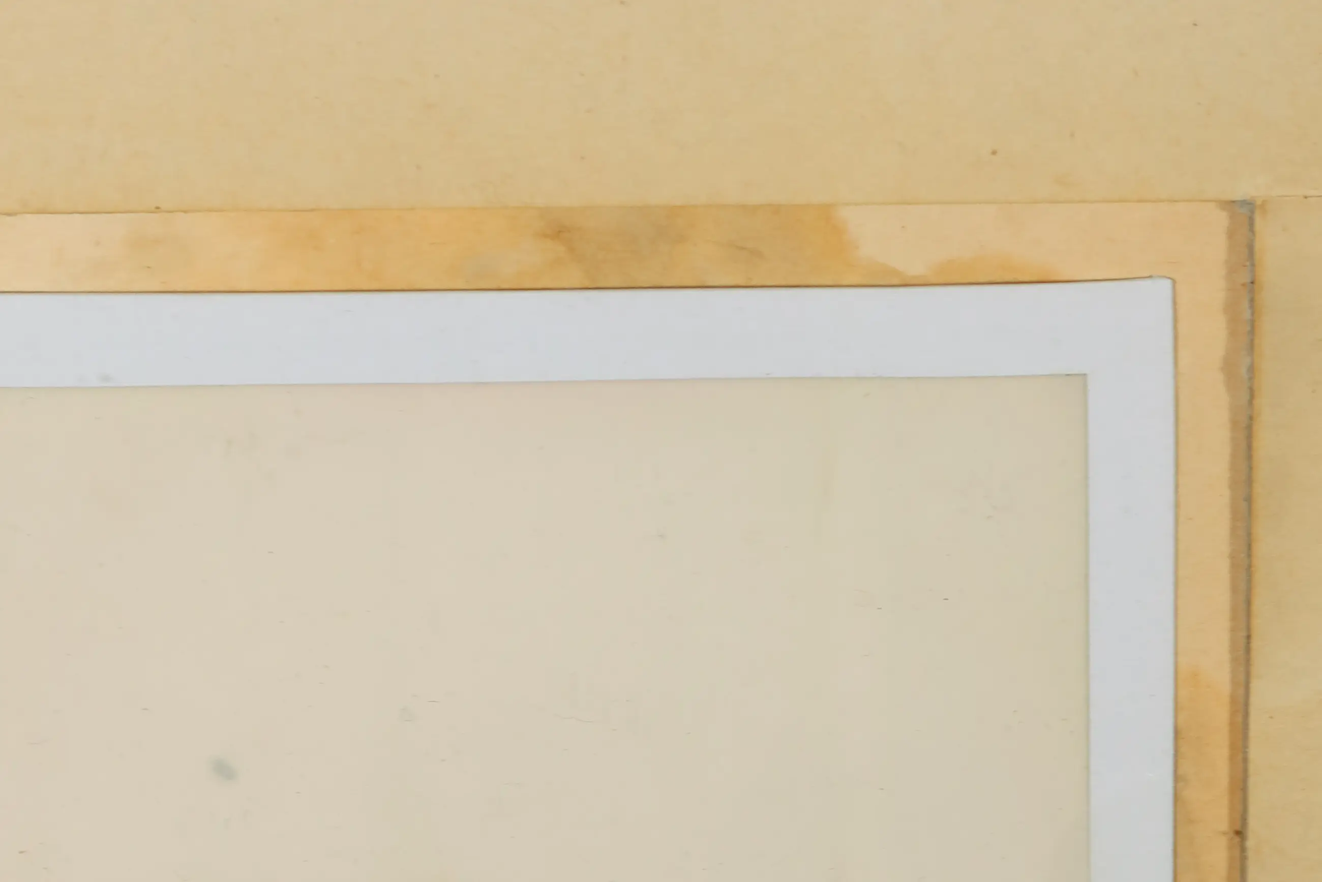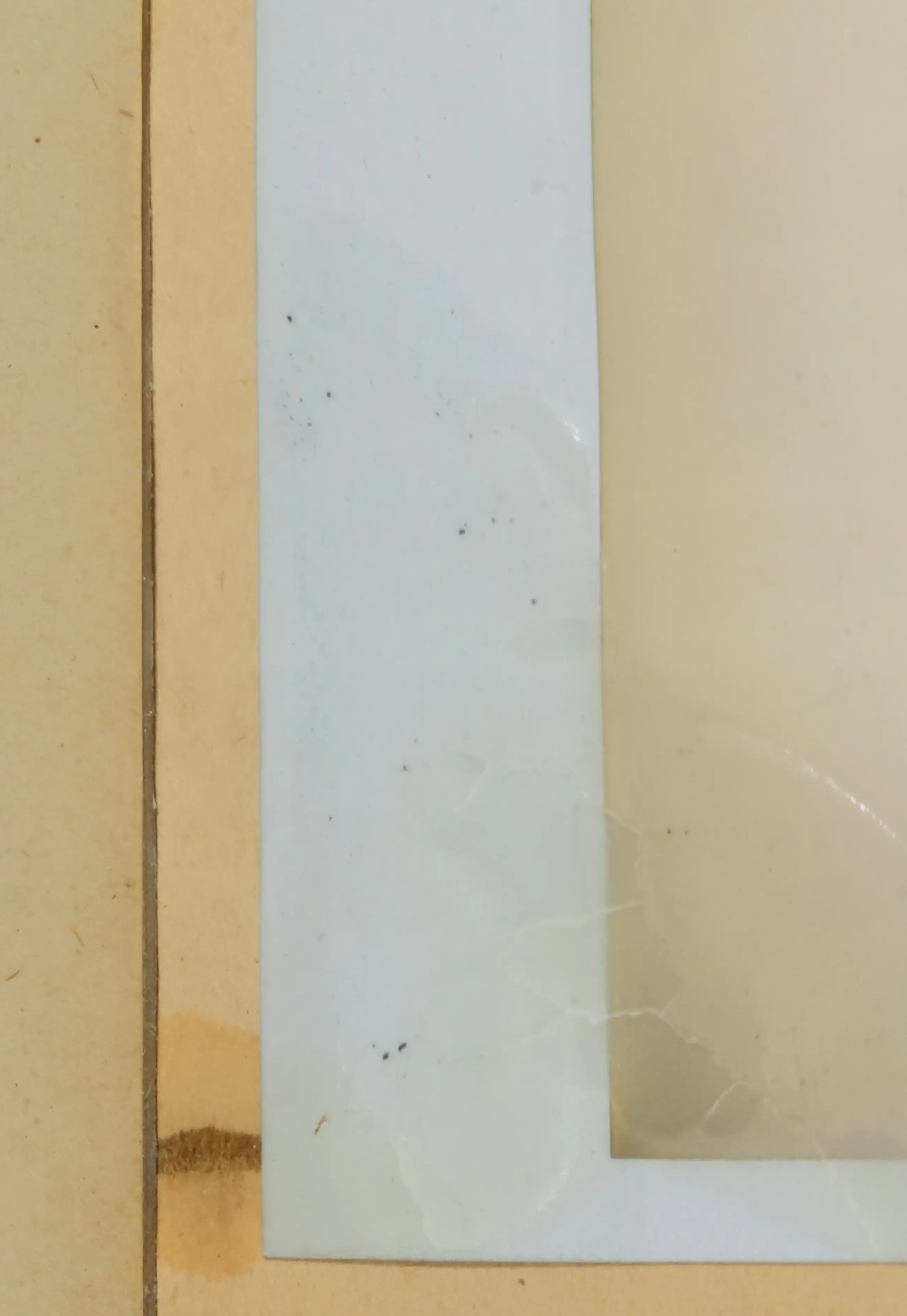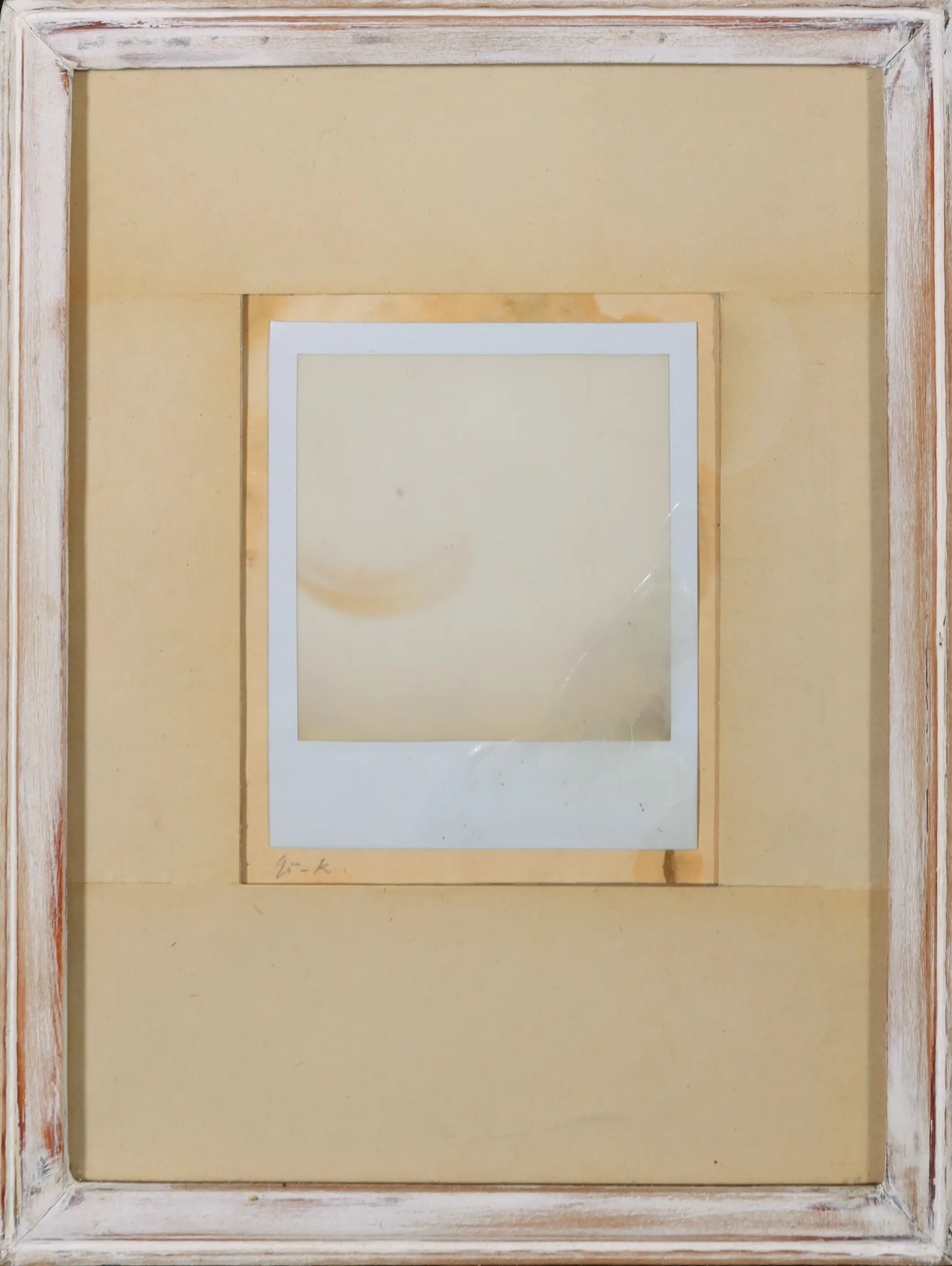 | Het papier is wat vergeeld, daarnaast lijkt het bovenste laagje van de polaroid foto beschadigd, onduidelijk of dit de intentie van de kunstenaar is geweest. | |||||||||||