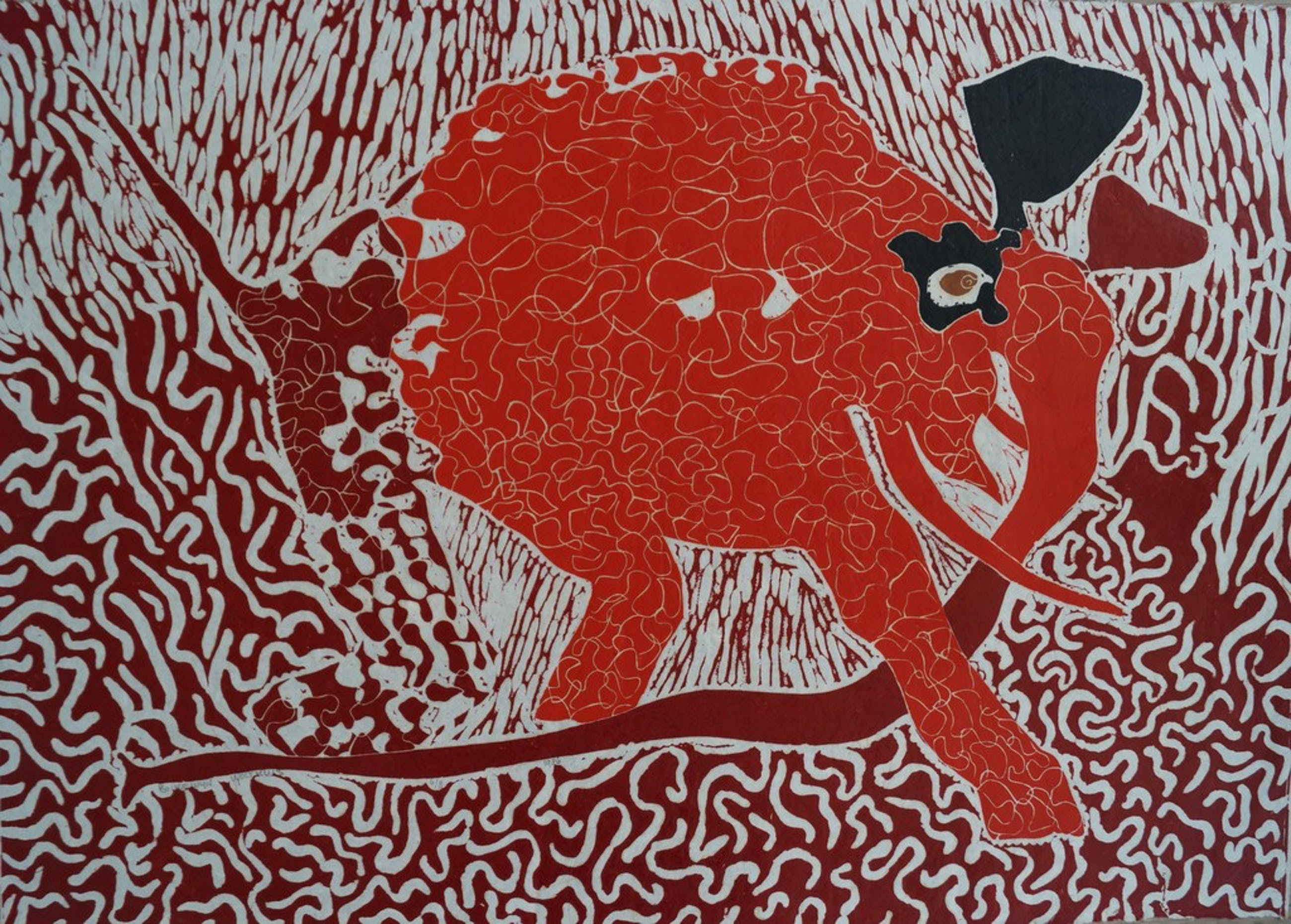 Mooie linosnede op rijstpapier van Boudewijn Wolthuis