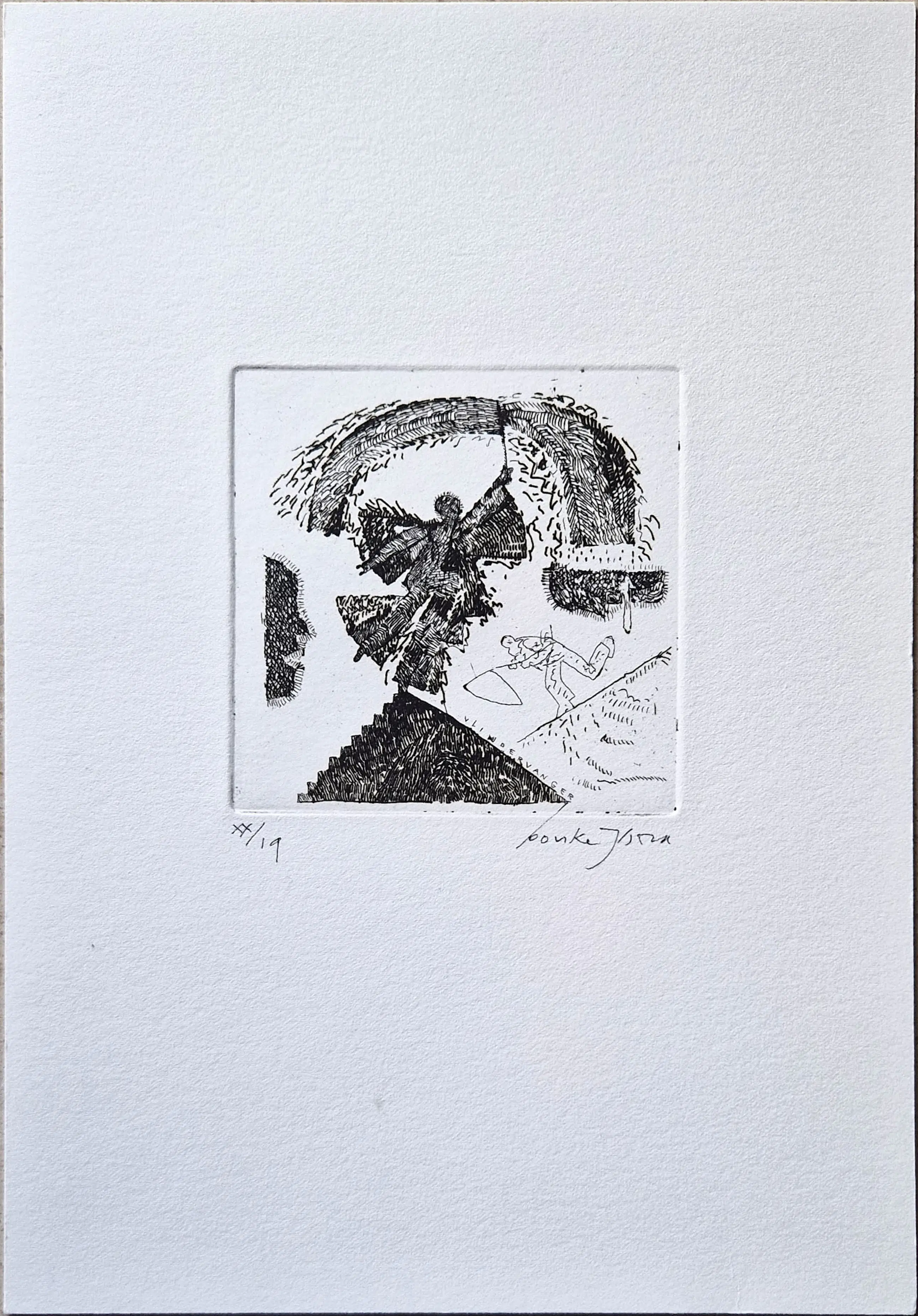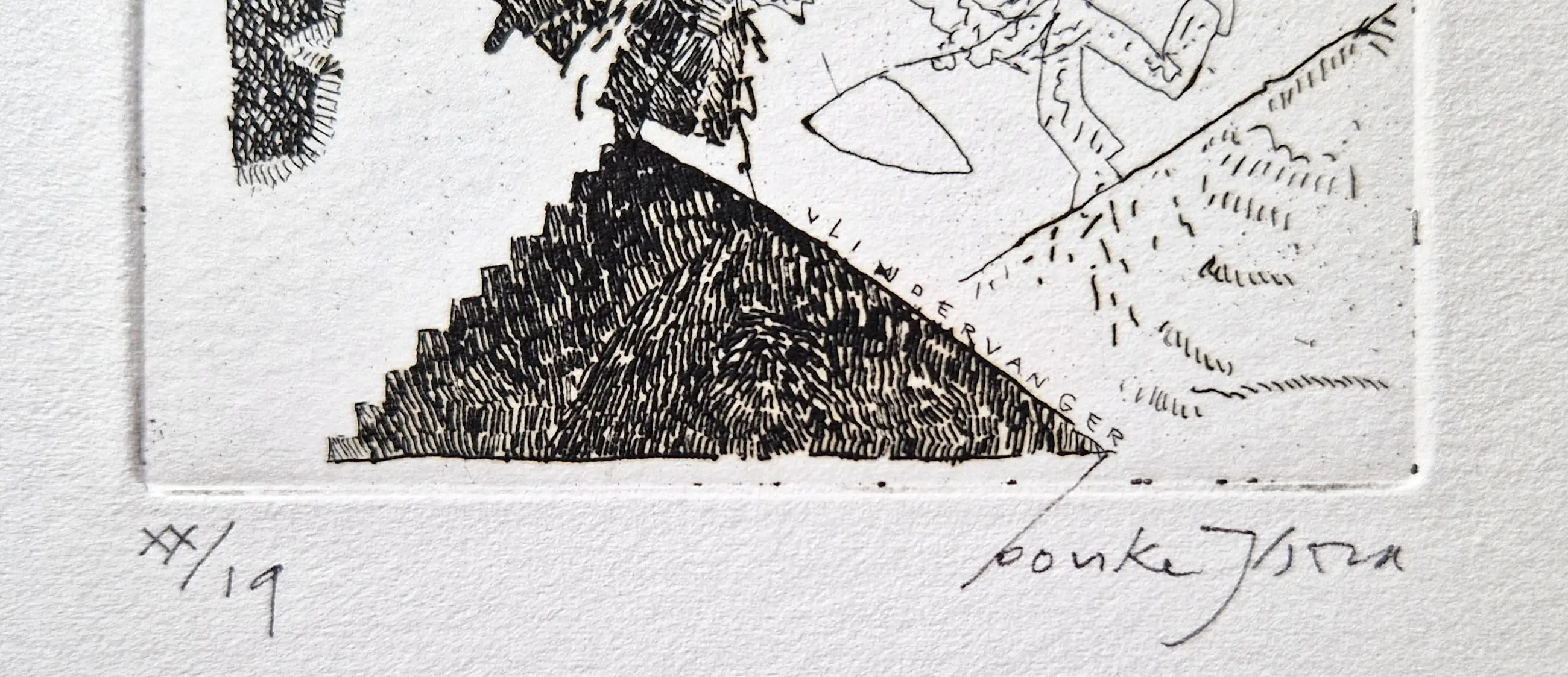 Ets van Bouke Ylstra uit 1992. Het werk is rechtsonder met de hand gesigneerd door de kunstenaar.
