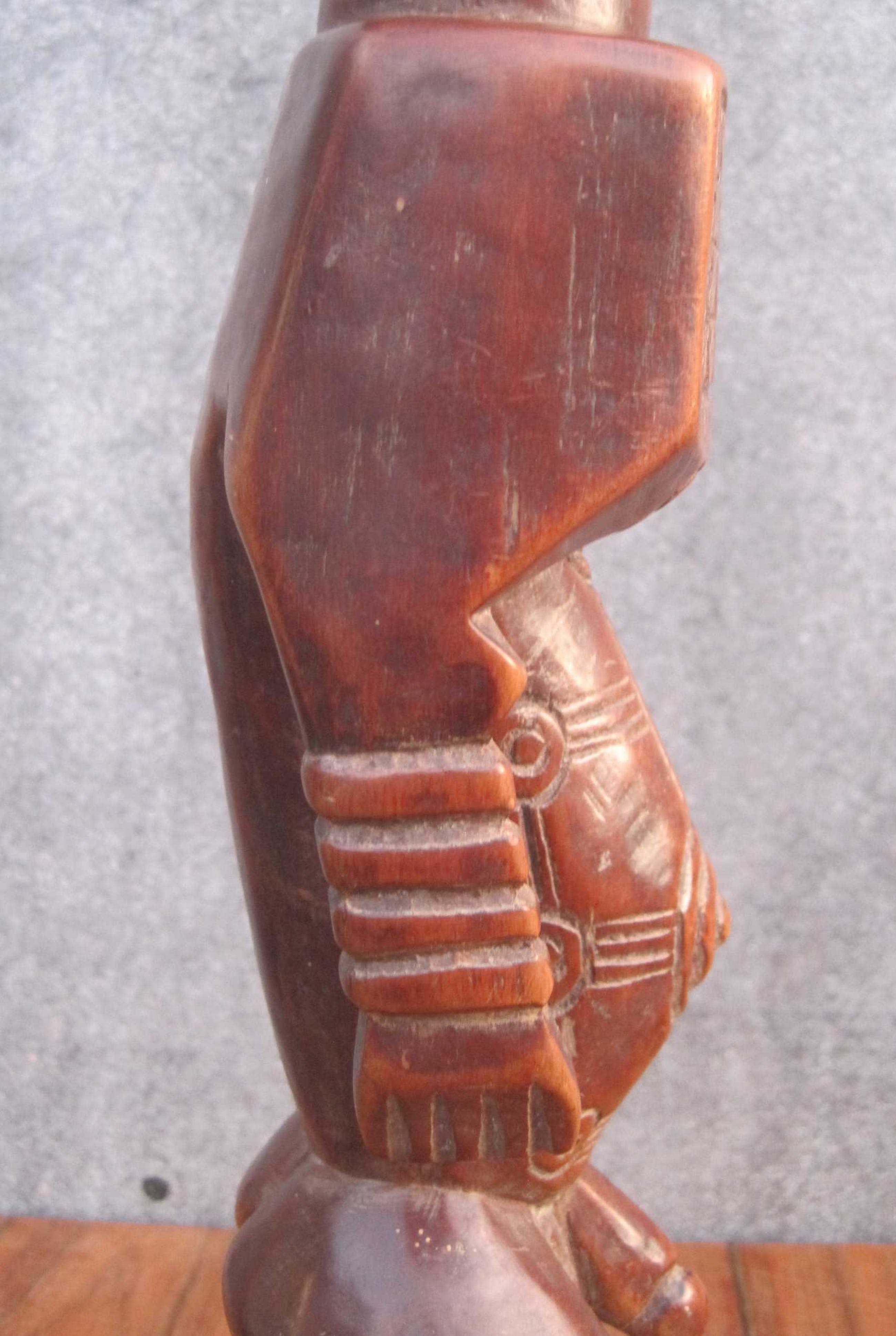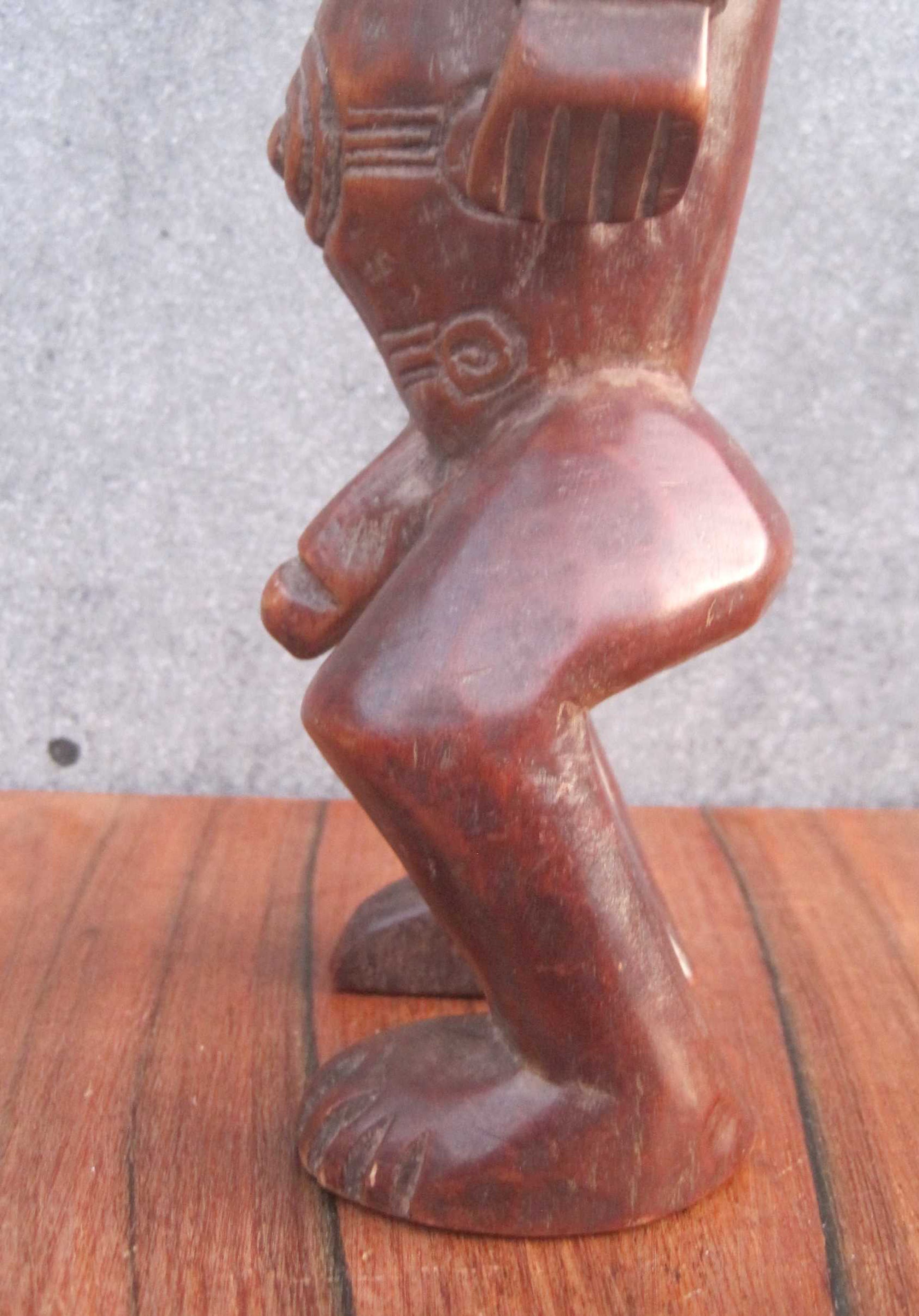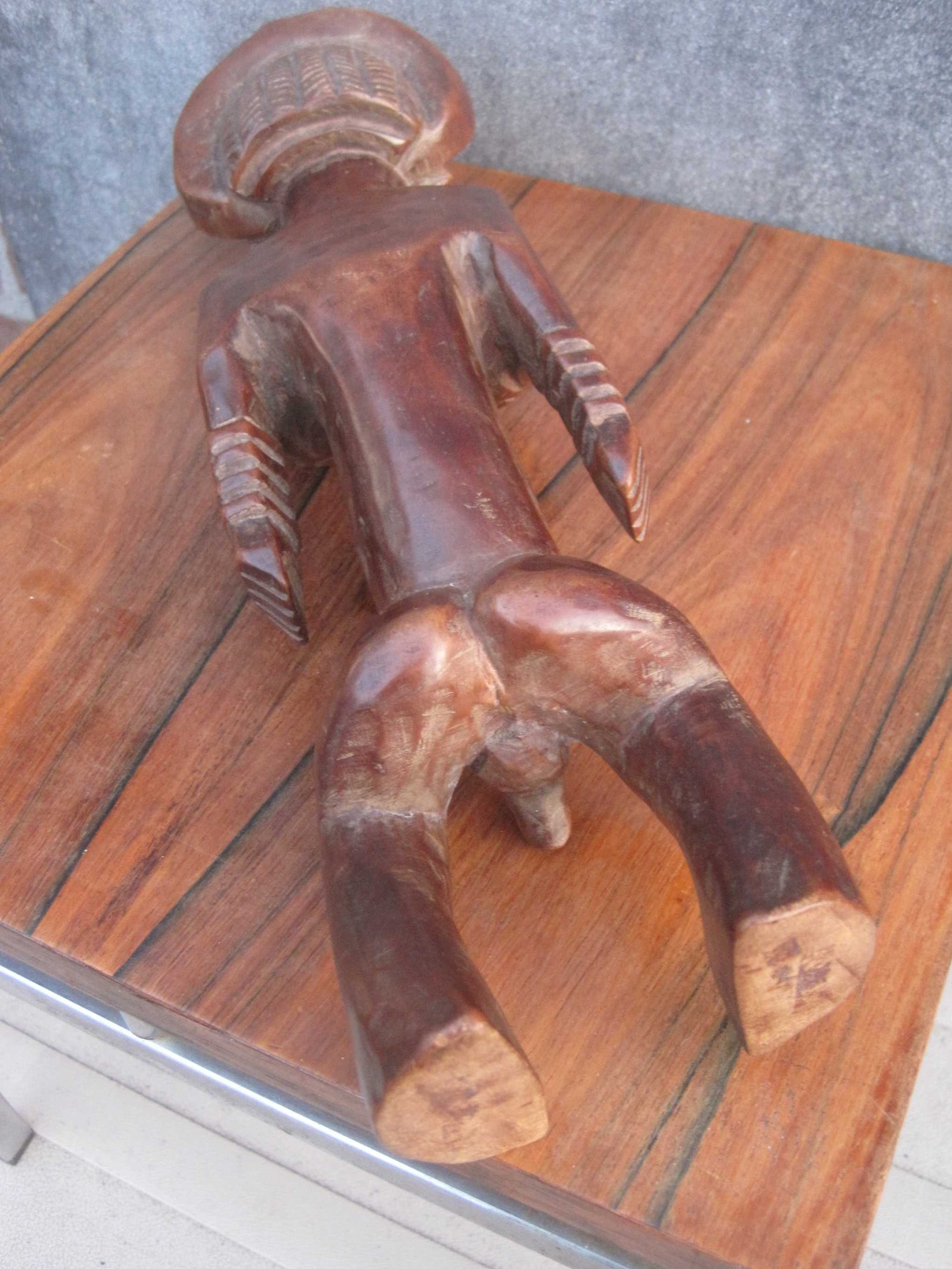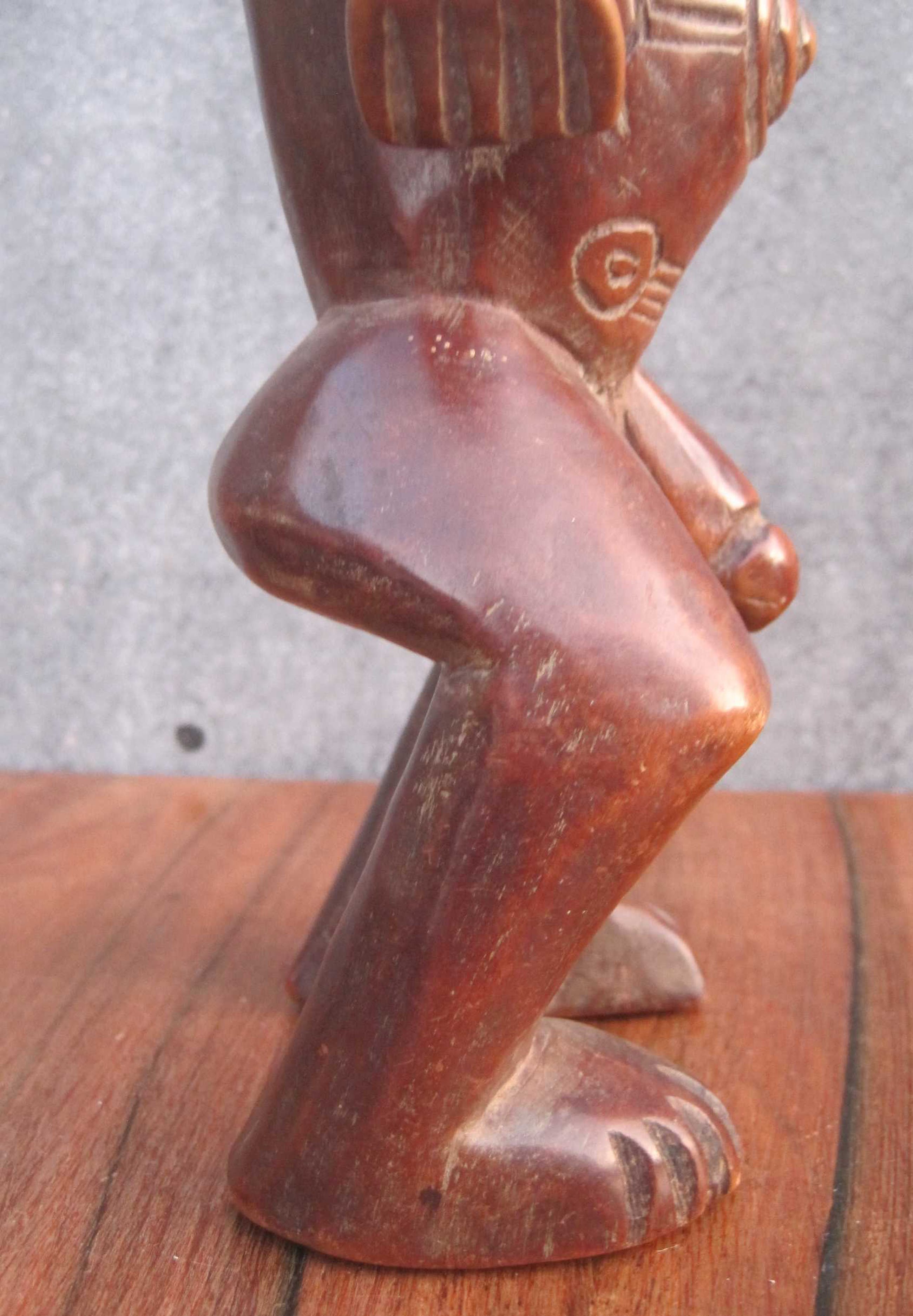 Dit mooie 36 cm lange beeld vertegenwoordigd een voorouderfiguur van het Boyo volk, dat leeft in het oostelijk deel van Kongo langs de oevers van het Tangayika meer.