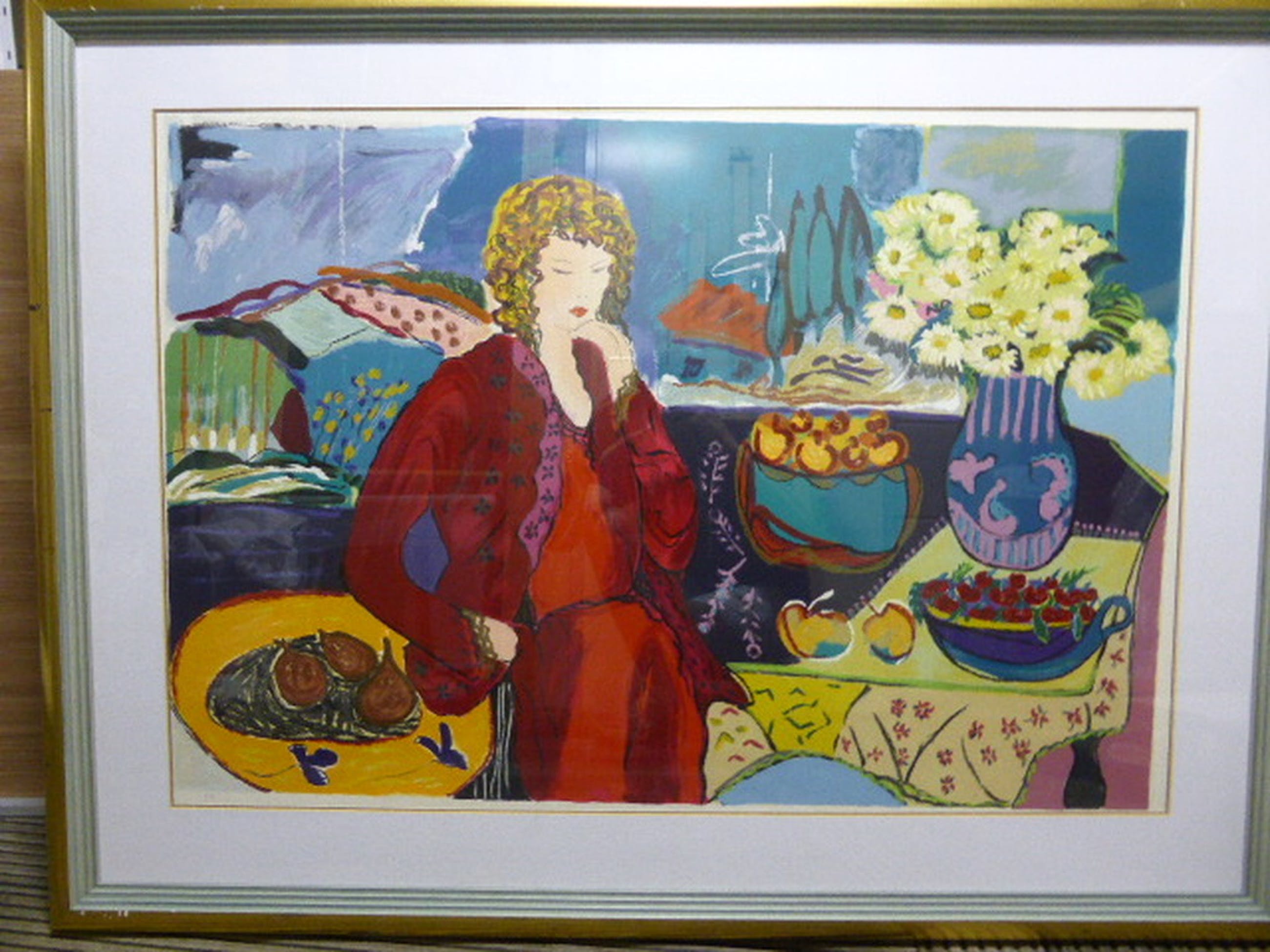 Heel grote, mooi ingelijst werk van deze kunstenares.