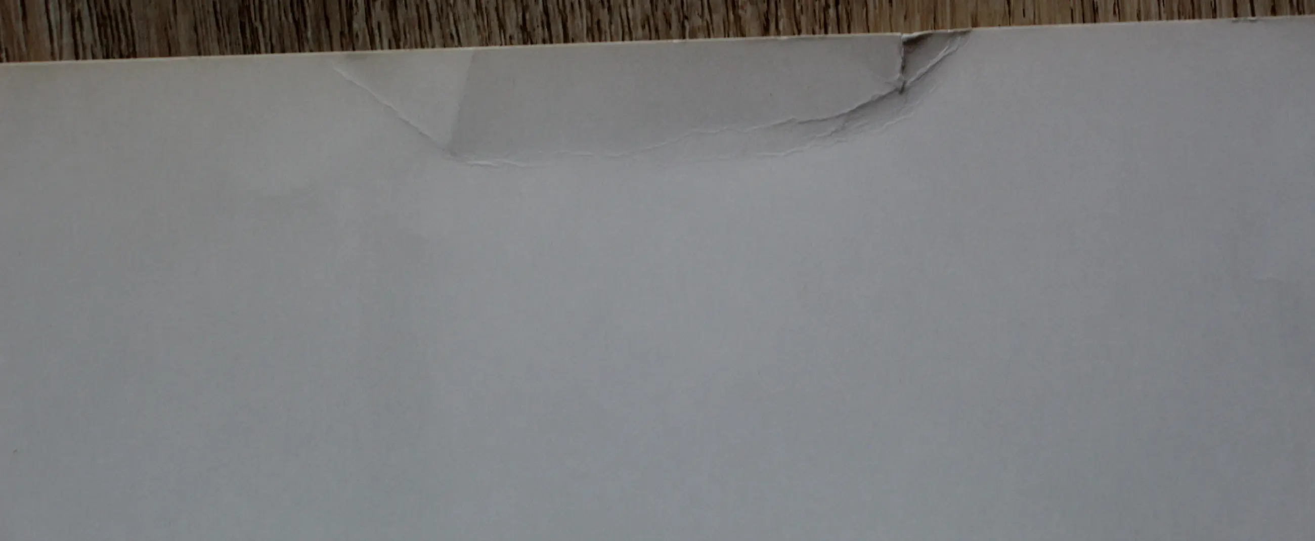 | Op het blad zitten wat kreukels. Midden bovenaan zit, op het witte gedeelte, een scheurtje. | |||||||||||