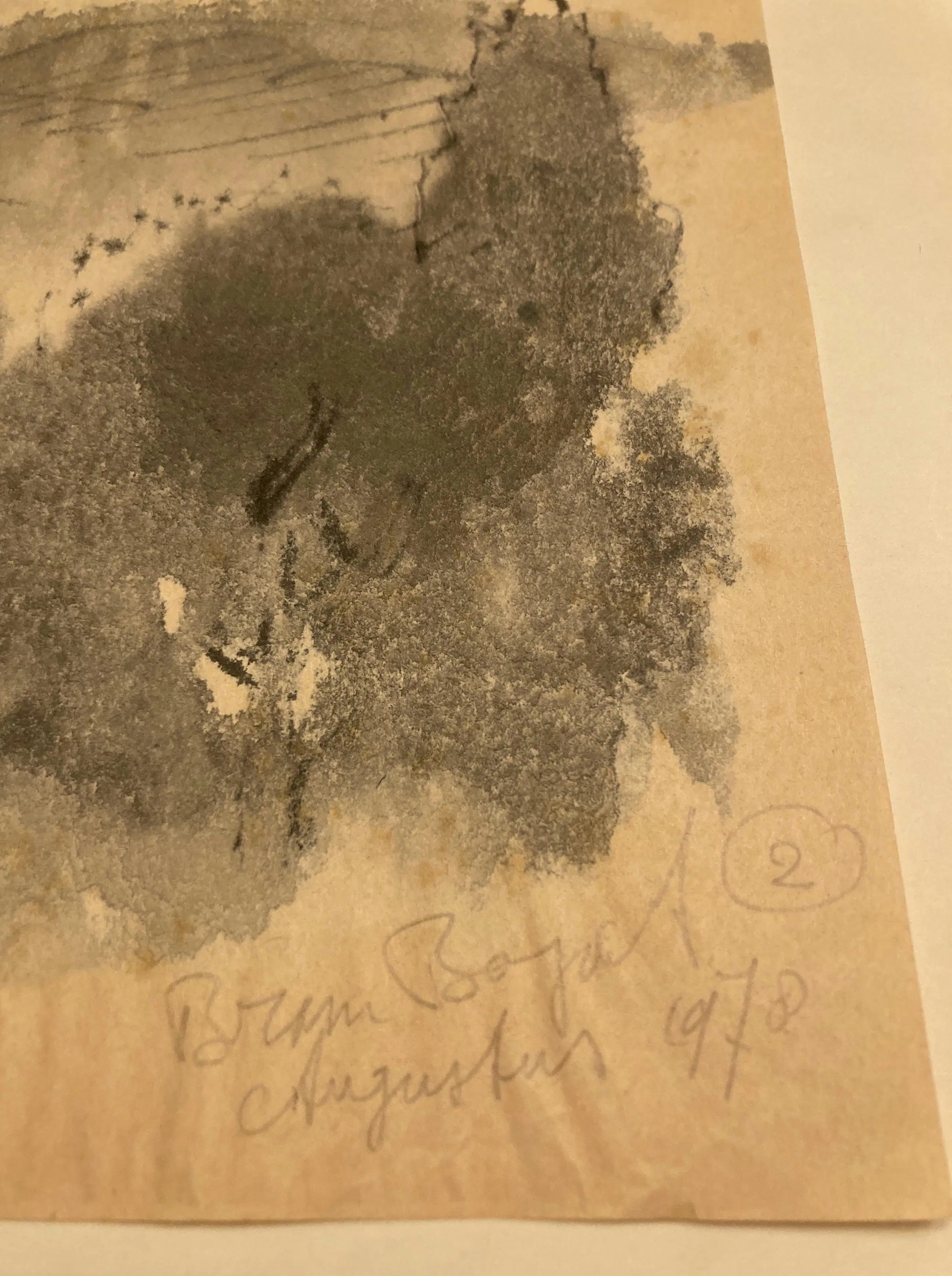 Originele tekening van Bram Bogart. Jaar van ontwerp augustus 1978. Handgesigneerd langs beide kanten. Voorkant in pen en achterzijde in potlood.