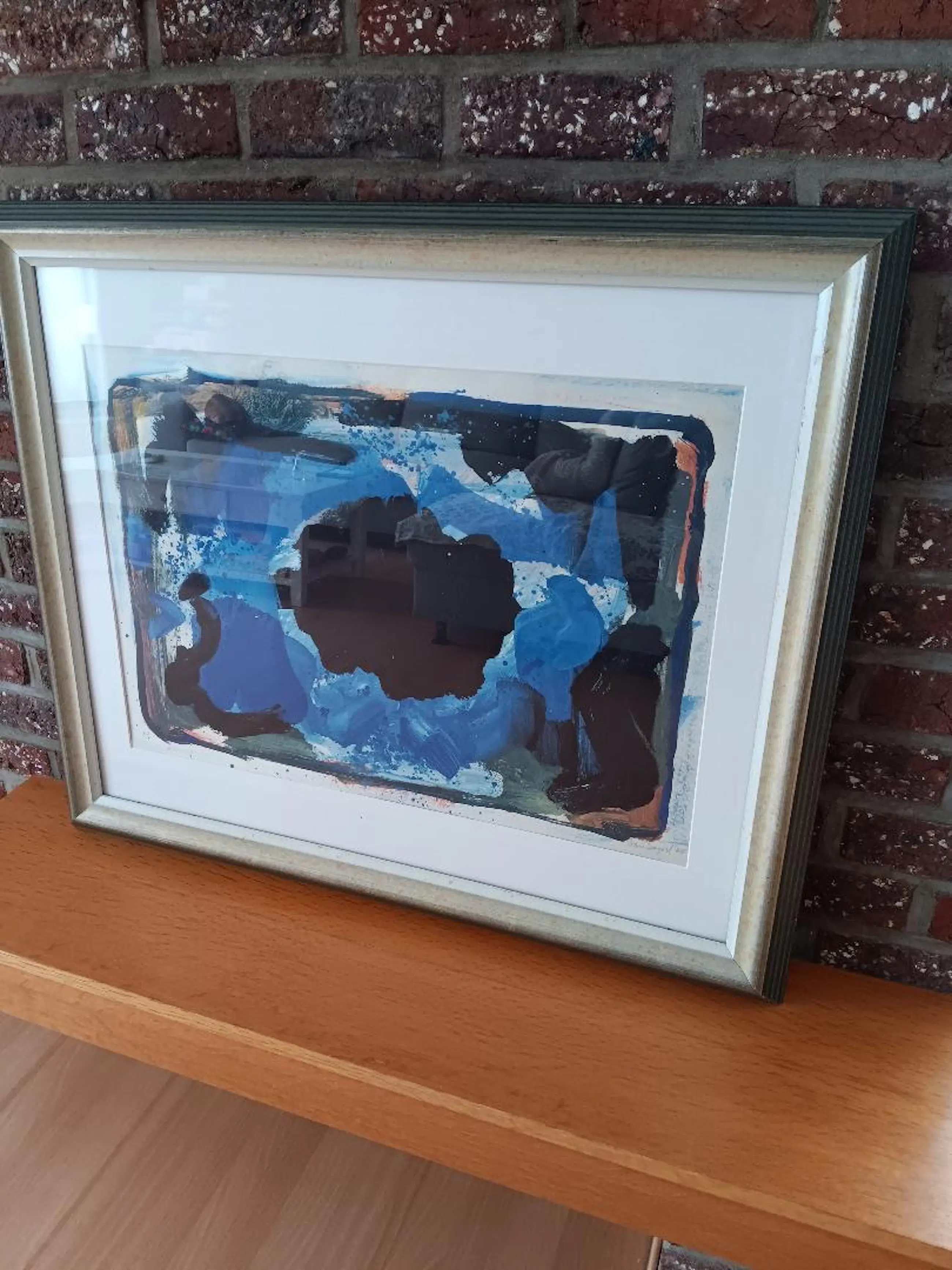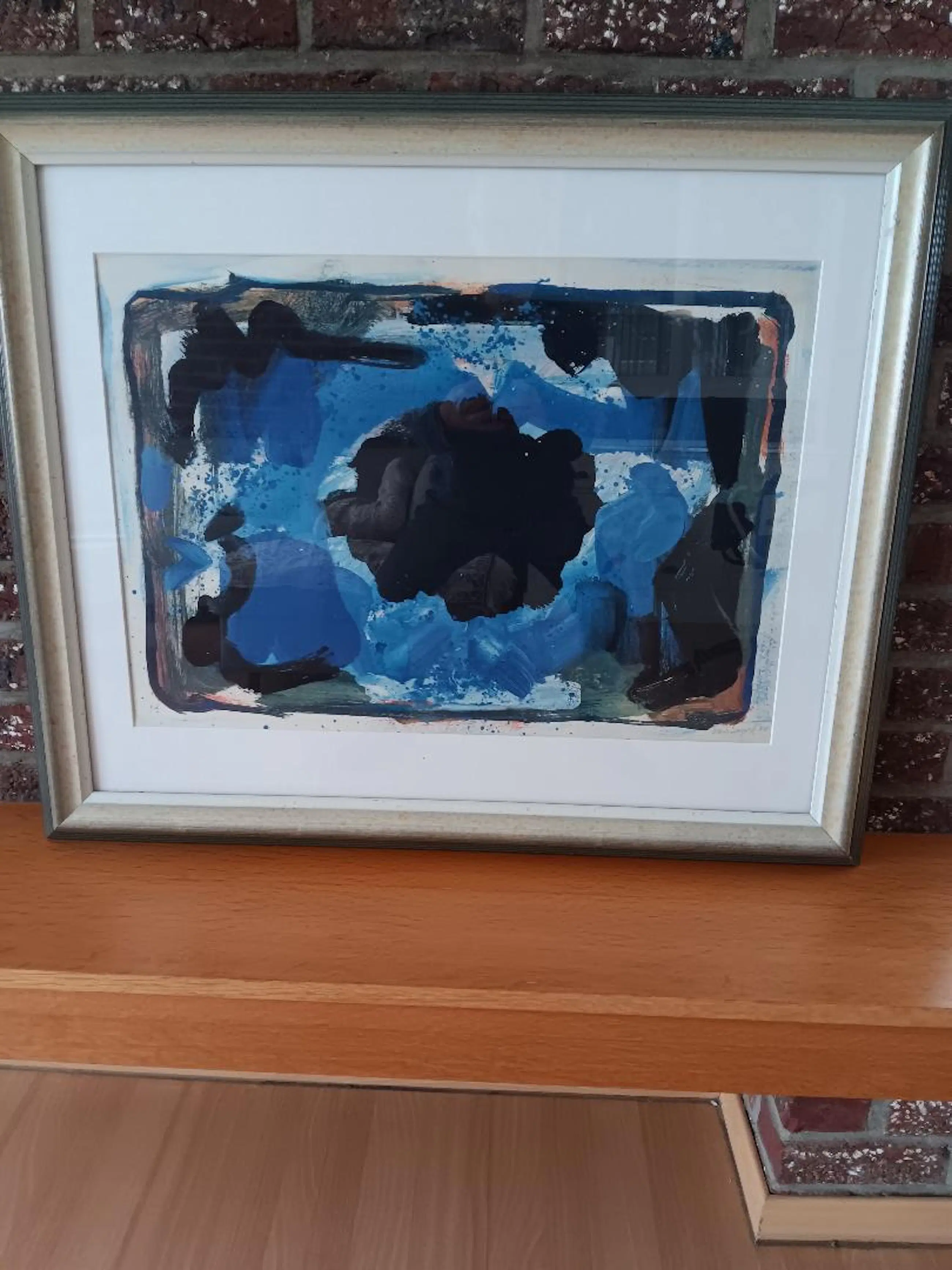 Het werk is professioneel gekaderd in een brede metaal-grijze en niet alledaagse lijst die het werk mooi tot zijn recht doet komen.