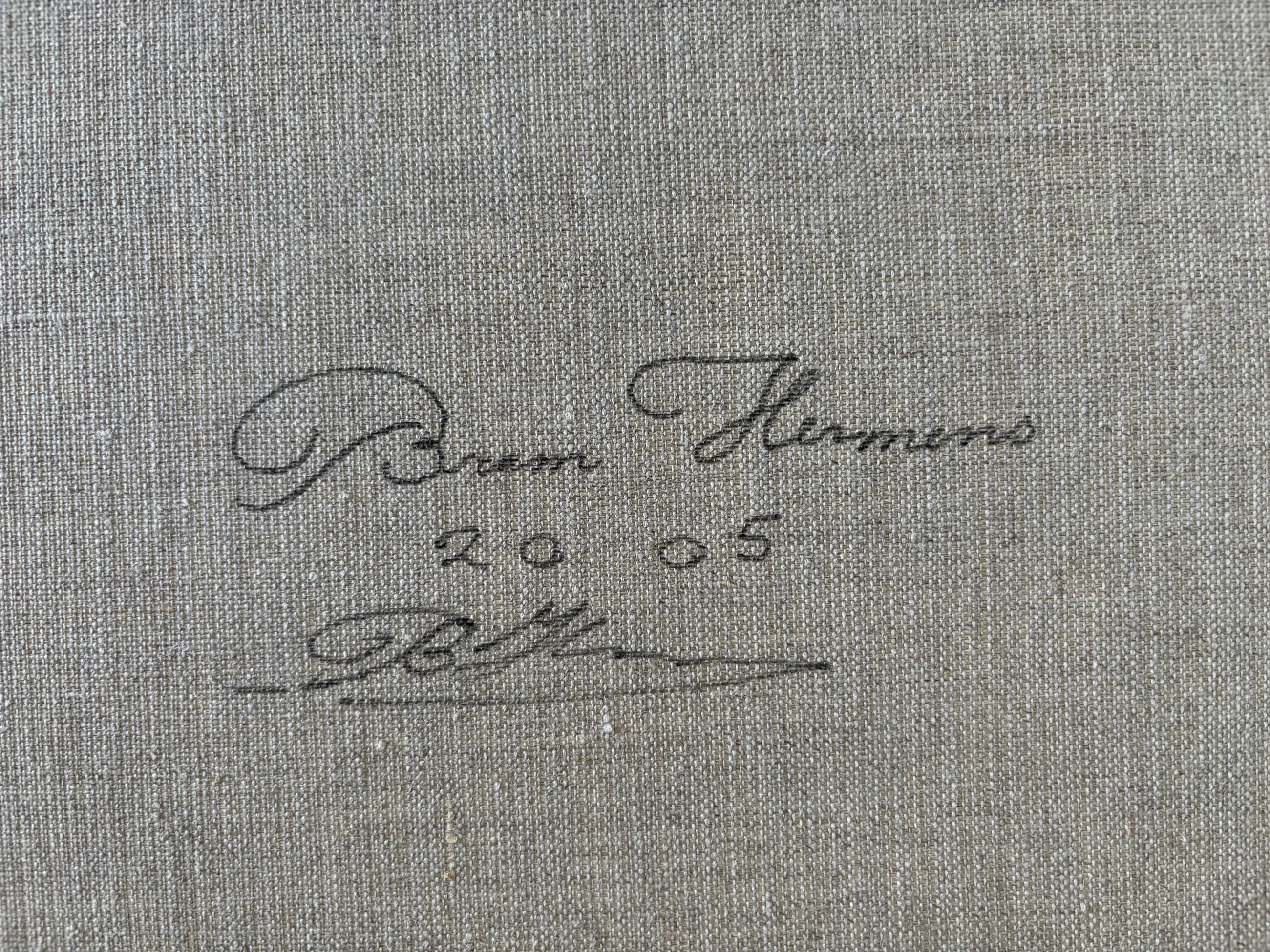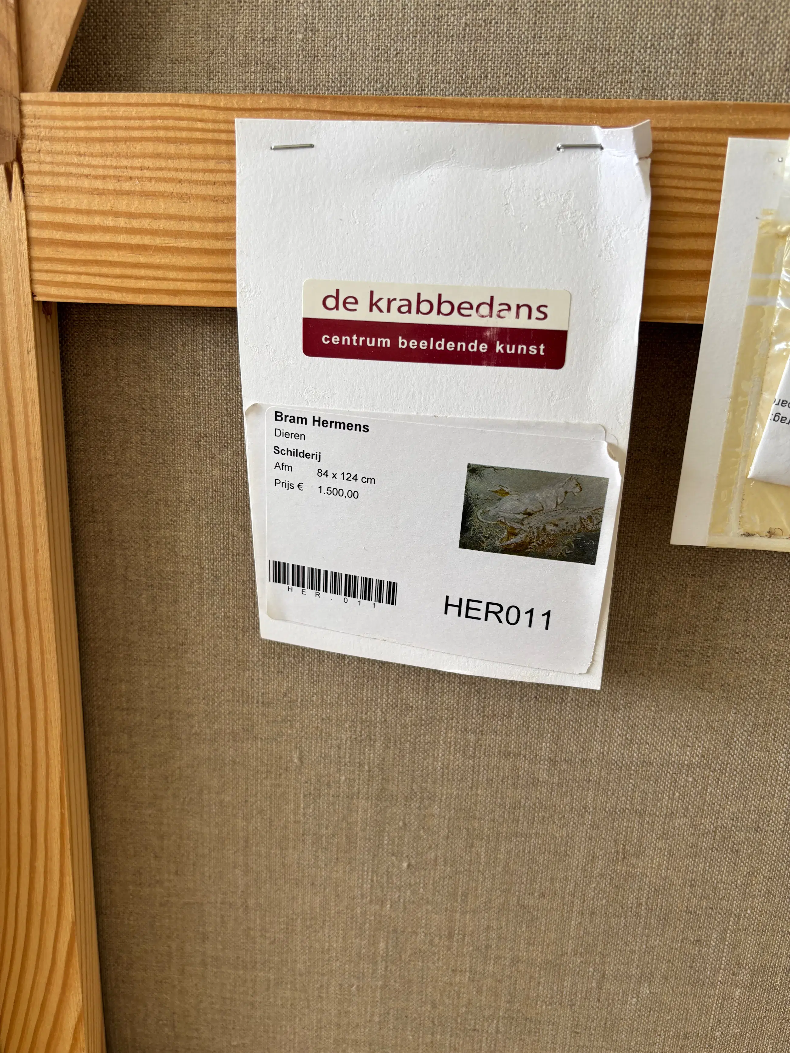 Dit werk komt uit de nalatenschap van mijn schoonmoeder. Ik verkoop dit werk namens mijn partner en haar zuster. Het werk komt oorsponkelijk uit de collectie van Kunstuitleen "De Krabbedans" te Eindhoven (gesloten sinds 2013). Mijn schoonmoeder was daar enige tijd werkzaam en heeft bij haar afscheid dit werk meegekregen. De oorspronkelijke baliemutatie van 2012 (d.w.z. "de rekening") is in ons bezit. Achterop de lijst bevindt zich nog het oorspronkelijke etiket van de kunstuitleen.