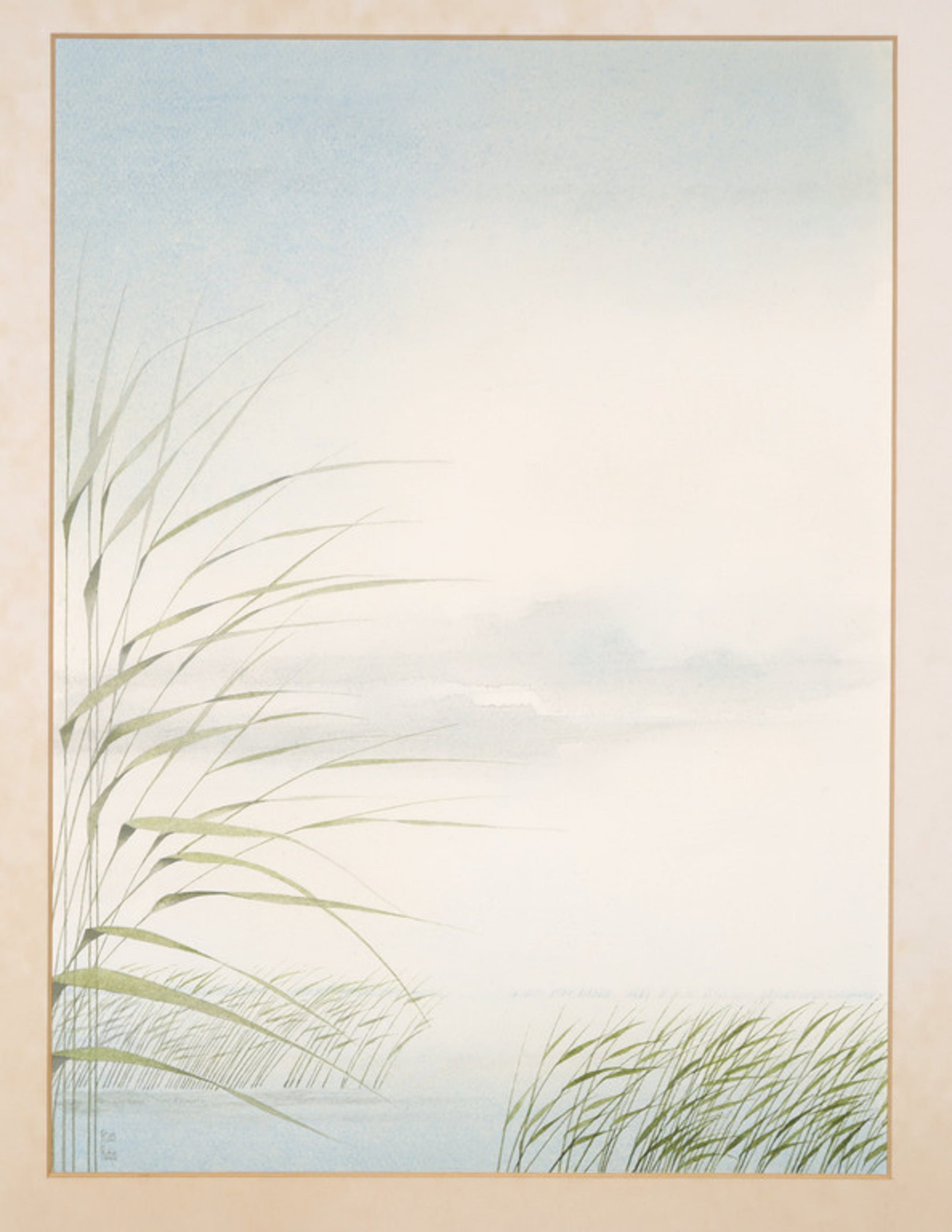 Materiaal: Aquarel op papier, gelijmd achter passe-partout