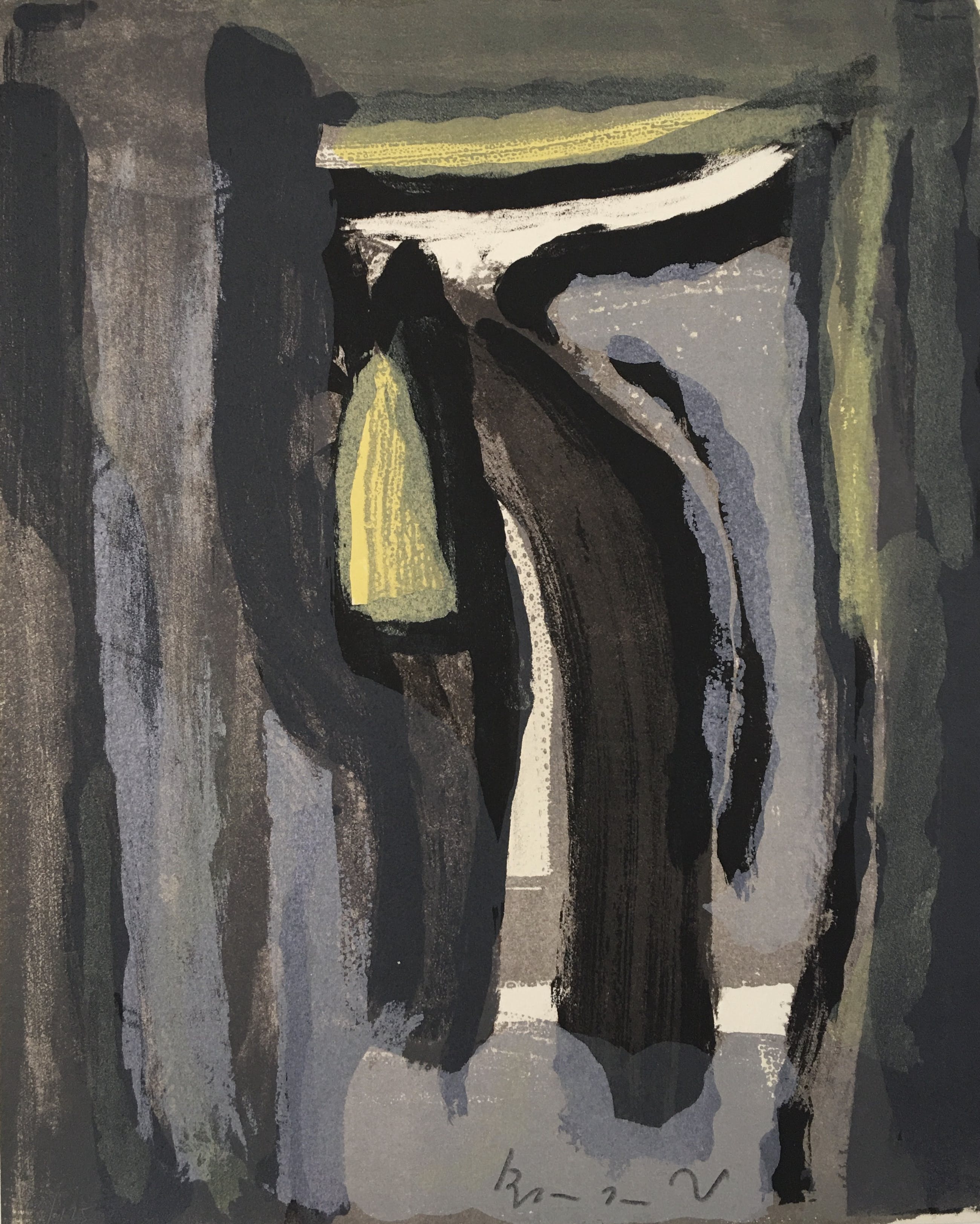 Een fraaie, 5 kleuren Bram van Velde litho uit 1977. Le pierrot,les beaux arts et la mort Het werk is gesigneerd en genummerd 88/125. De afmetingen zijn 32x25 cm en is in zeer goede conditie.