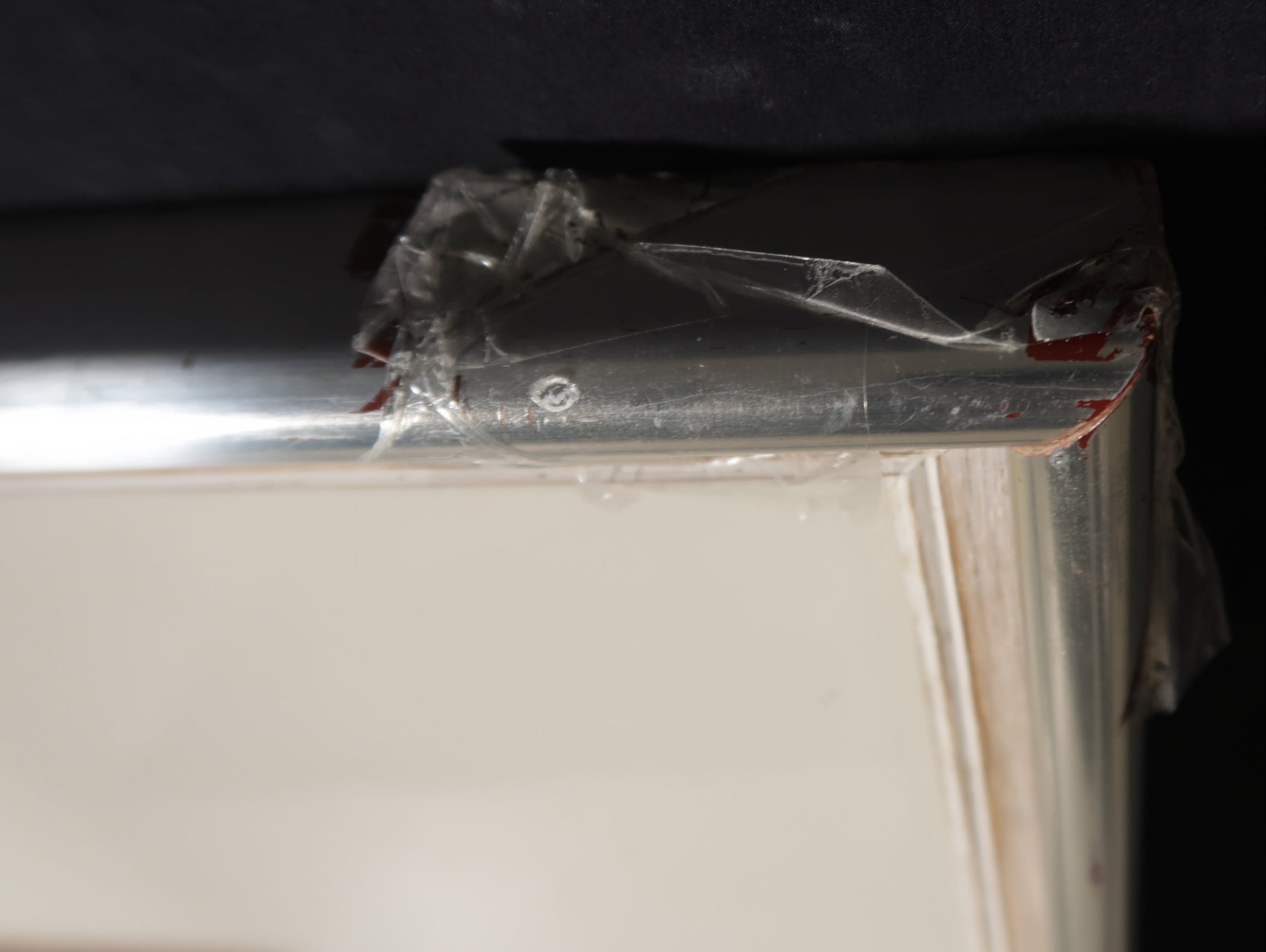 | De lijst wordt aan de bovenkant met de achterzijde bij elkaar gehouden doormiddel van plakband. Het blad is enigzins verkleurd. | |