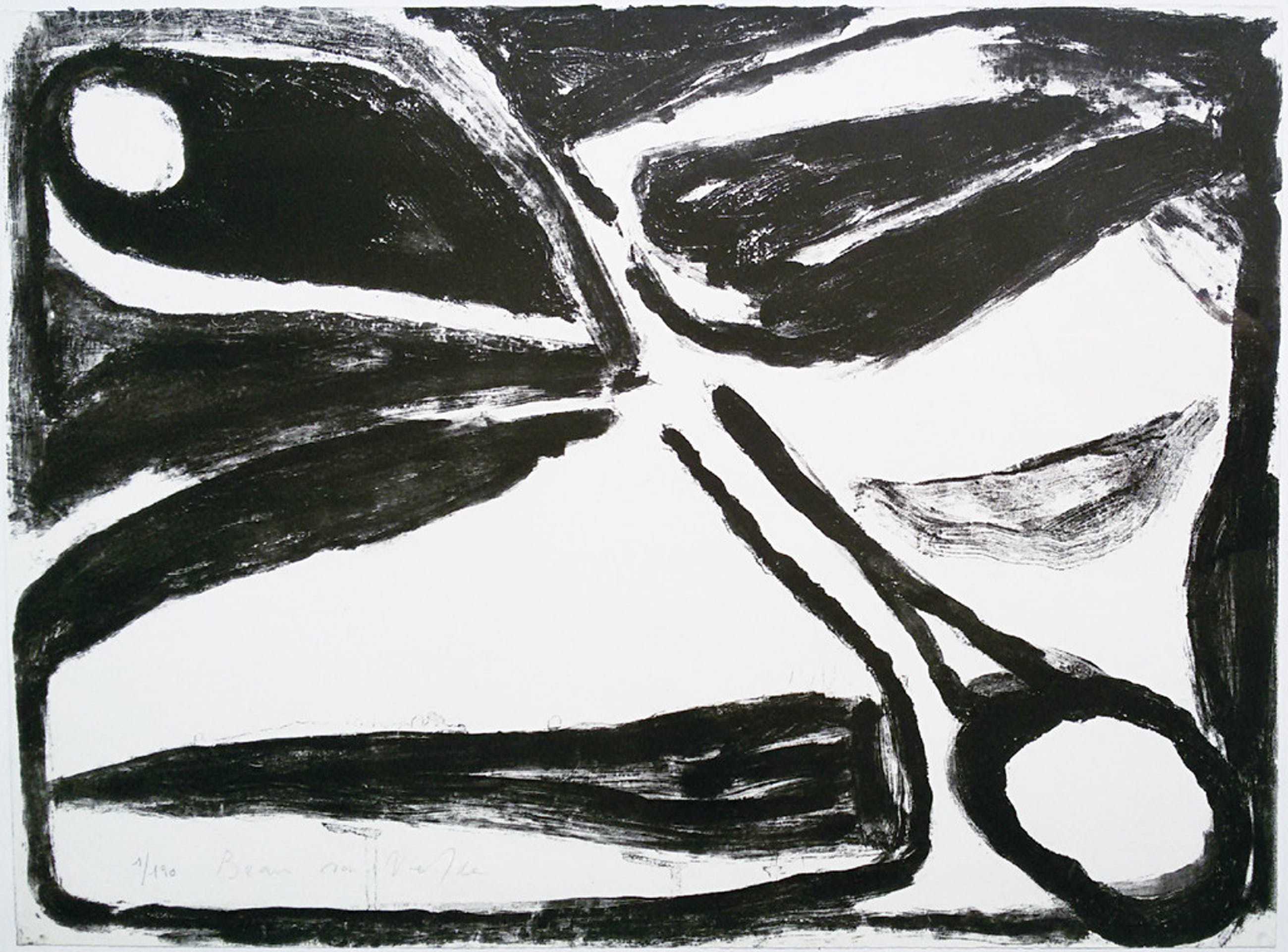 Mooie, originele compositie van Bram van Velde uit 1966. Litho op geschept papier, met potlood gesigneerd en genummerd (1/190). Deze litho staat afgebeeld in het boek Bram van Velde Les Lithographies I 1923-1973 van Yves Rivière (YR no. 39). Het volledige blad in strakke, aluminium lijst en achter glas, alles in zeer goede conditie.