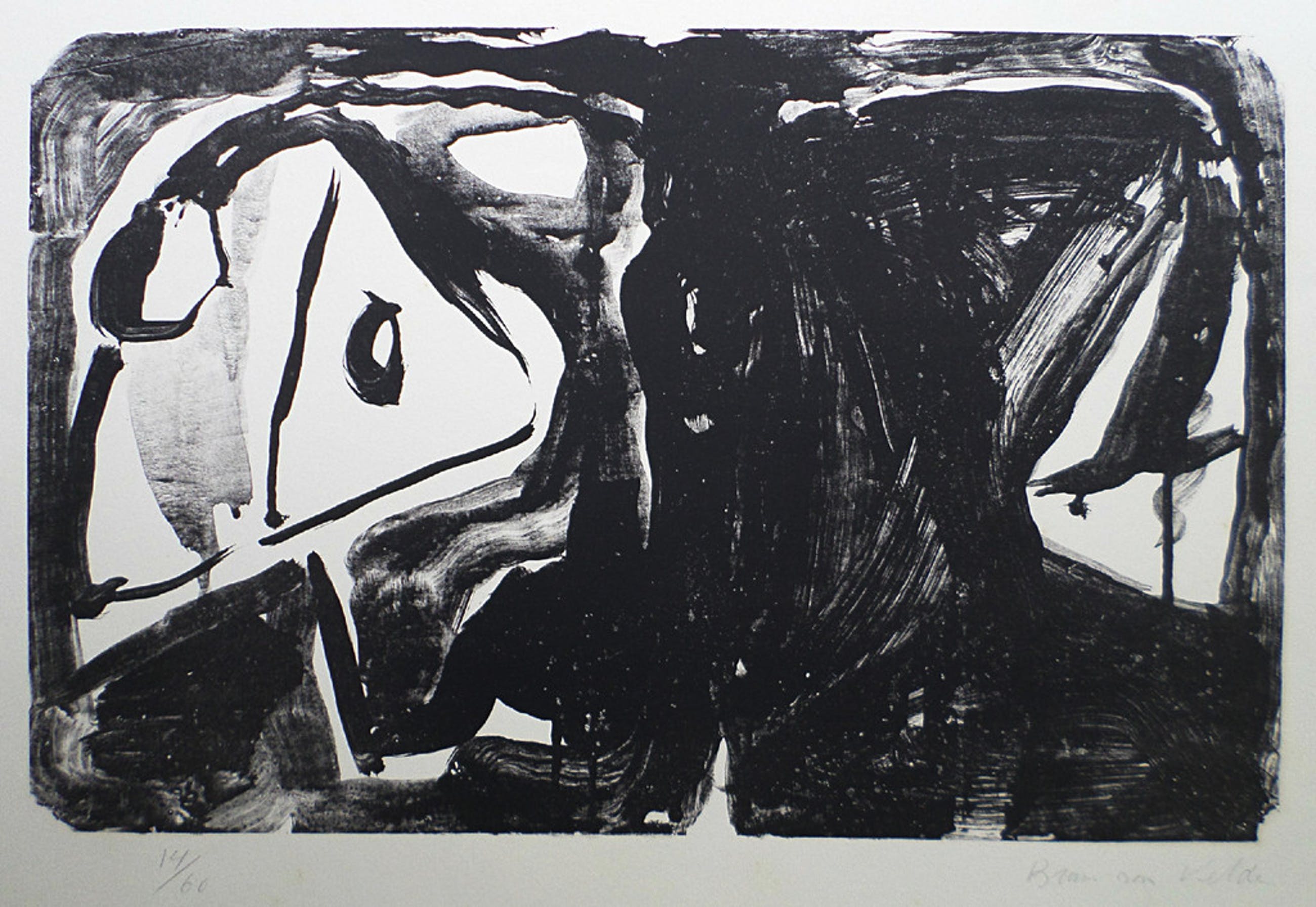 Mooie originele litho op Rives van Bram van Velde uit 1962. Handgesigneerd en genummerd. Dit is nummer 14 uit een oplage van slechts 60! Deze litho staat afgebeeld in het boek Bram van Velde Les Lithographies I 1923-1973 van Yves Rivière (YR no. 17). Op wat nauwelijks zichtbare ouderdomsplekjes na in uitstekende staat, nooit ingelijst geweest.